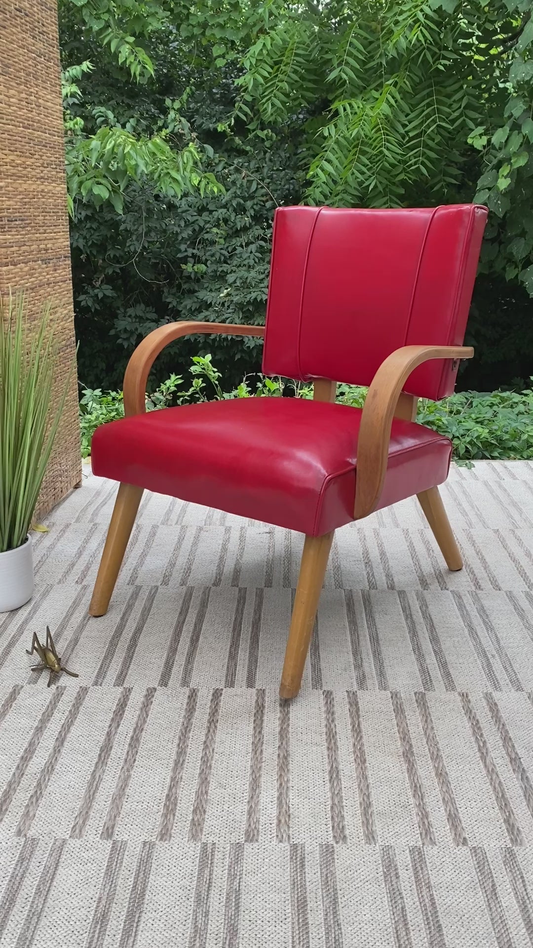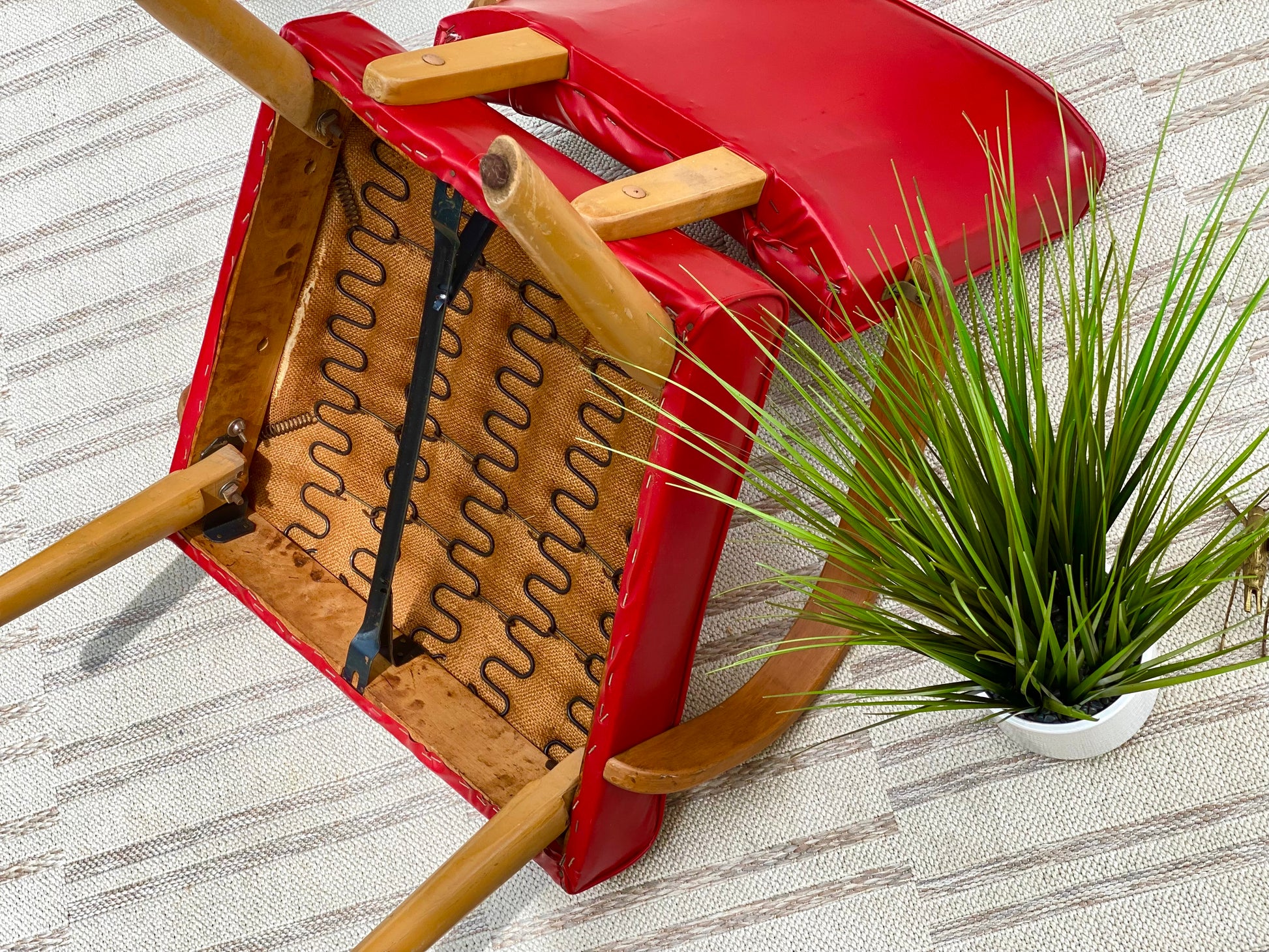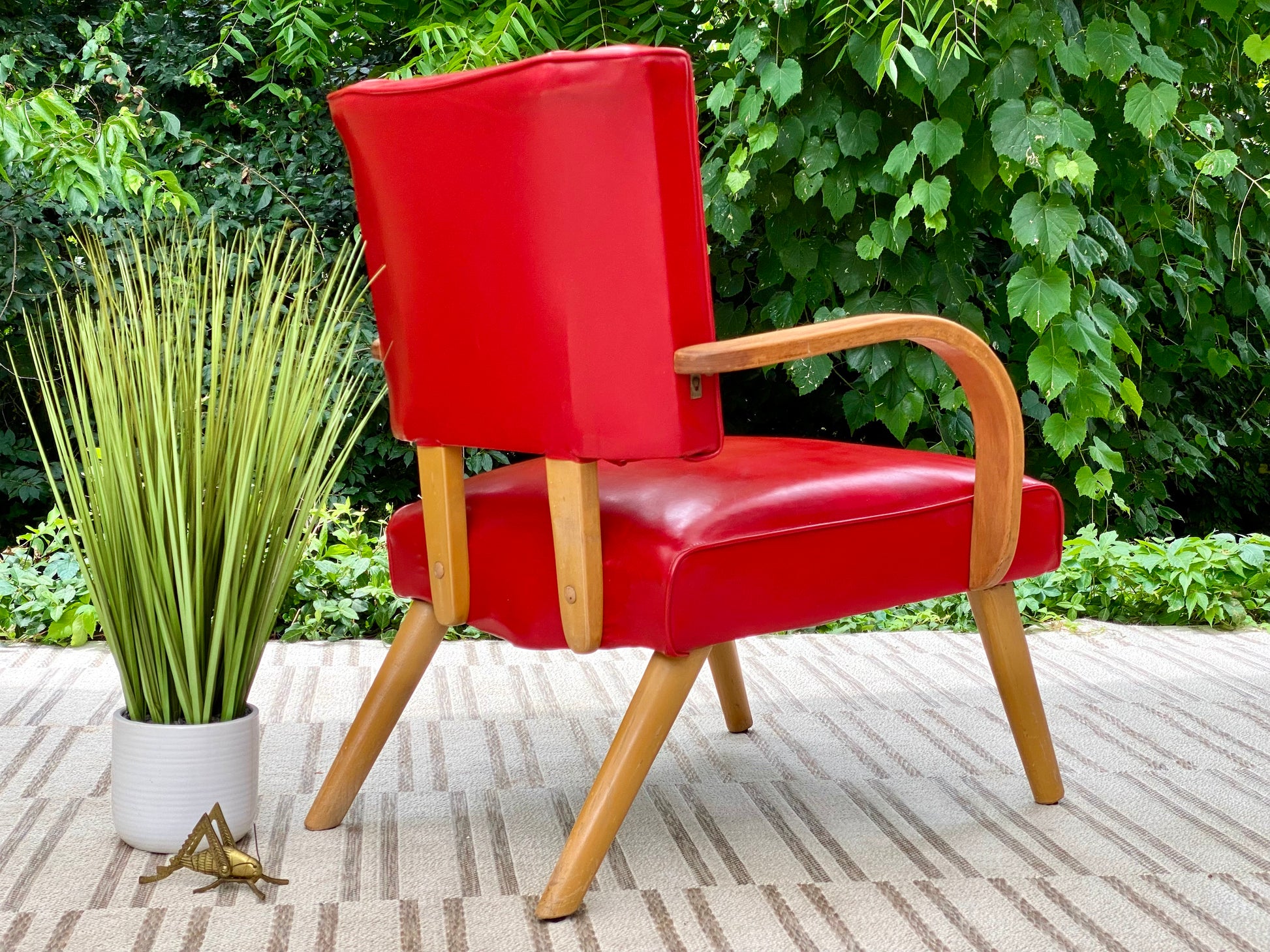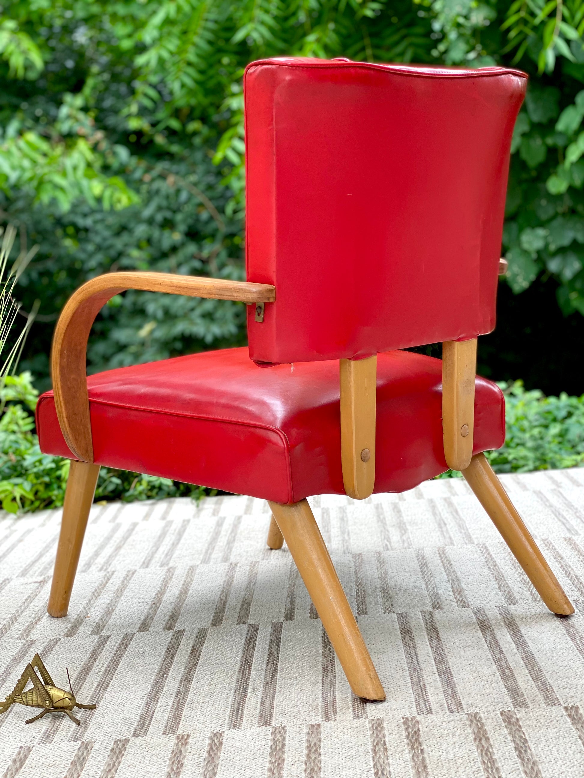 SOLD - Vintage MCM Viking Vito Baumritter red vinyl bentwood accent armchair. All original. 32" x 23" x 28" Good condition.