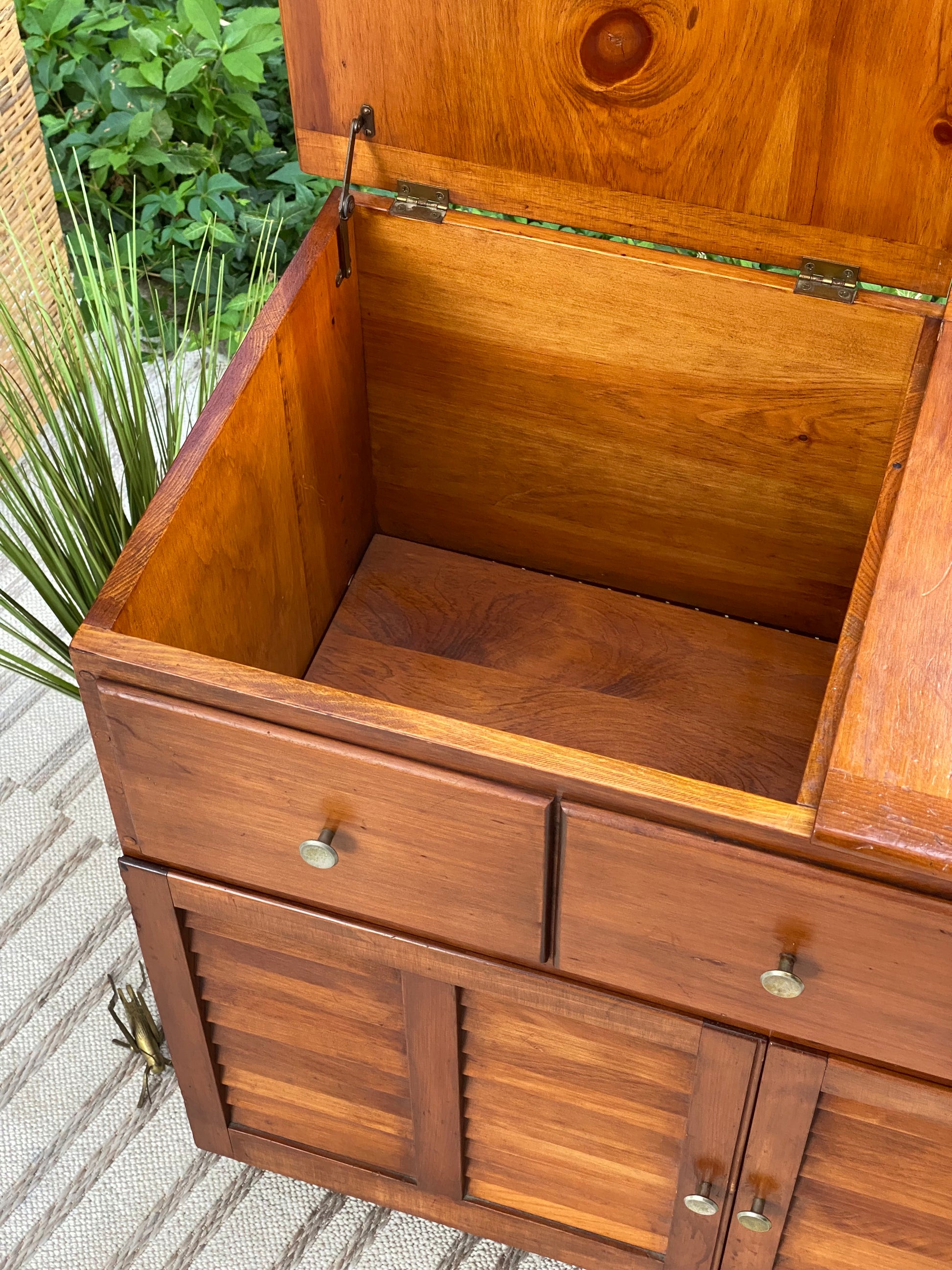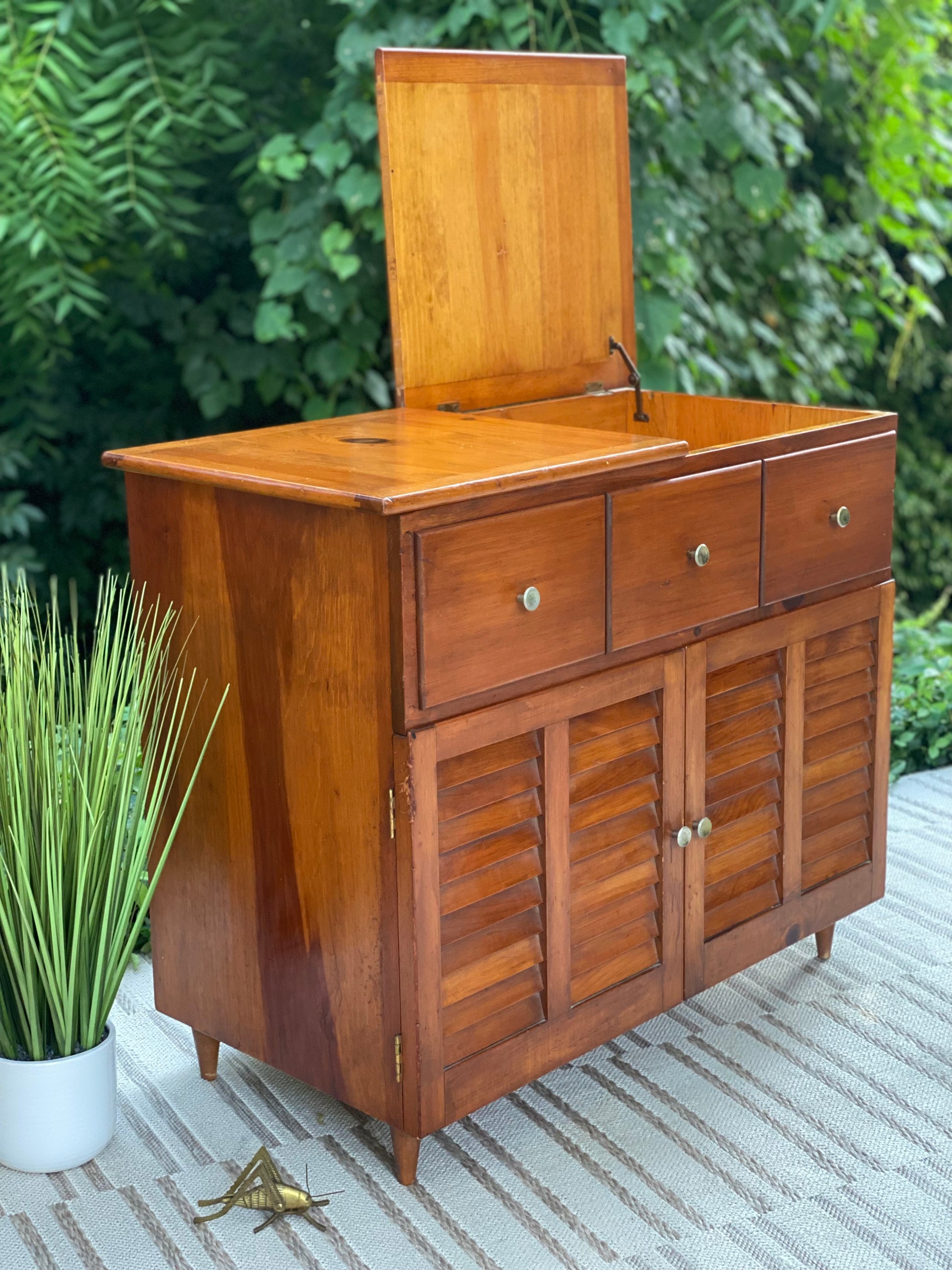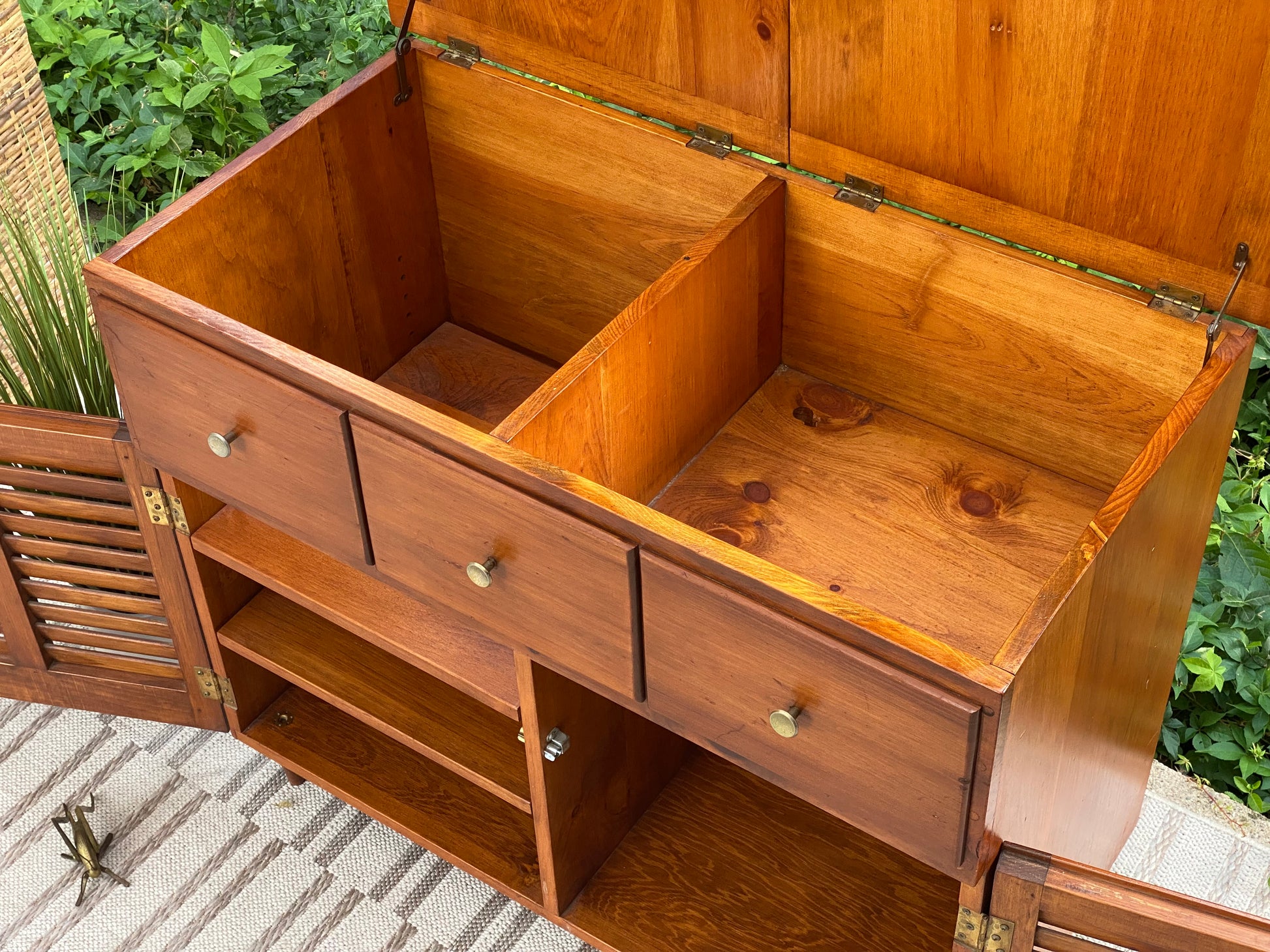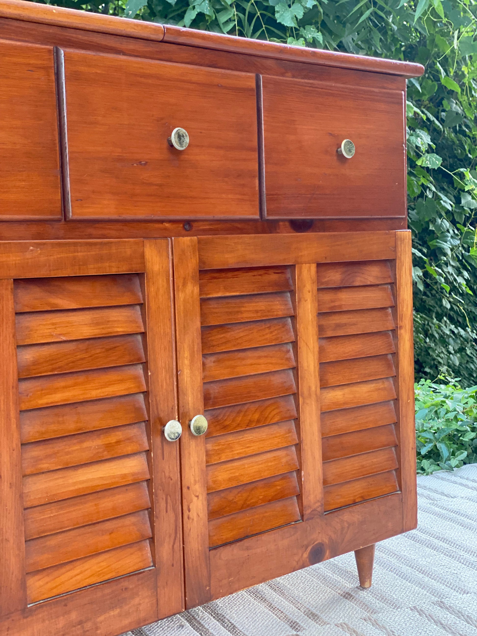 SOLD - Check out this retro MCM pine bar cabinet. Great for storage and a classic design. 30" x 36" x 20". Good condition