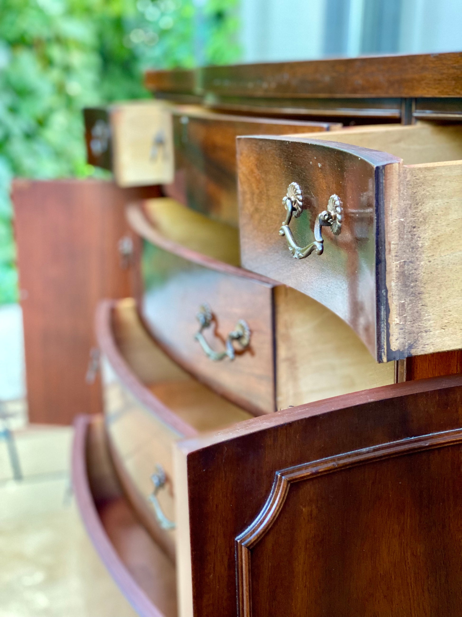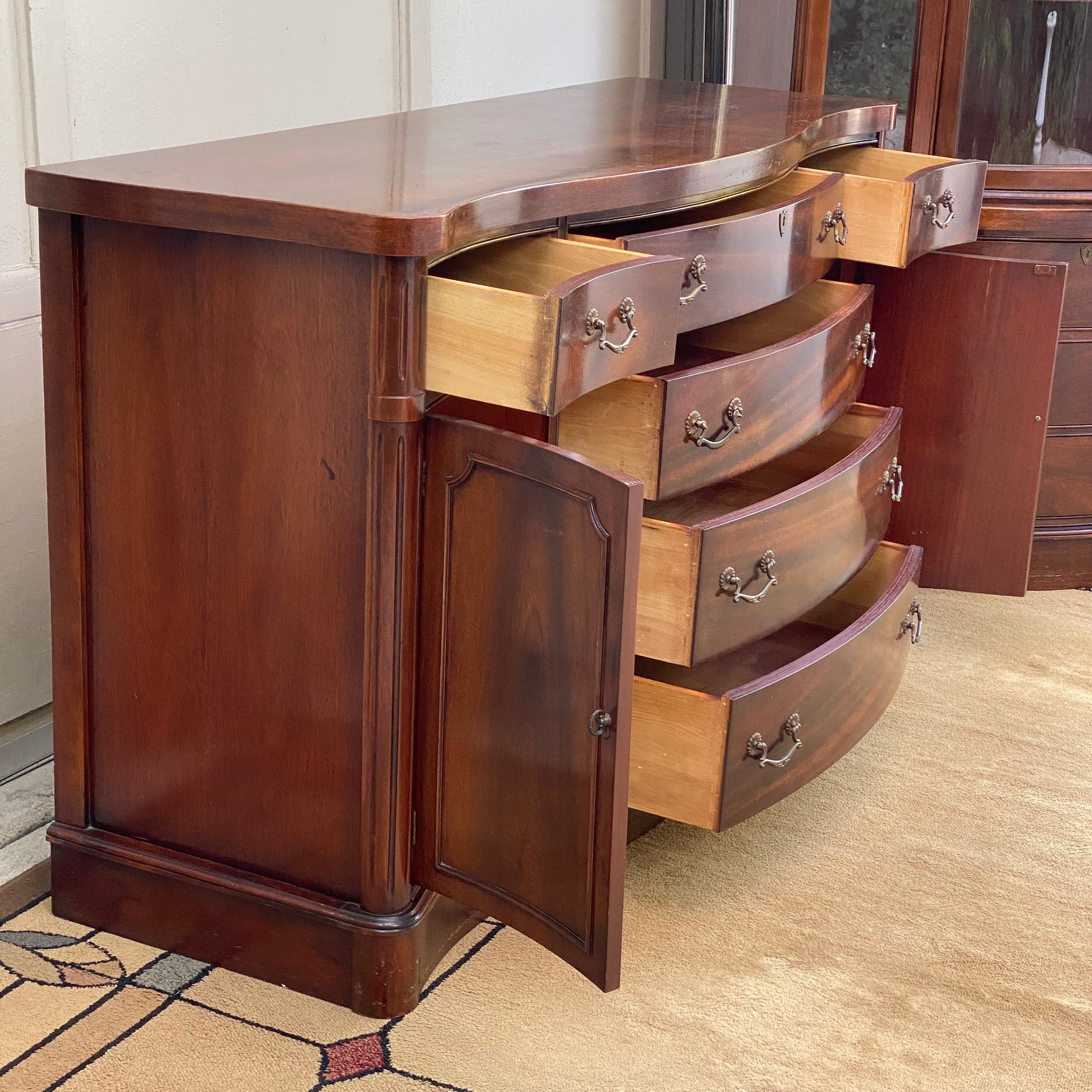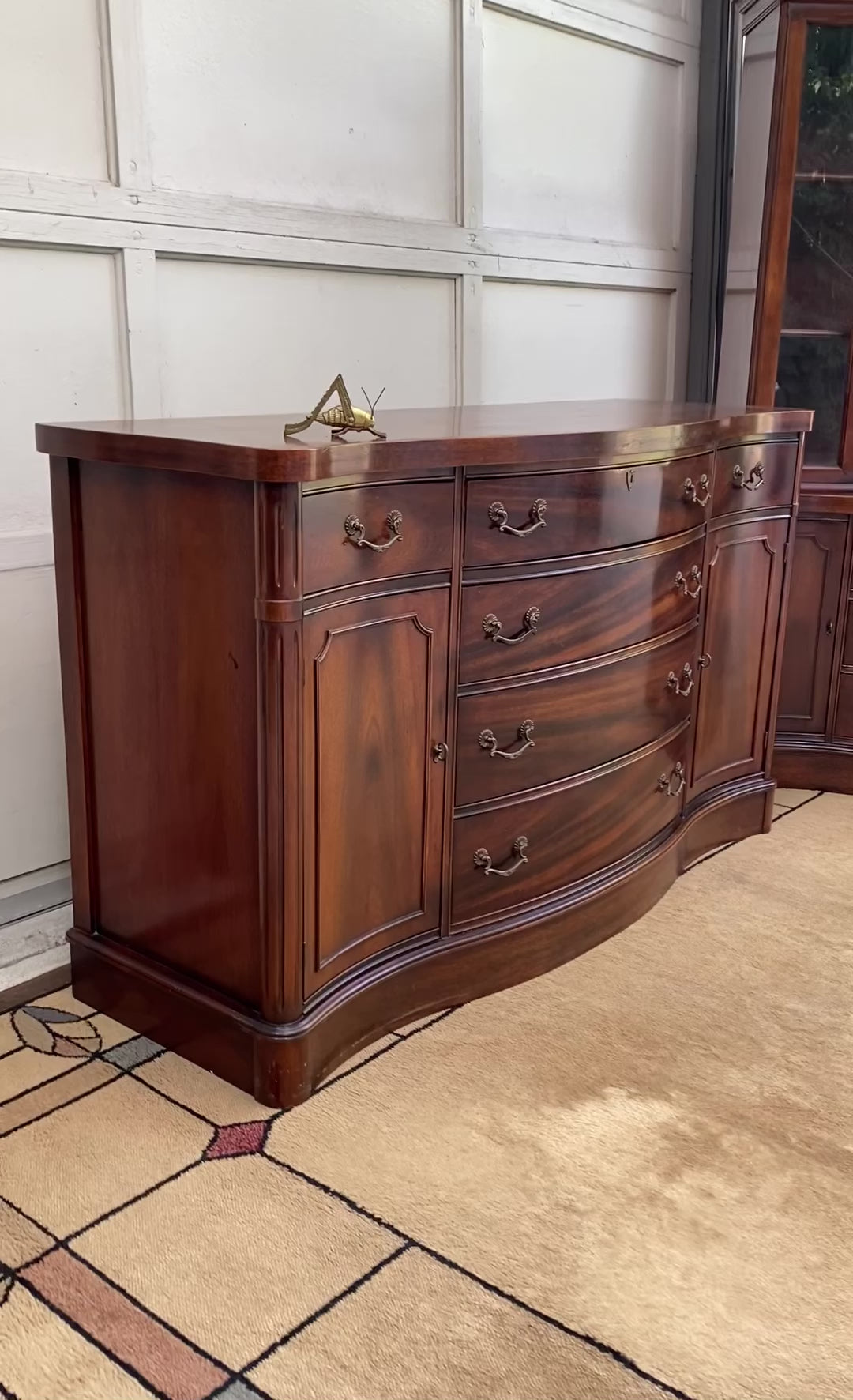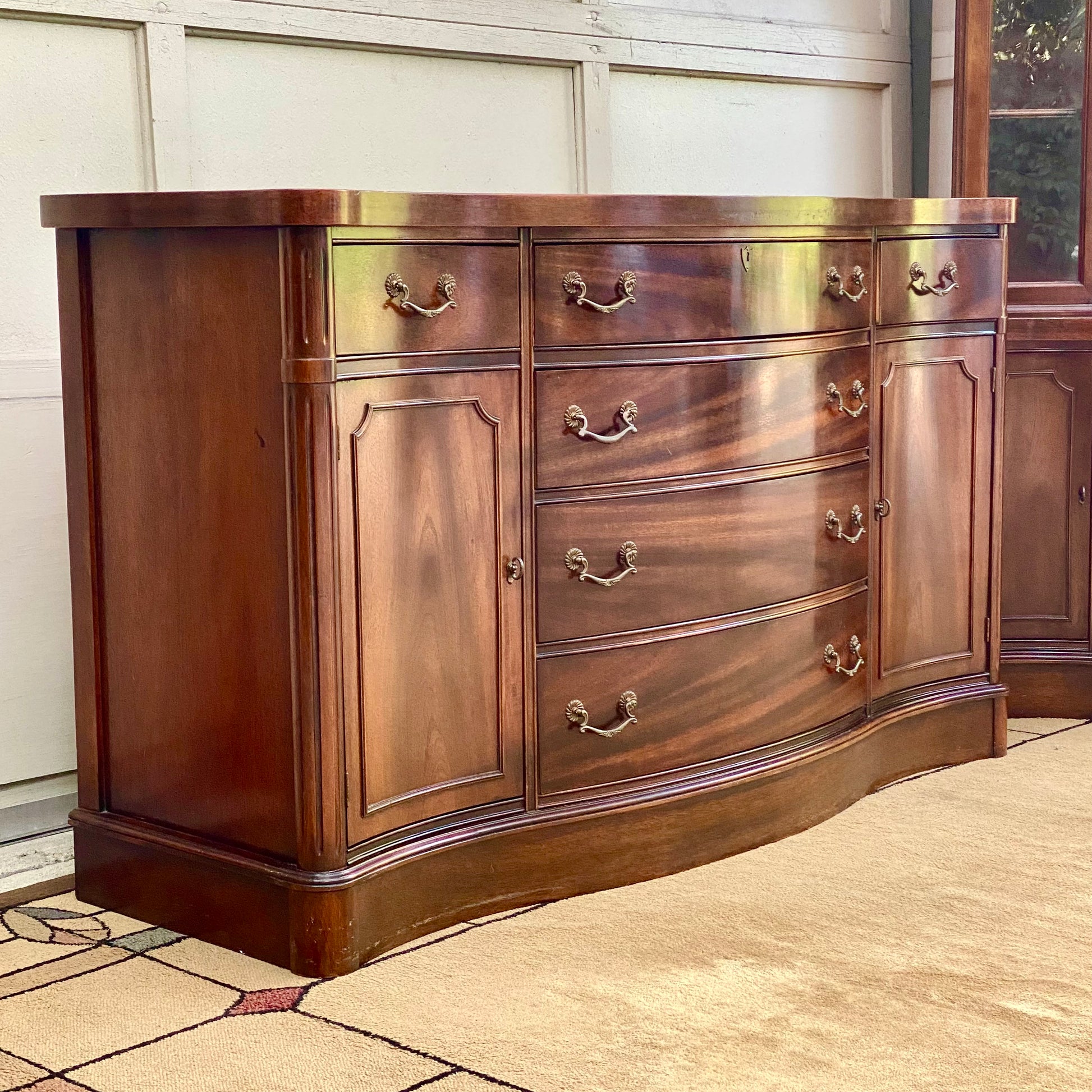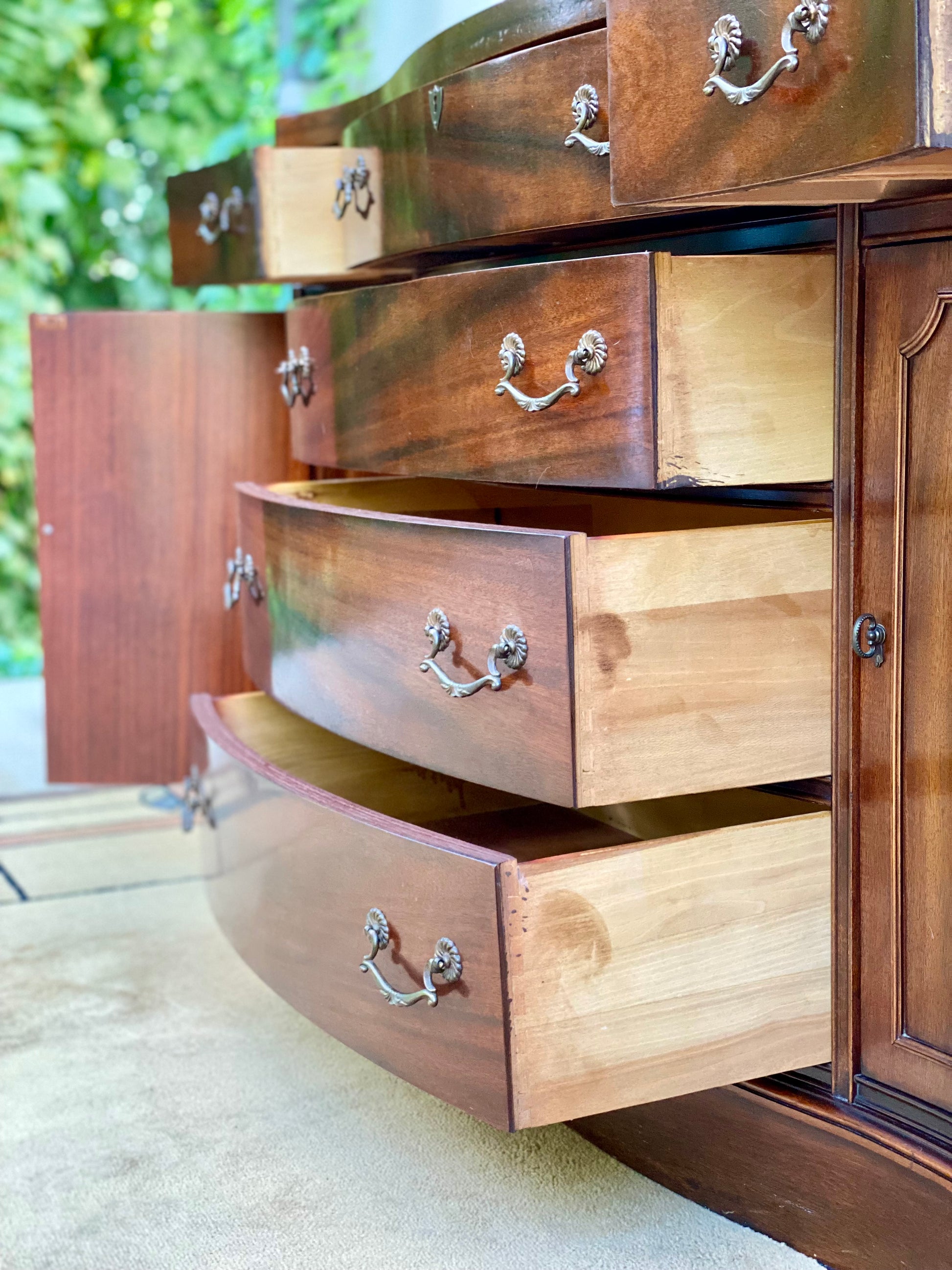 SOLD - New arrival! Check out this modern United Furniture wooden curved front buffet. Great storage options and would look great in a hallway or as a TV stand. 36” x 60” x 21” Good condition.