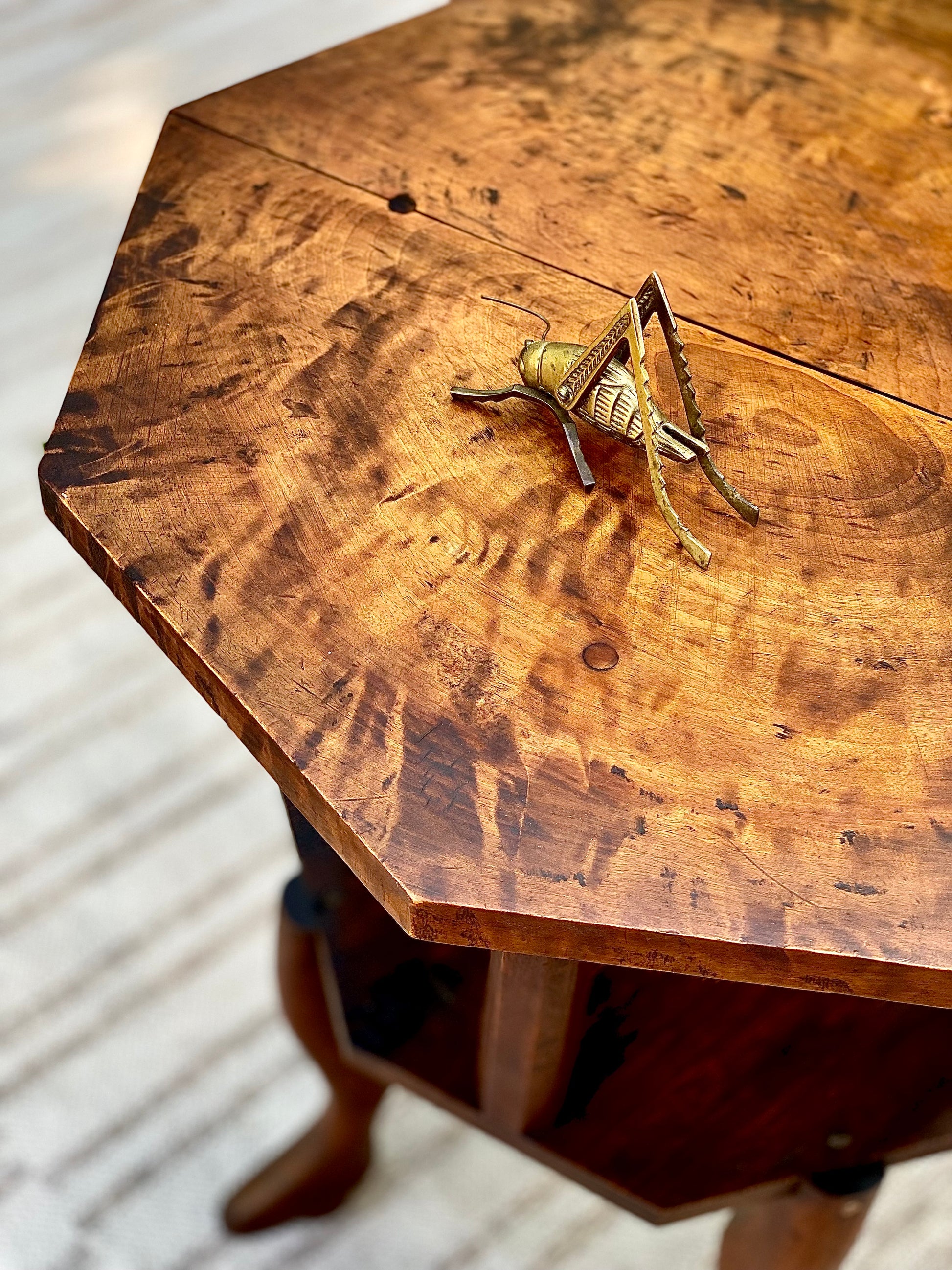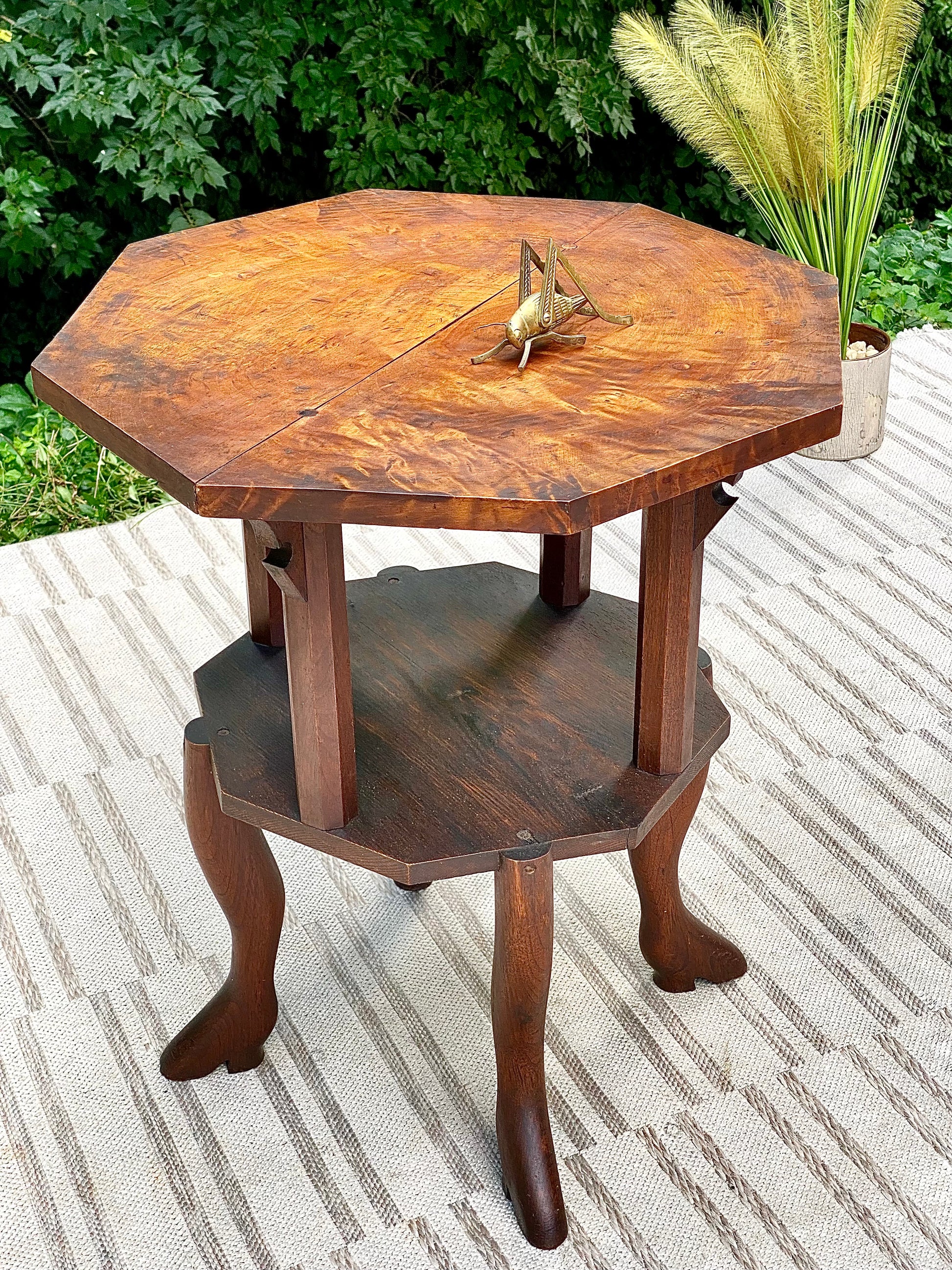 Antique Burl Wood Plant Stand Side Table