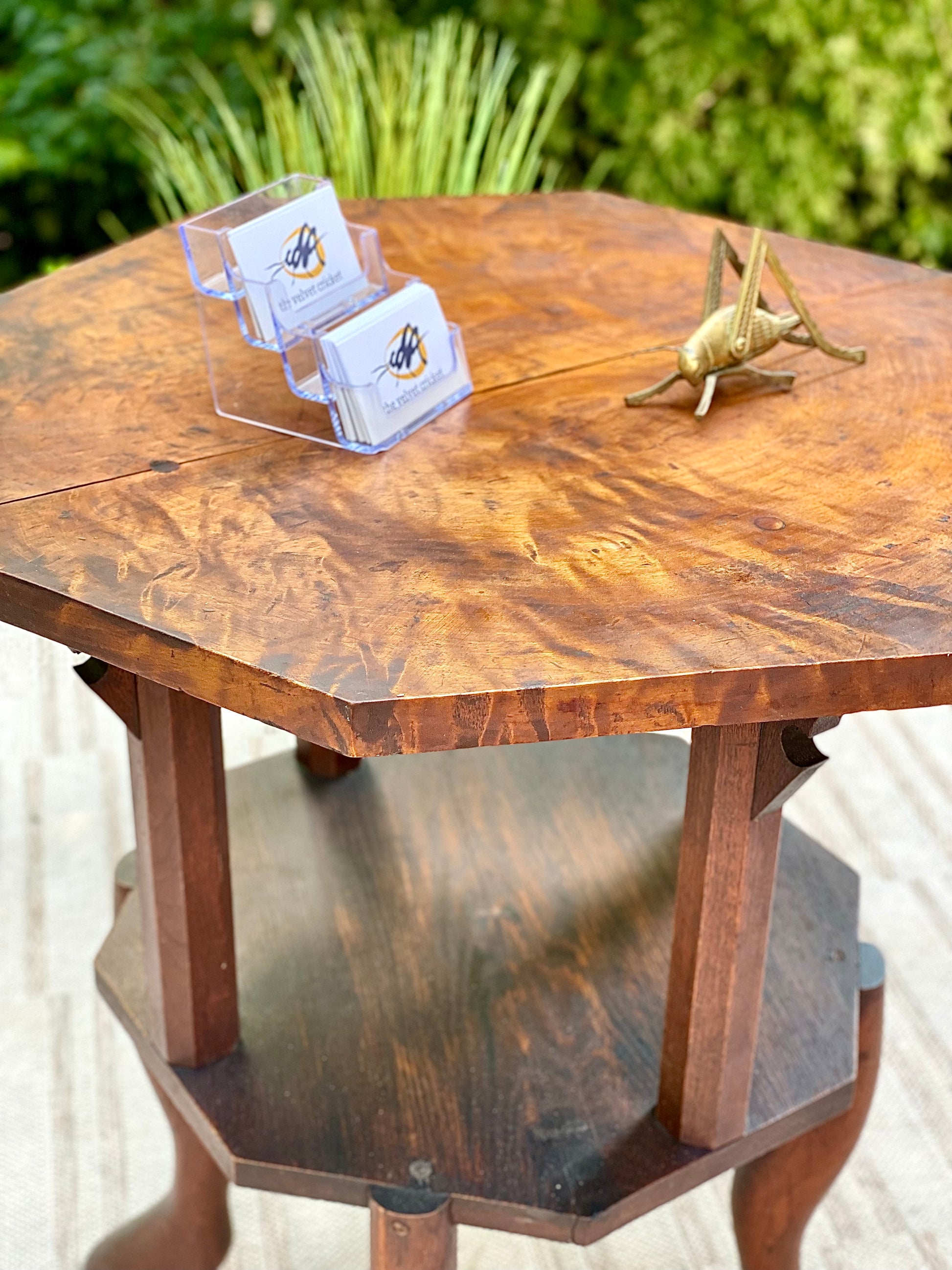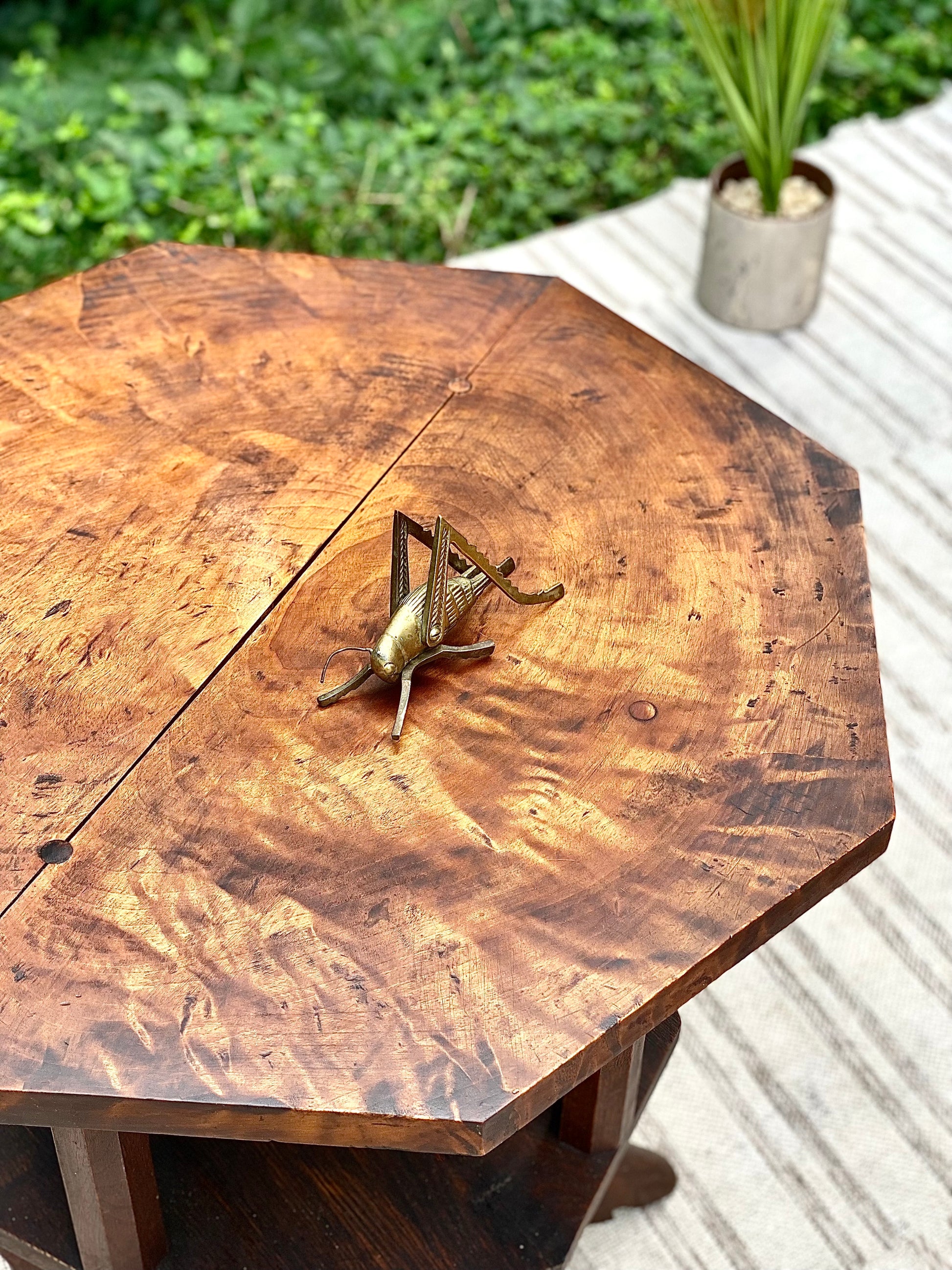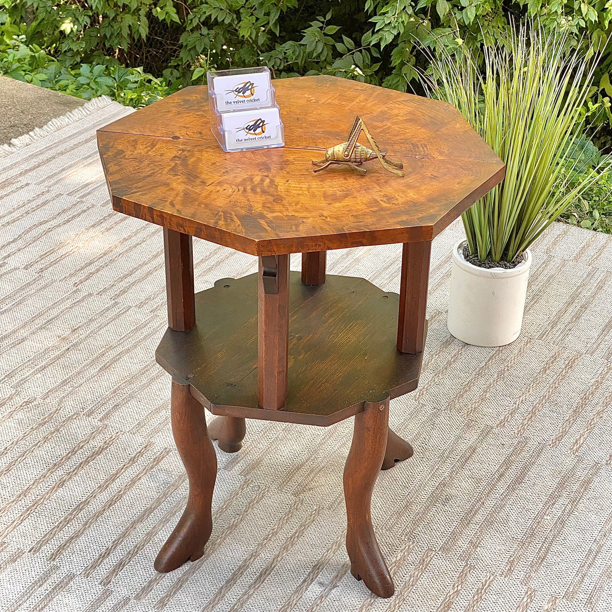SOLD - Fresh find! 🪴🌱 We love this antique Burwood handmade plant stand side table. Unique design and a perfect piece for a corner with a beautiful plant. 29”h x 26” x 26” Good condition