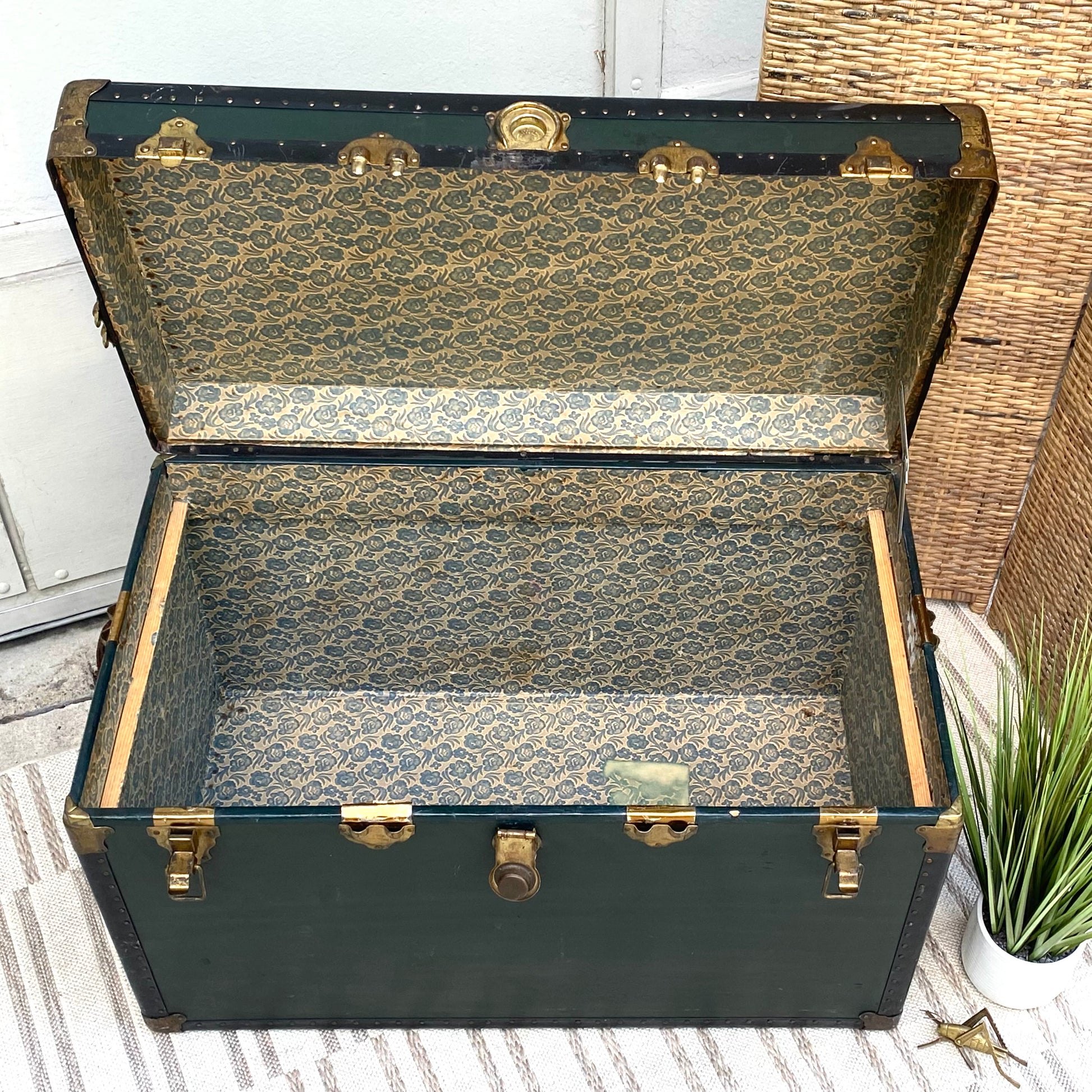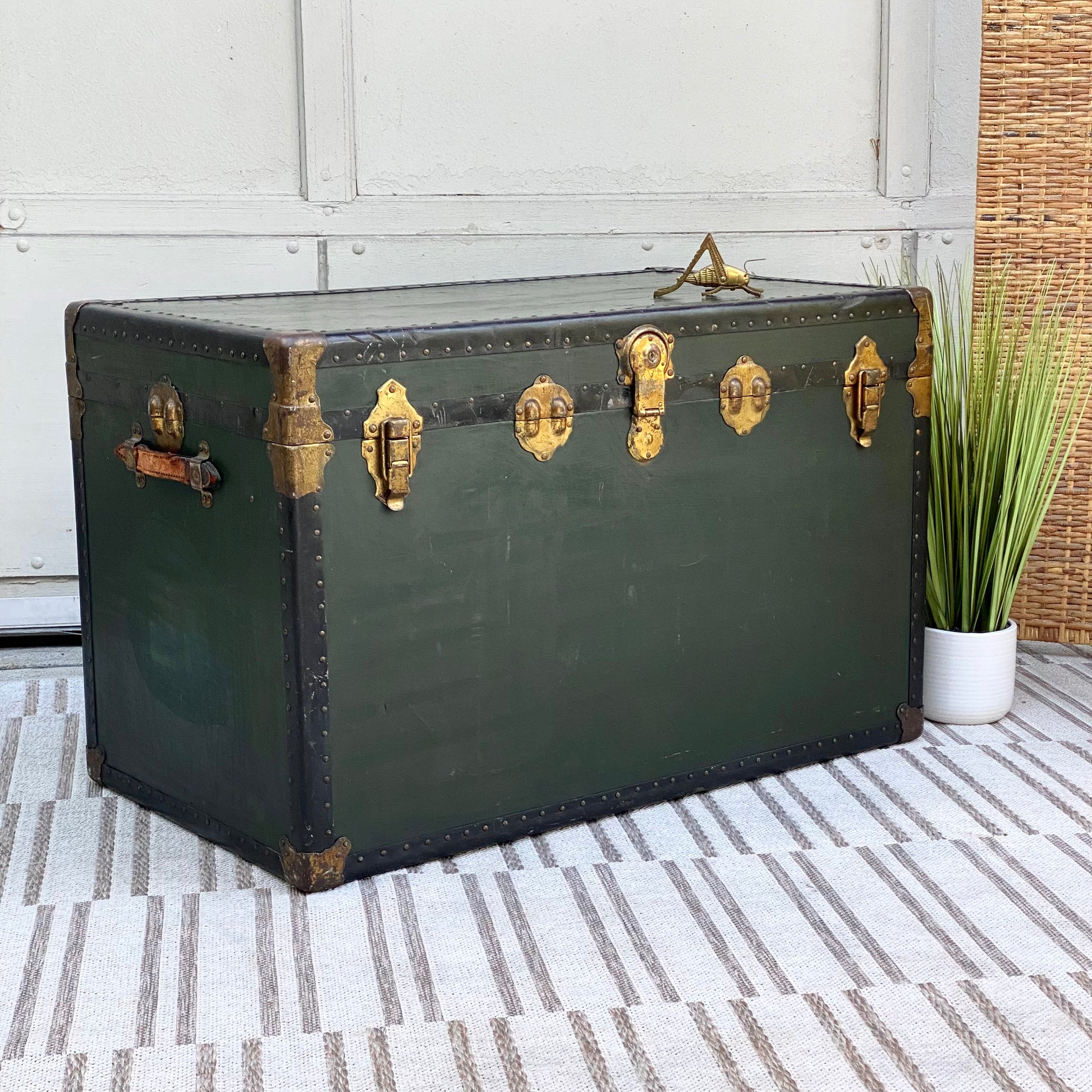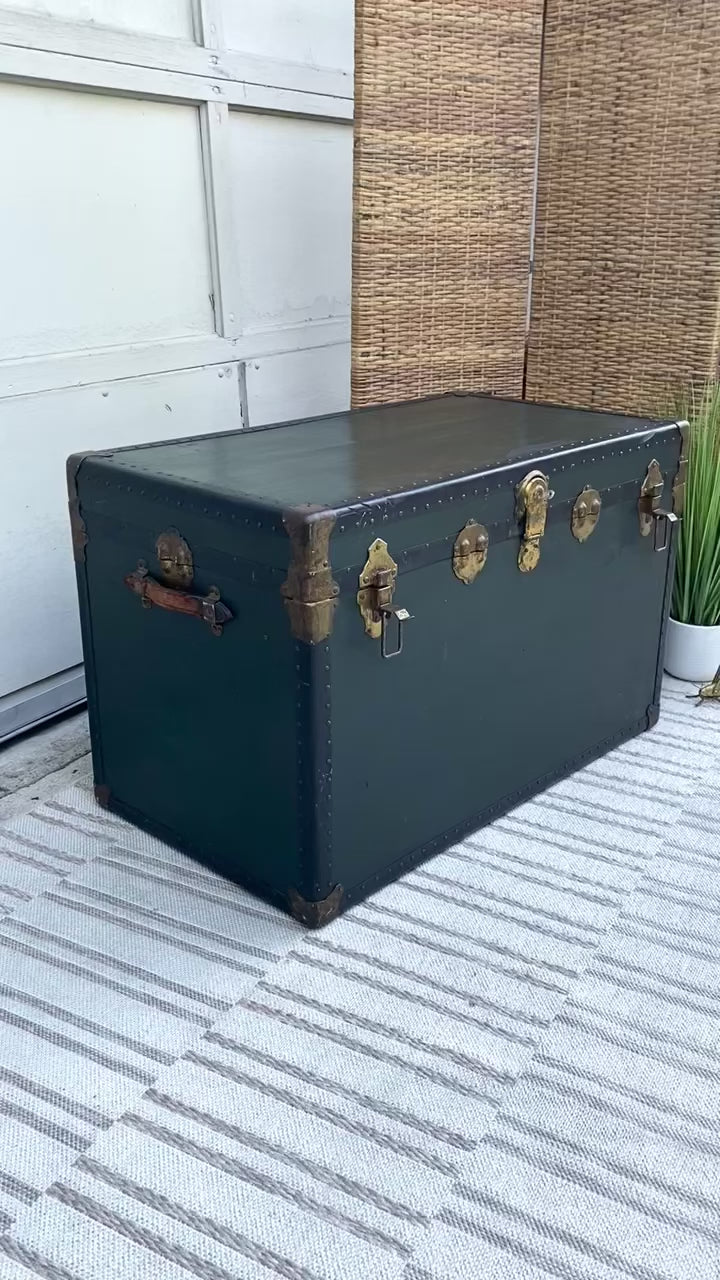 SOLD - What a great piece of decor! Check out this vintage green travel trunk. Lots of storage or would make a great coffee or side table. 24”h x 38” x 21” Good condition