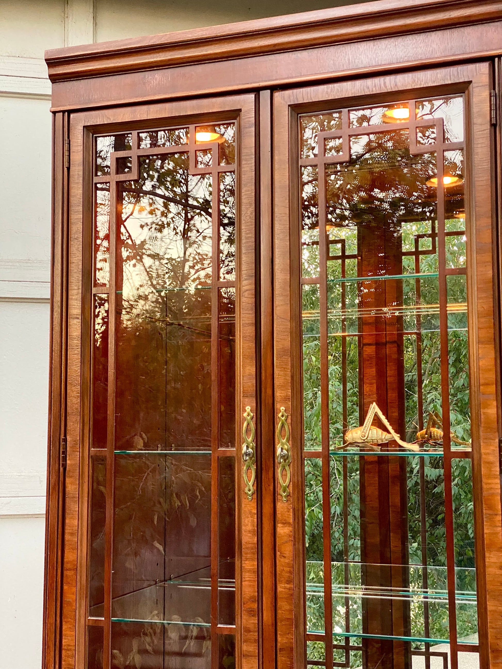 SOLD - Fresh Find! 🍁🧡 Check out this beautiful wooden Drexel Chippendale style lighted display cabinet. Lots of lower storage with plenary of room to show off your other great finds. 81” x 32” x 19” Good condition