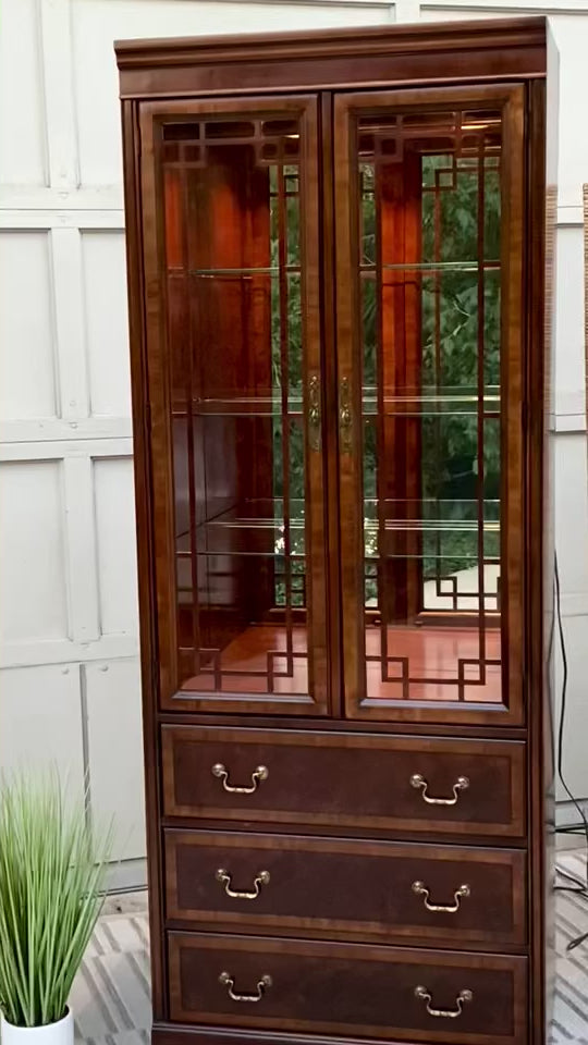 Beautiful Drexel Chippendale Lighted Display Cabinet