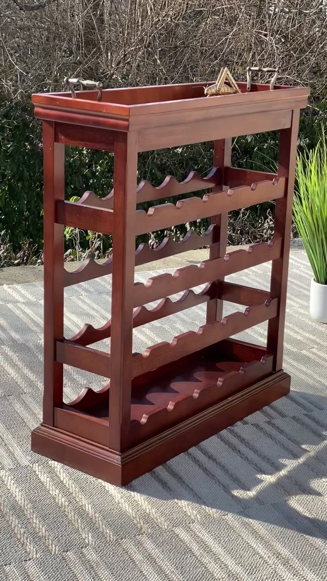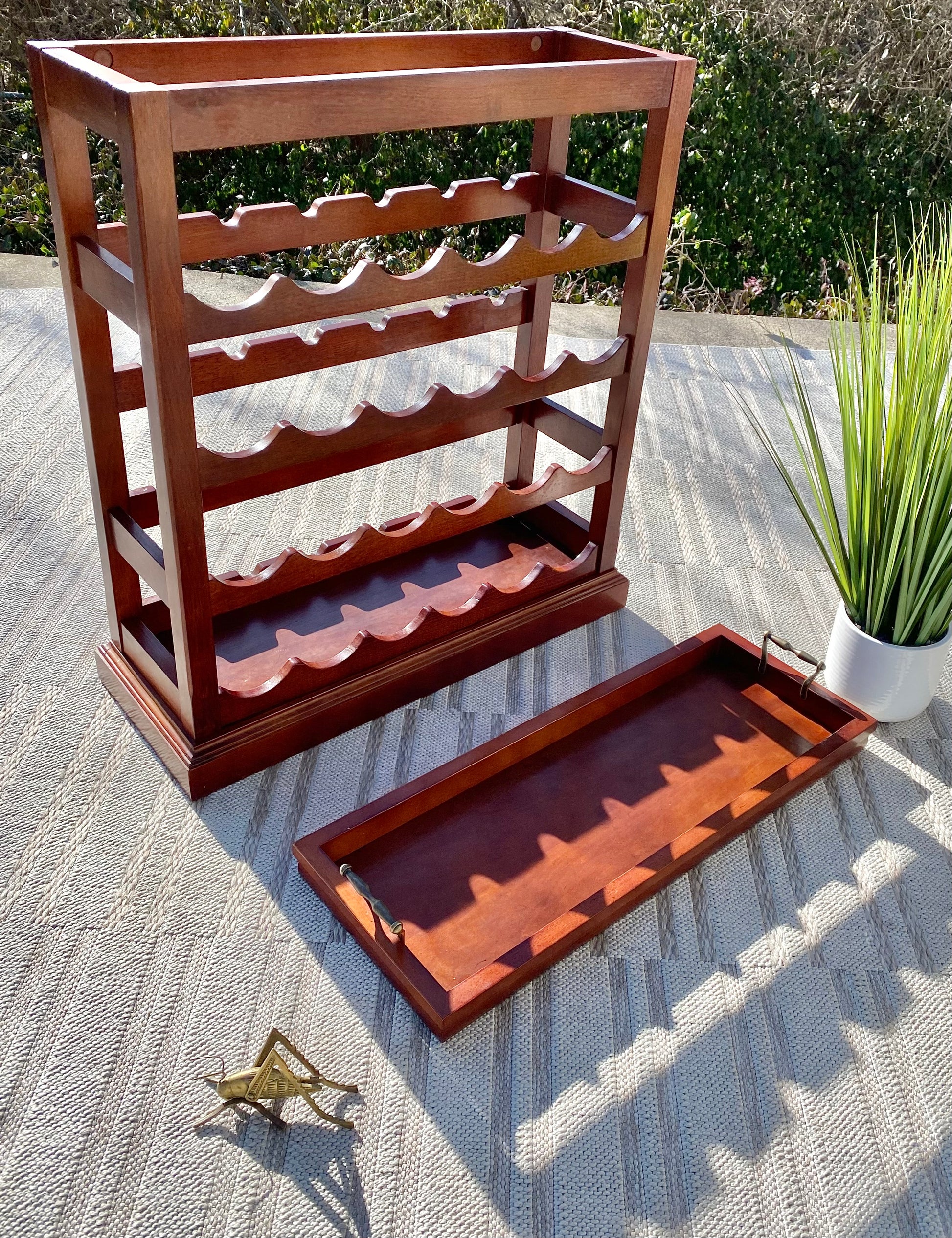 SOLD - Fresh find! ❄️❄️ Check out this modern Bombay woden wine storage rack with removable serving tray. 34” x 28” x 11” Good condition
