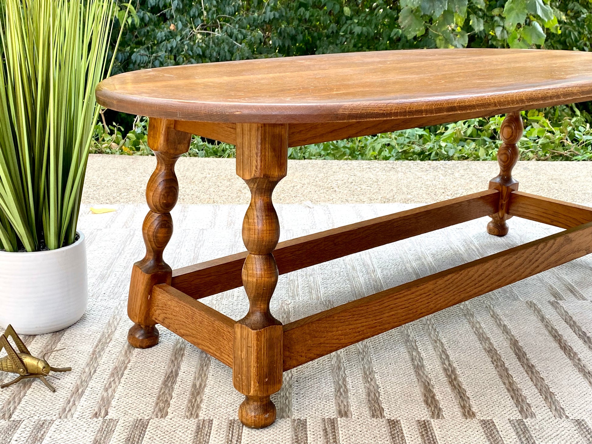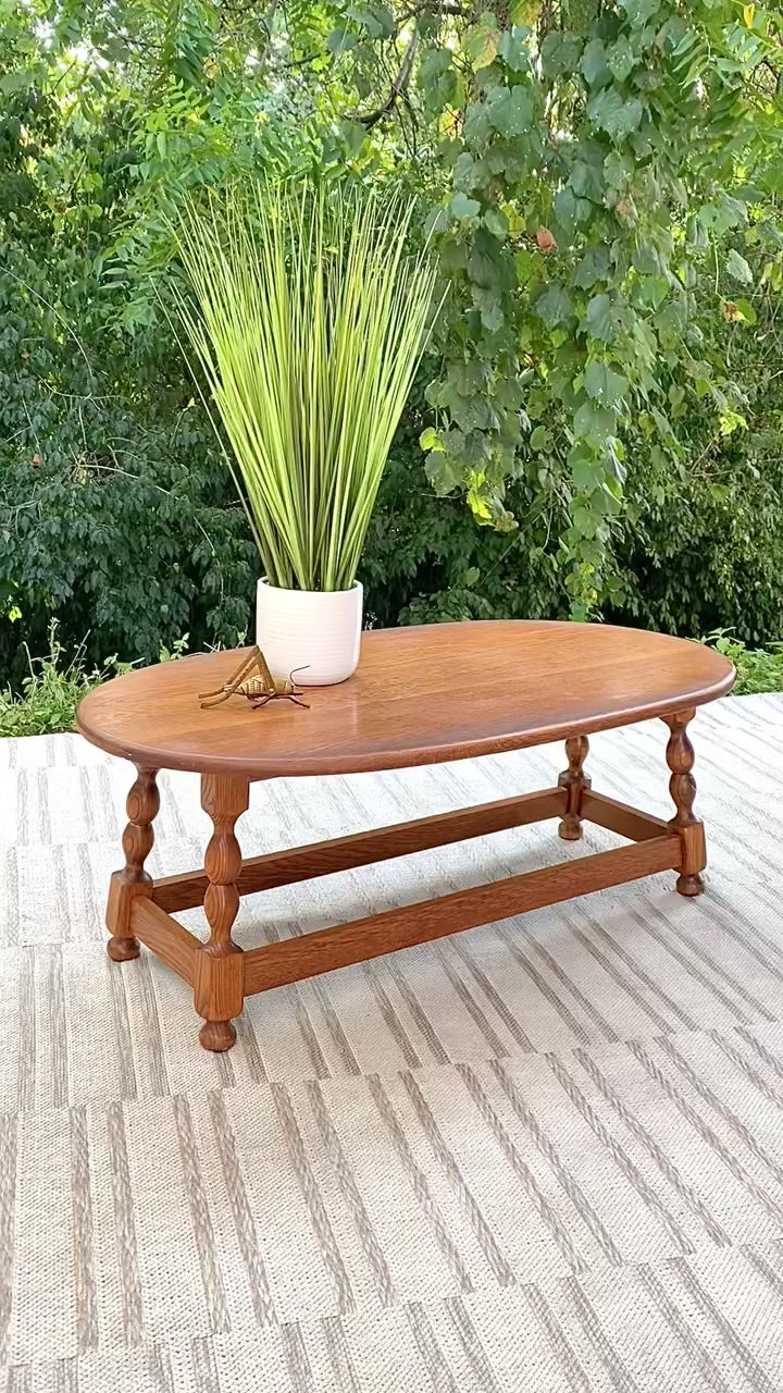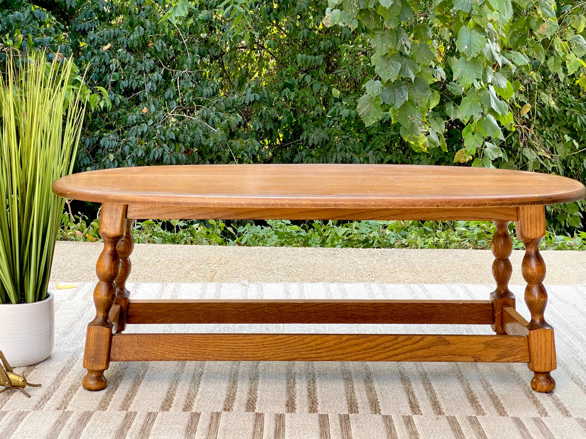 SOLD - New arrival! 🧡🍁 Check out this vintage solid wood oval coffee table. Solid design and a super sturdy piece. 16” x 42” x 22”d. Good condition