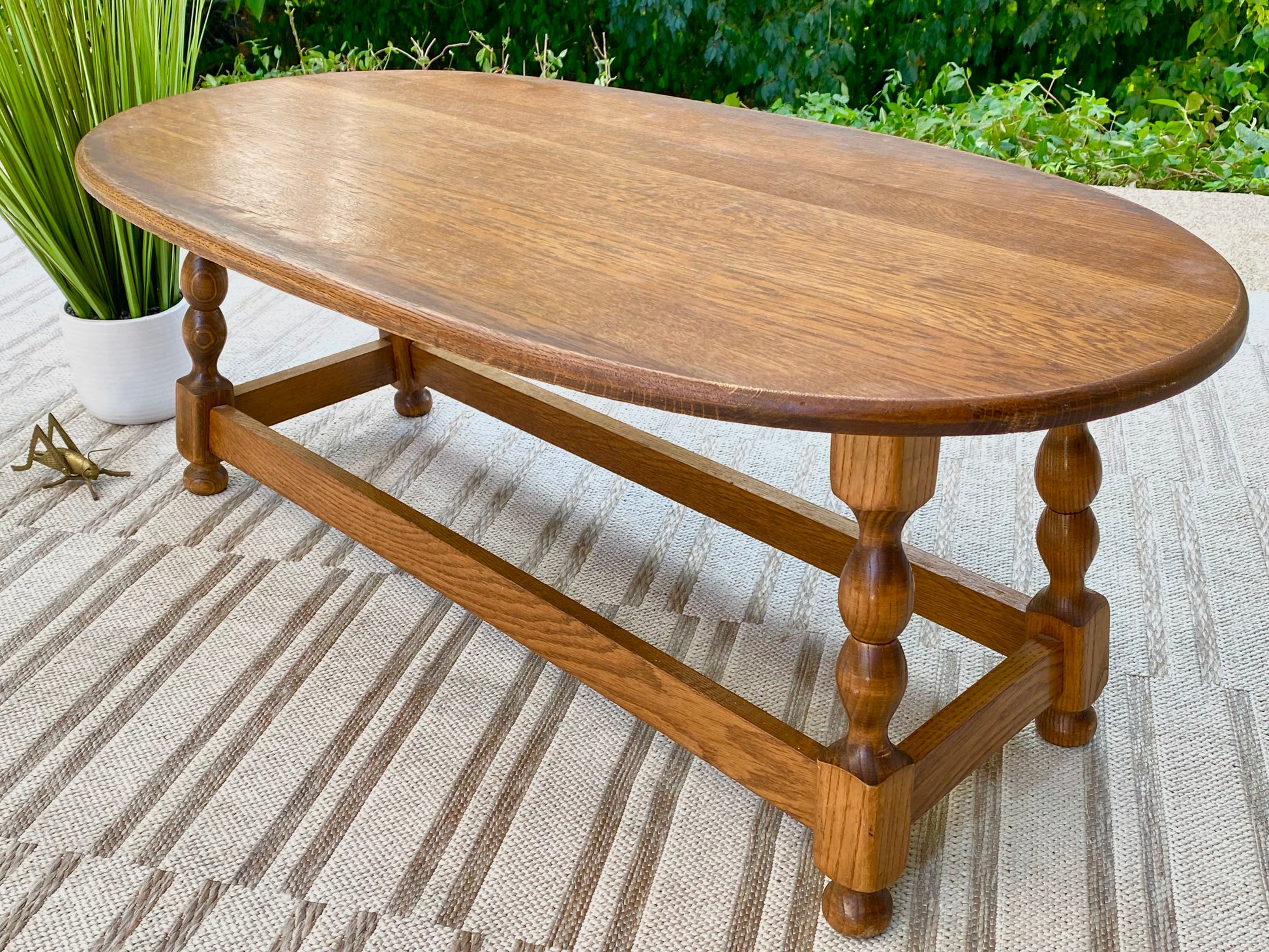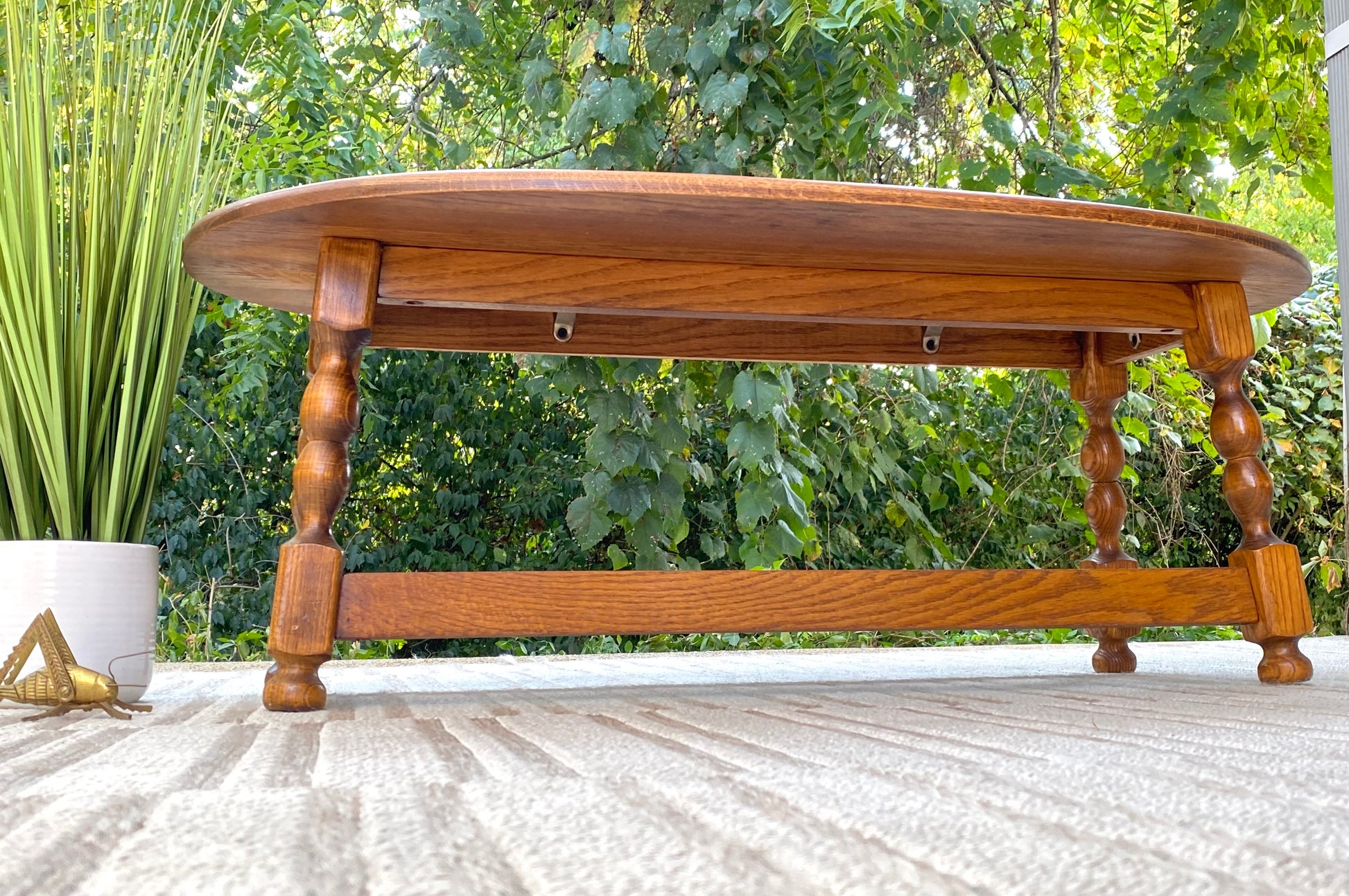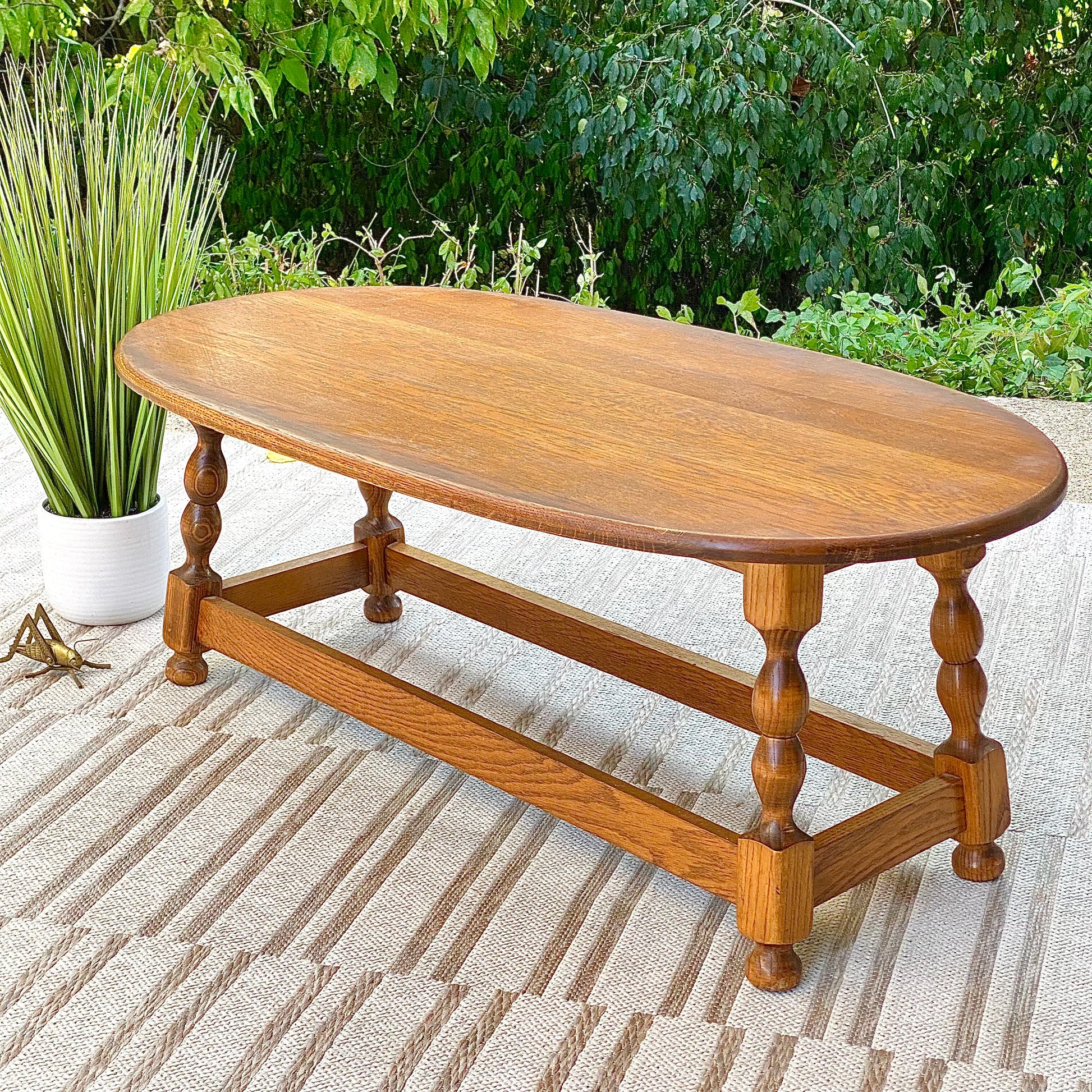 SOLD - New arrival! 🧡🍁 Check out this vintage solid wood oval coffee table. Solid design and a super sturdy piece. 16” x 42” x 22”d. Good condition