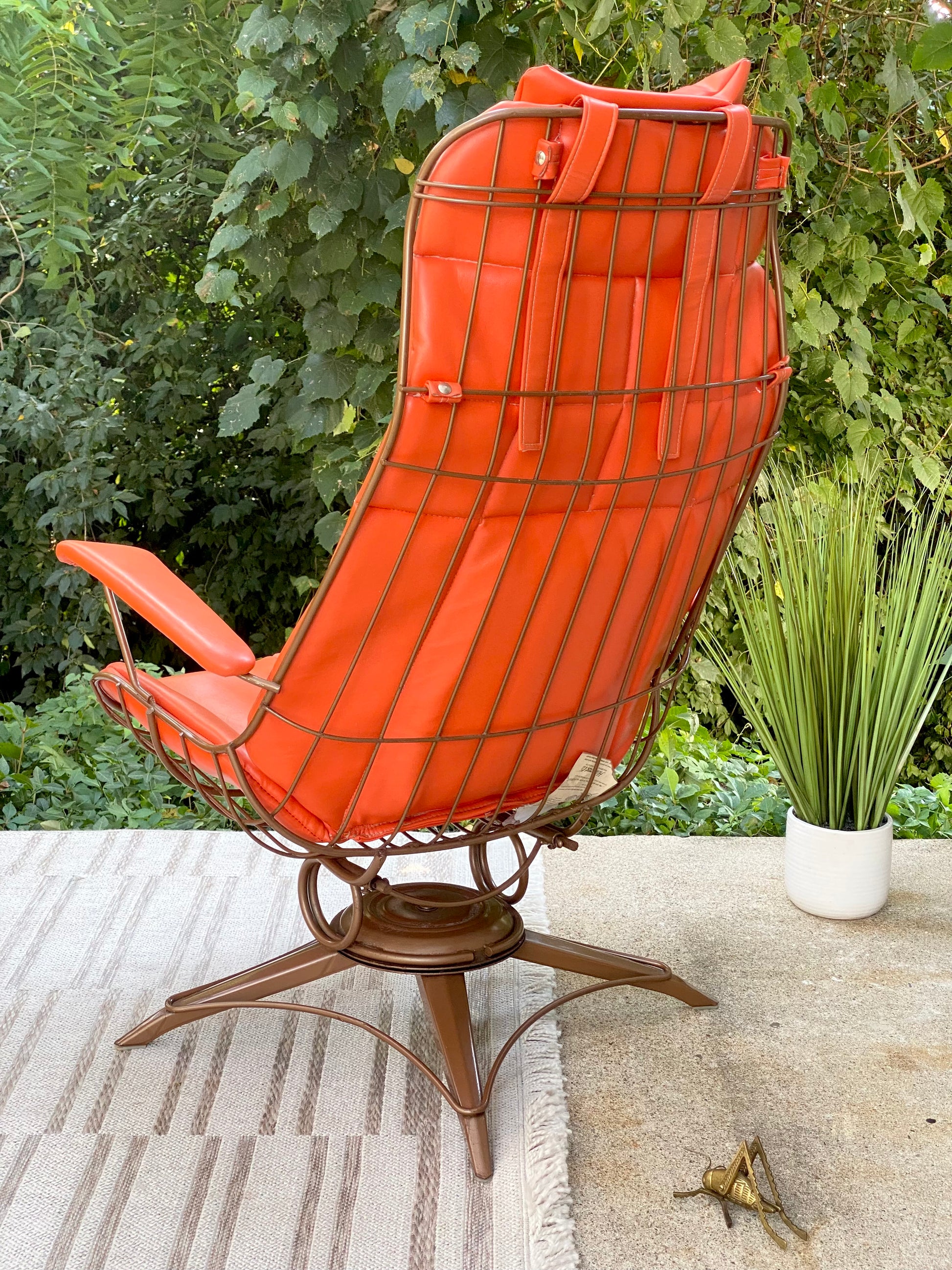 SOLD - OMG! We are in love with this vintage MCM mid century modern lounge chair by Homecrest. Original cushion in nice condition and metal frame construction. ❤️ 44” x 29” x 22”. Good condition