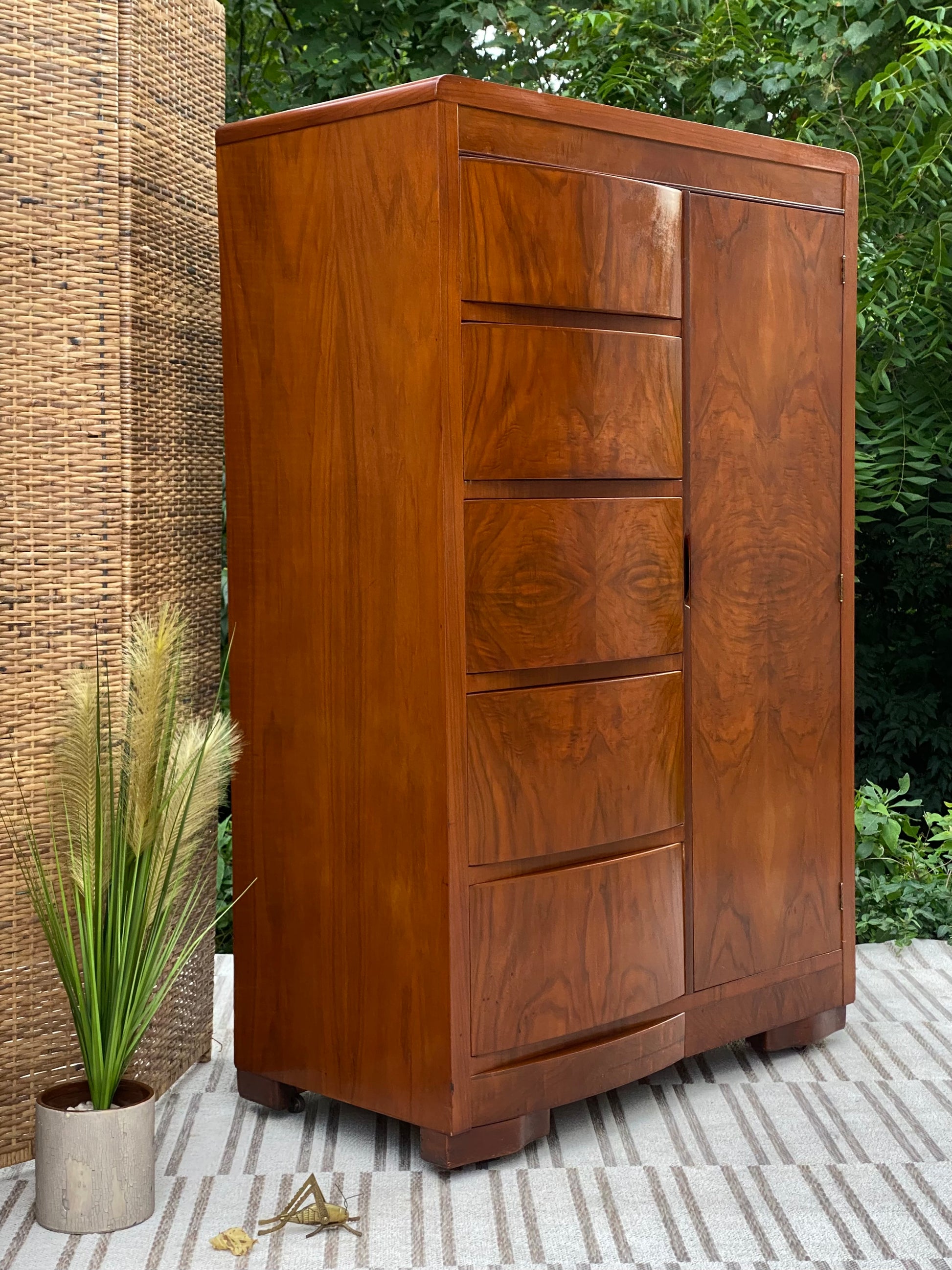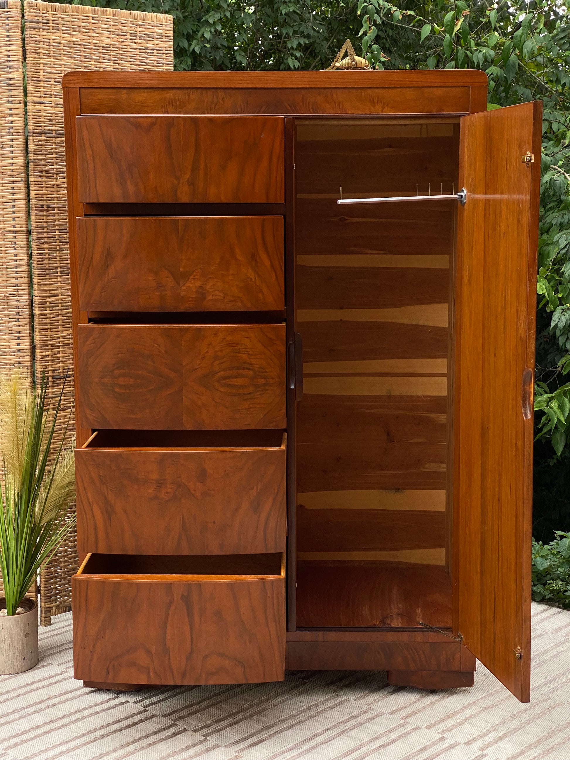 SOLD - New arrival! Check out this beautiful Art Deco cedar armoire. Perfect for storage and such a gorgeous piece ❤️ 63”h X 41” x 20” Nice condition.