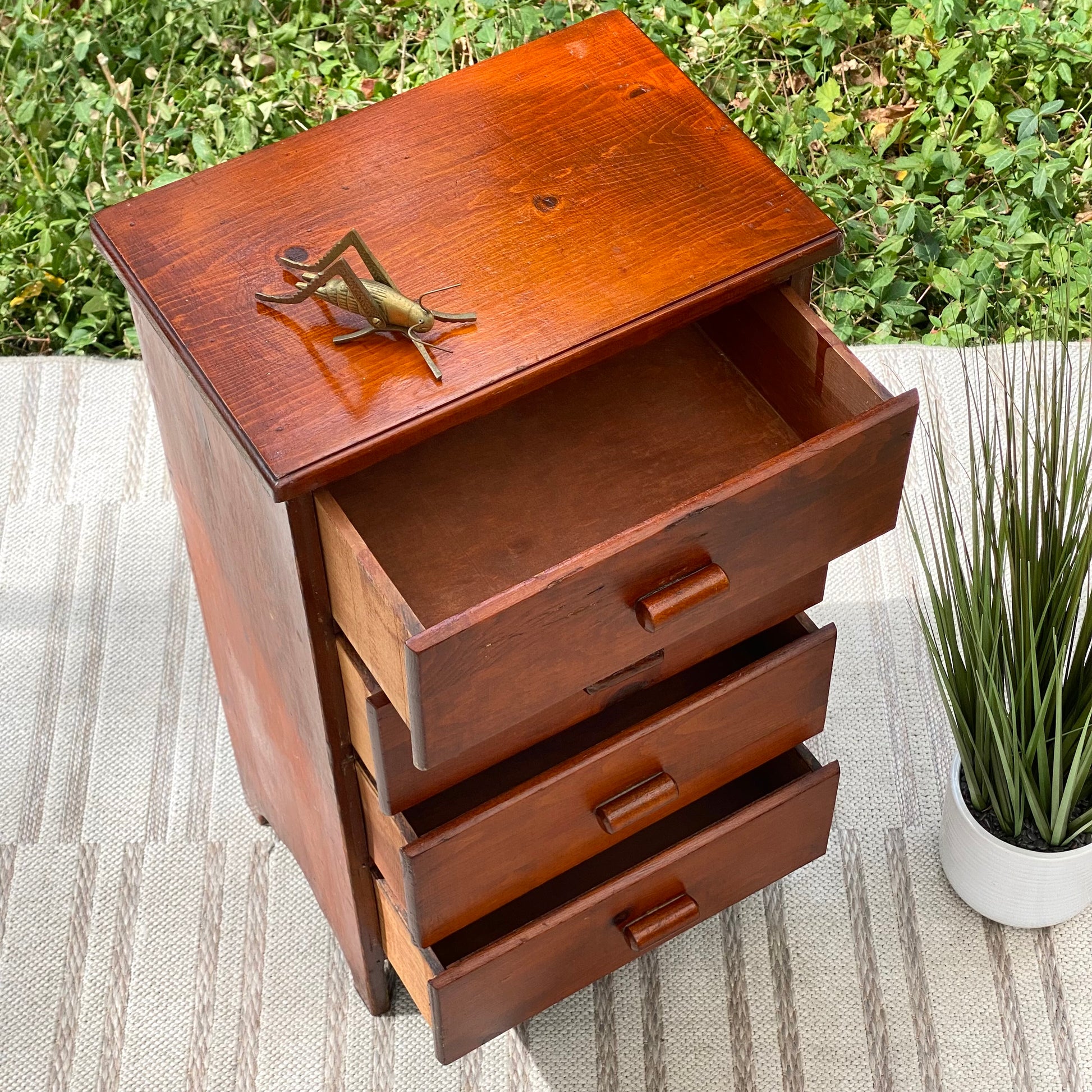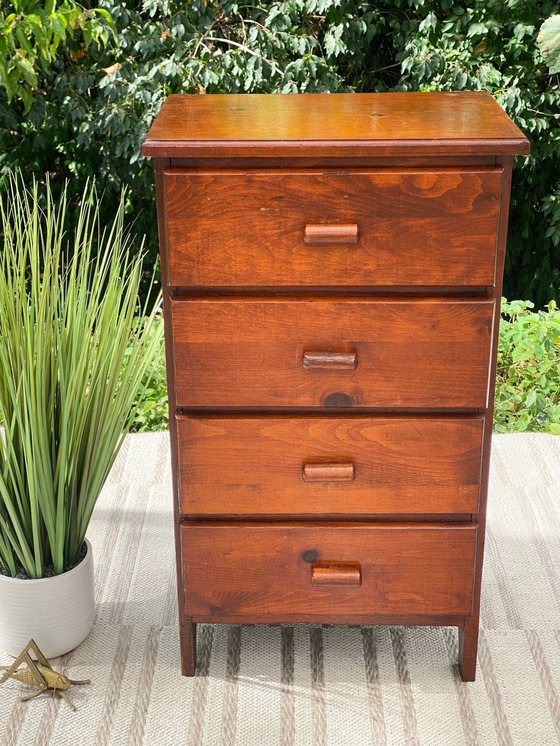 SOLD - Newest arrival! 🧡🍁🦗 Check out this super cute vintage pine 4 drawer dresser. Great size for any room and lots of old charm. 29” x 17” x 12” Good condition