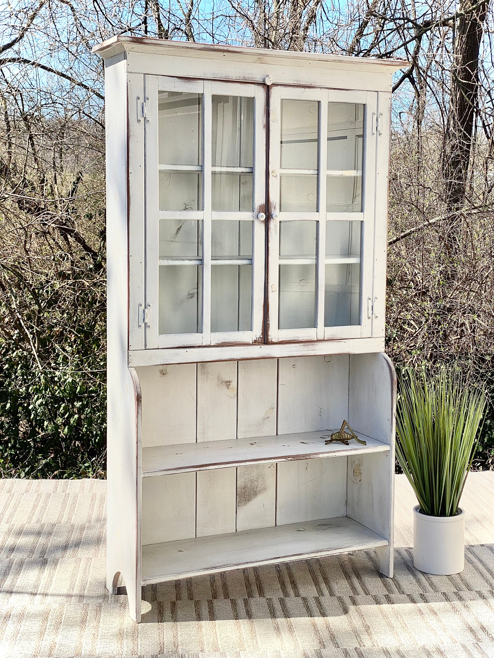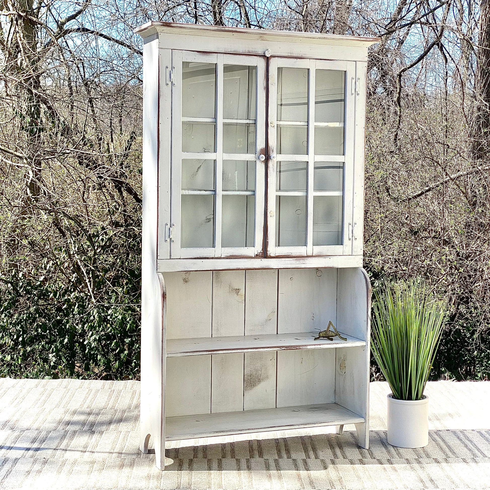 SOLD - Fresh find! 🌱❄️ Check out this nice farmhouse style painted cabinet hutch. Upper display cabinets with lower shelves for storage and display. Handmade by Country Keepsakes. 68” x 39” x 12” Good condition