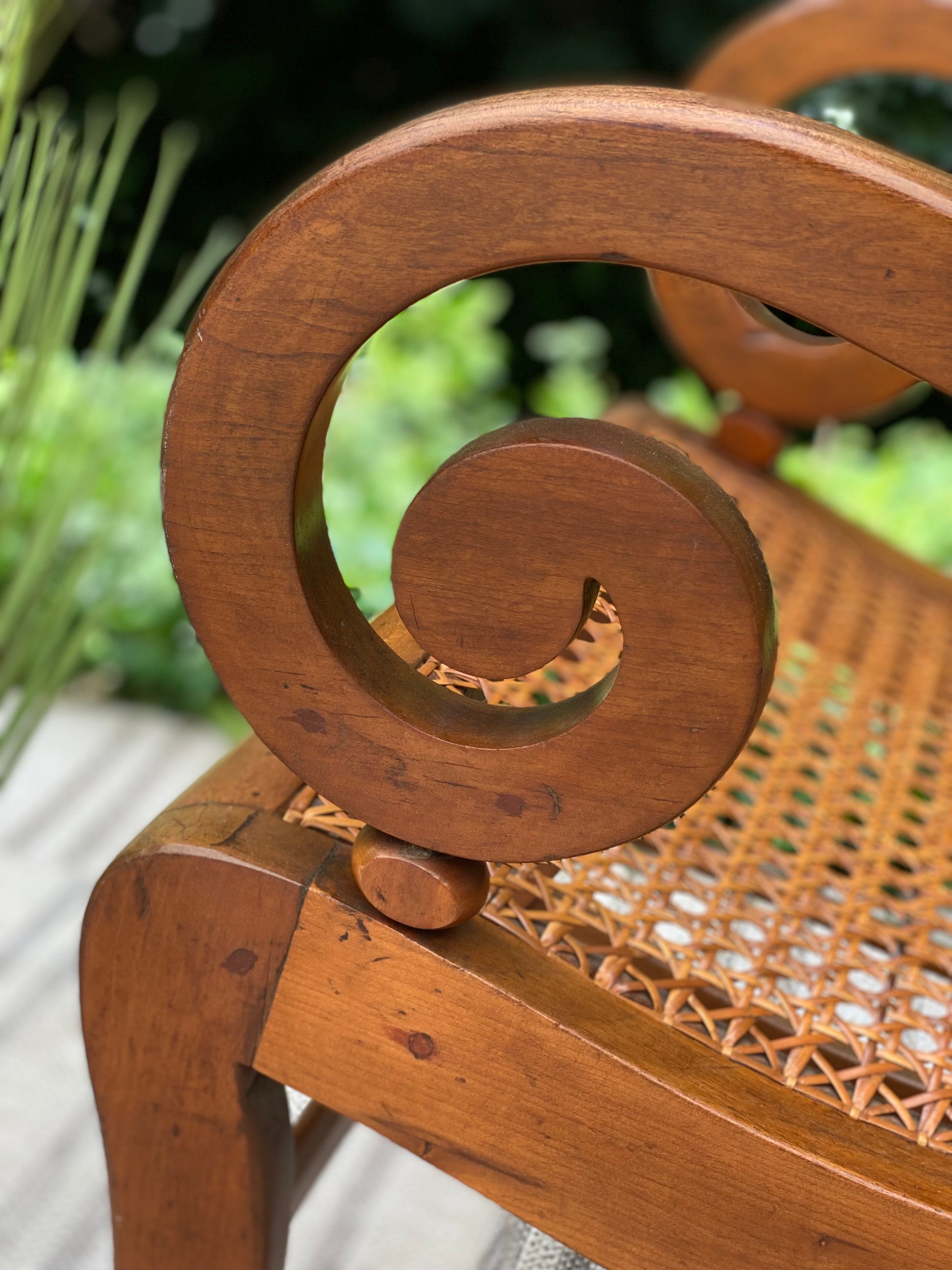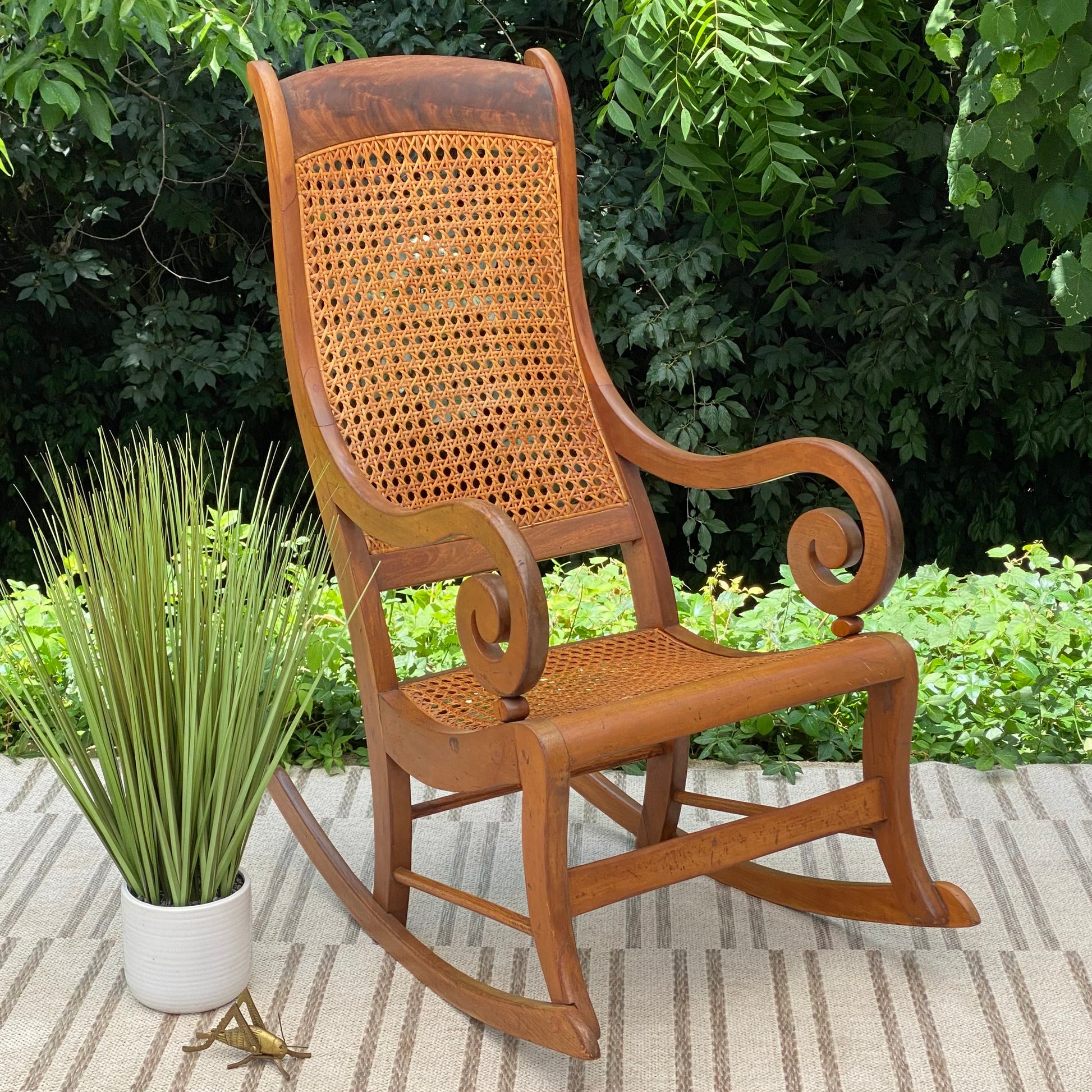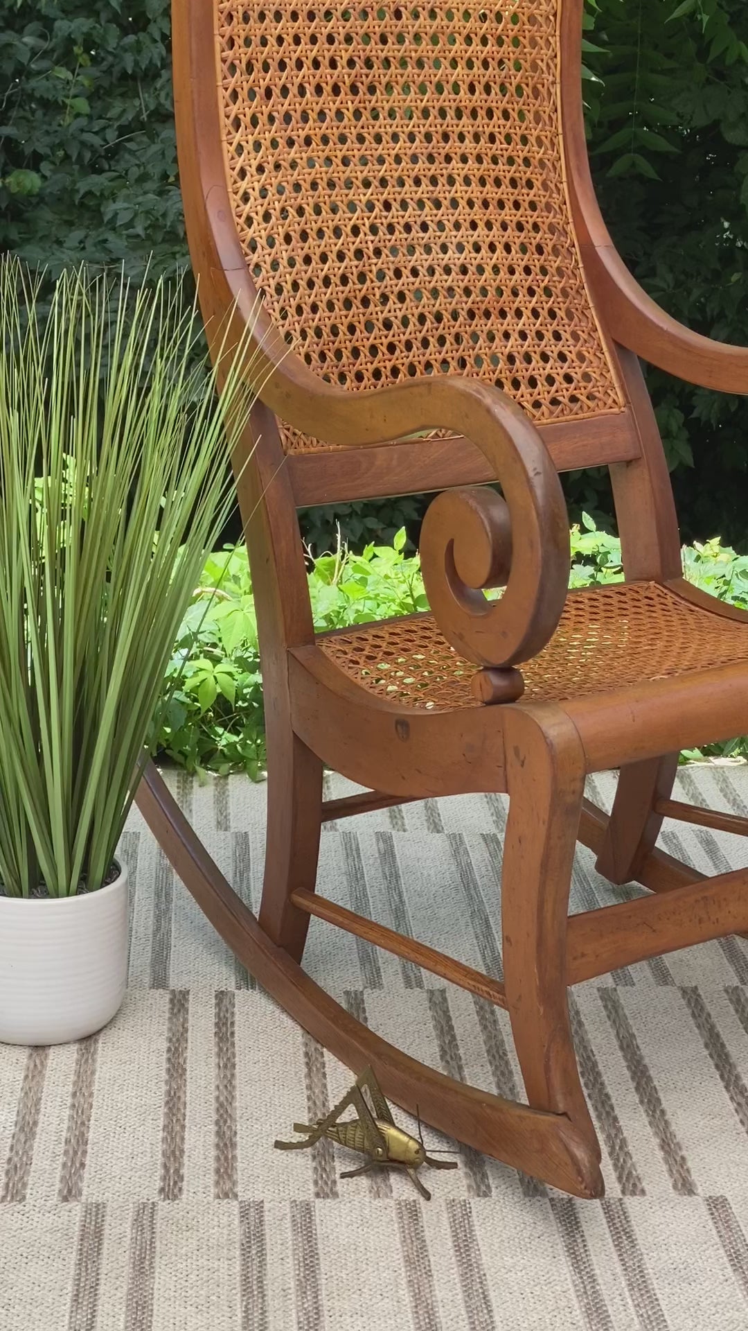 SOLD - Nice antique solid wood rocking with good caning. 41" x 21" x 33". Good condition