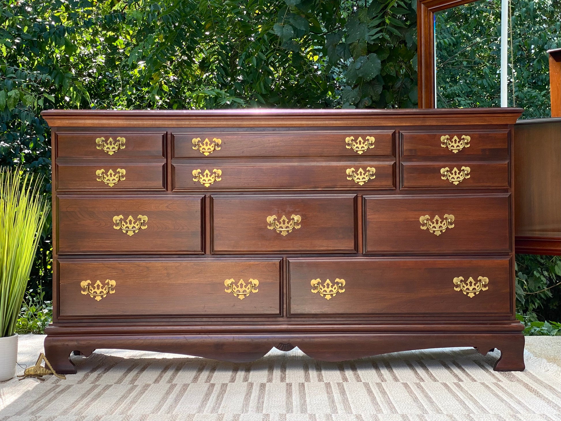 SOLD - New arrival! Nice wooden lowboy 8 drawer dresser. Lots of storage and a great look. 33” x 59” x 19” Good condition