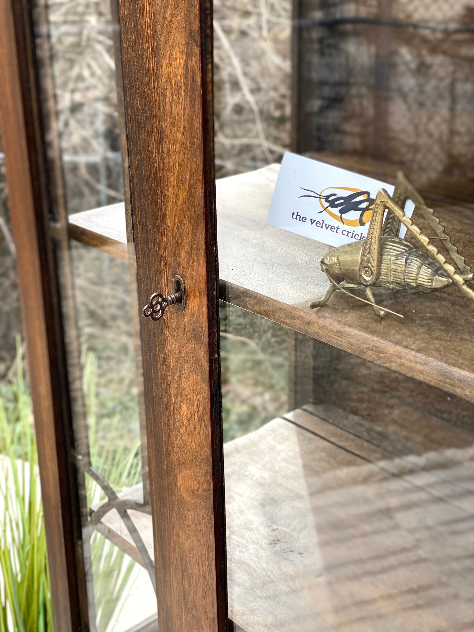 New arrival! ❄️🍁 We know we are loving this beautiful vintage National Cloak & Suit Co. wooden display curio cabinet. Glass front and sides with shelving for your best treasures. 60”h x 40” x 16” Good condition