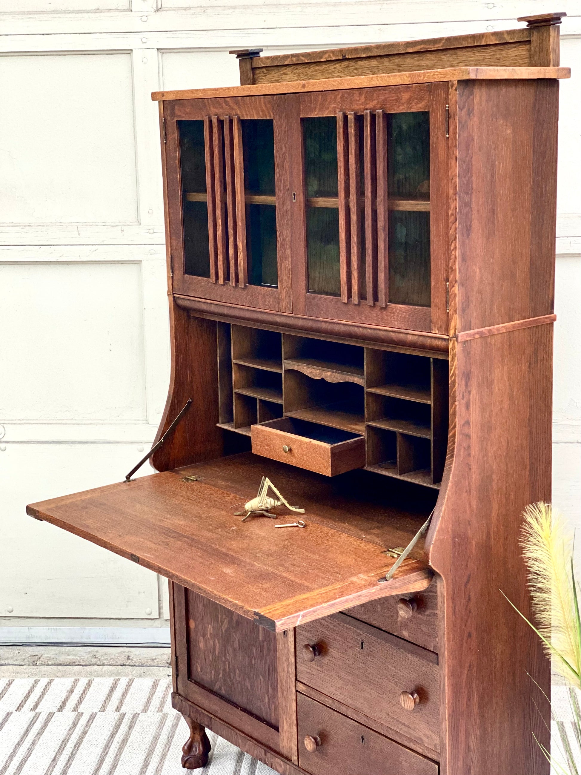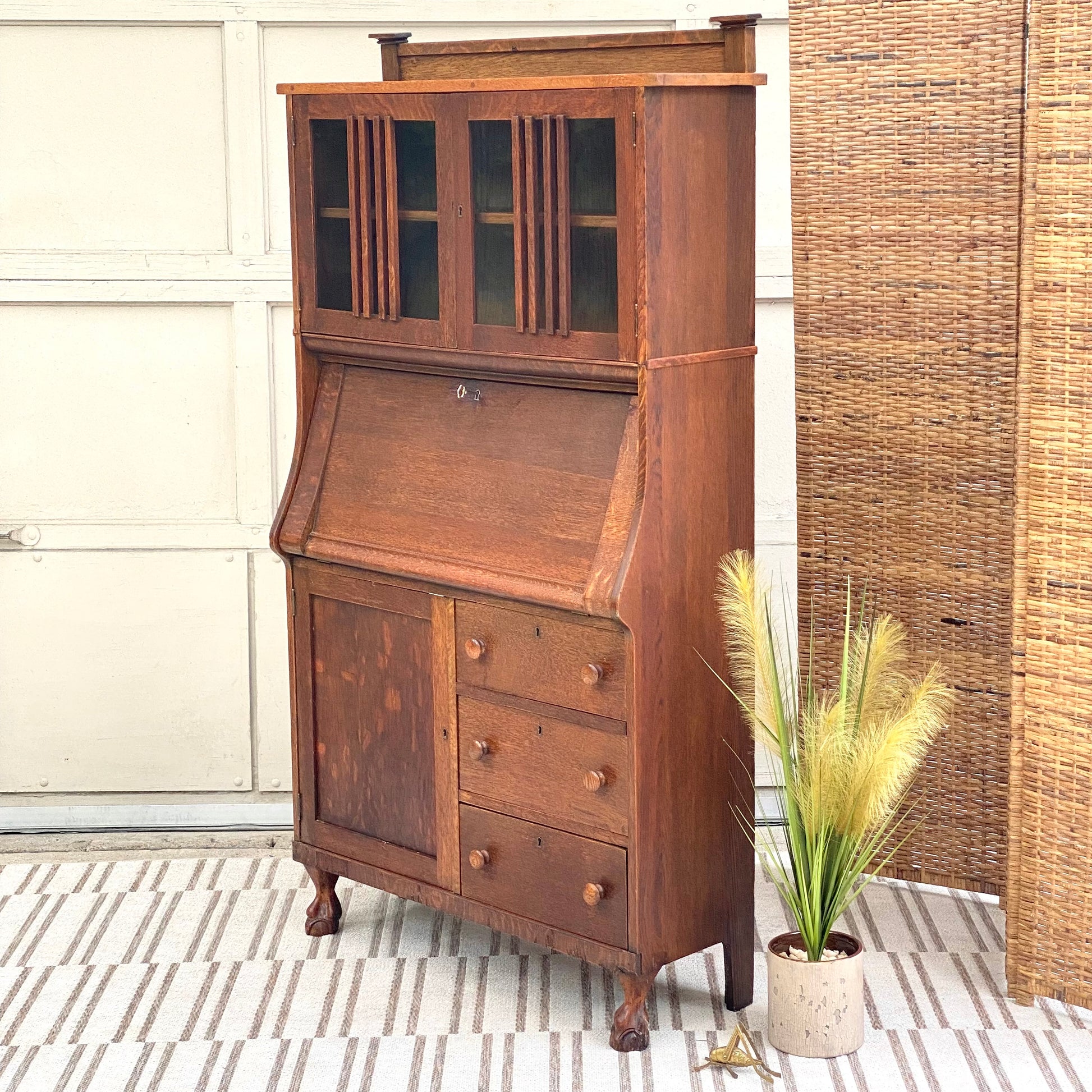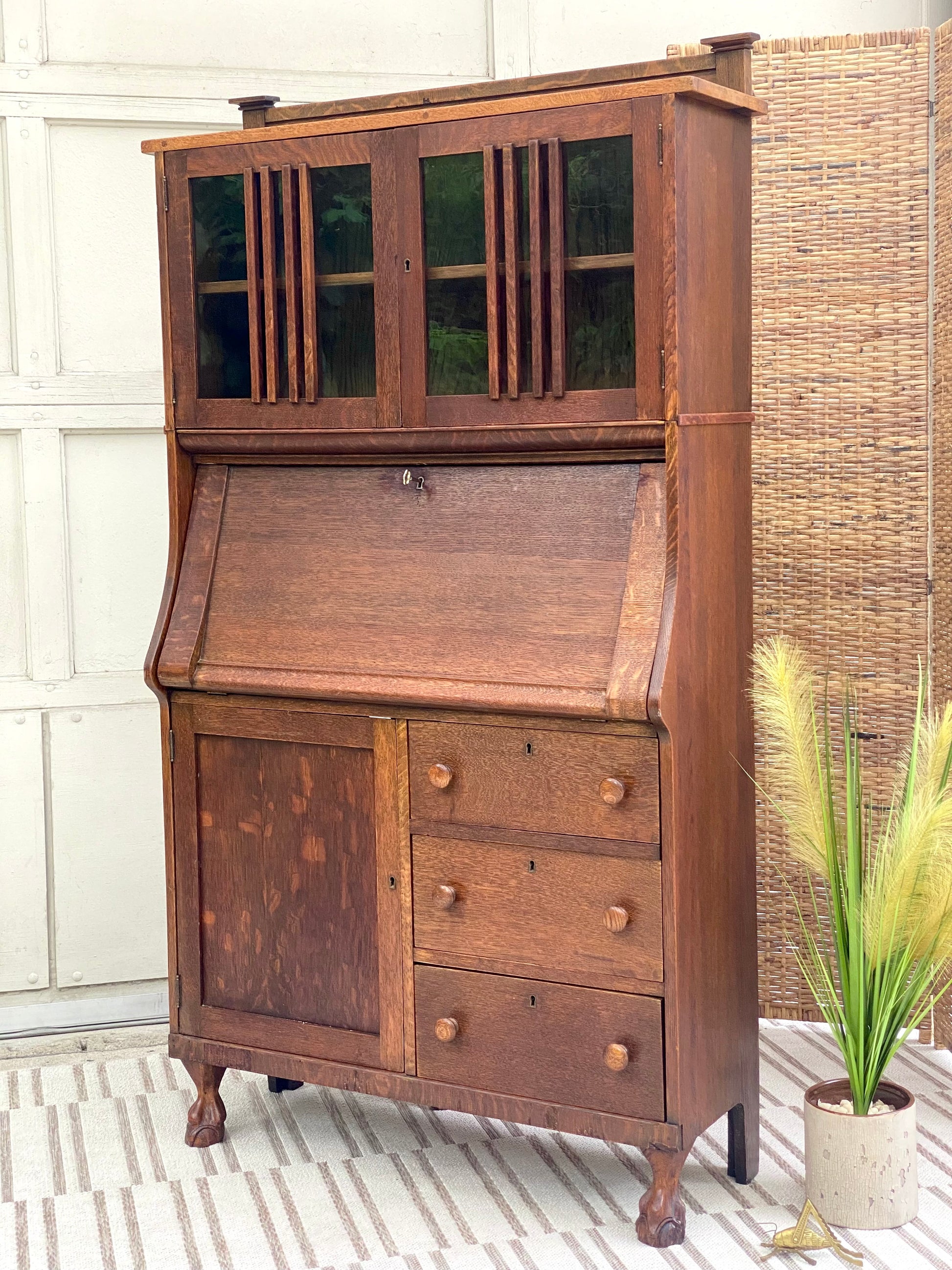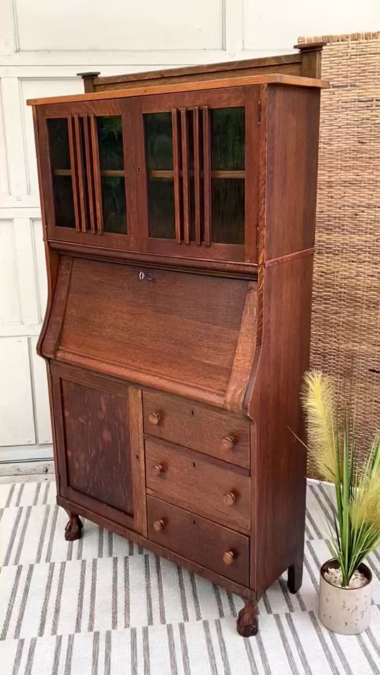 Vintage Oak Secretary Arts & Crafts Bookcase