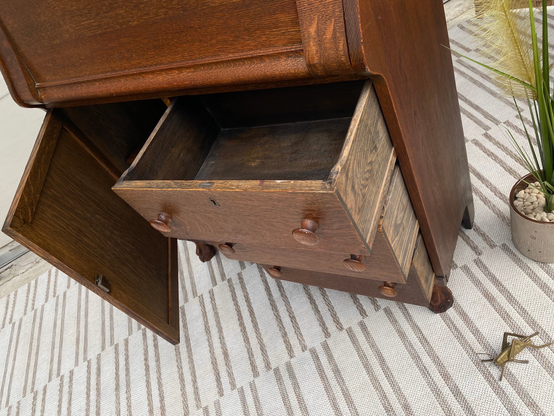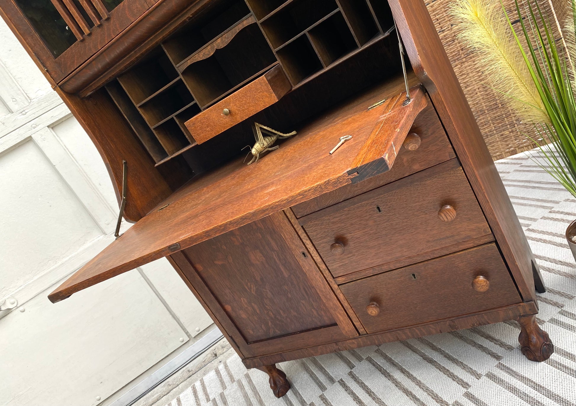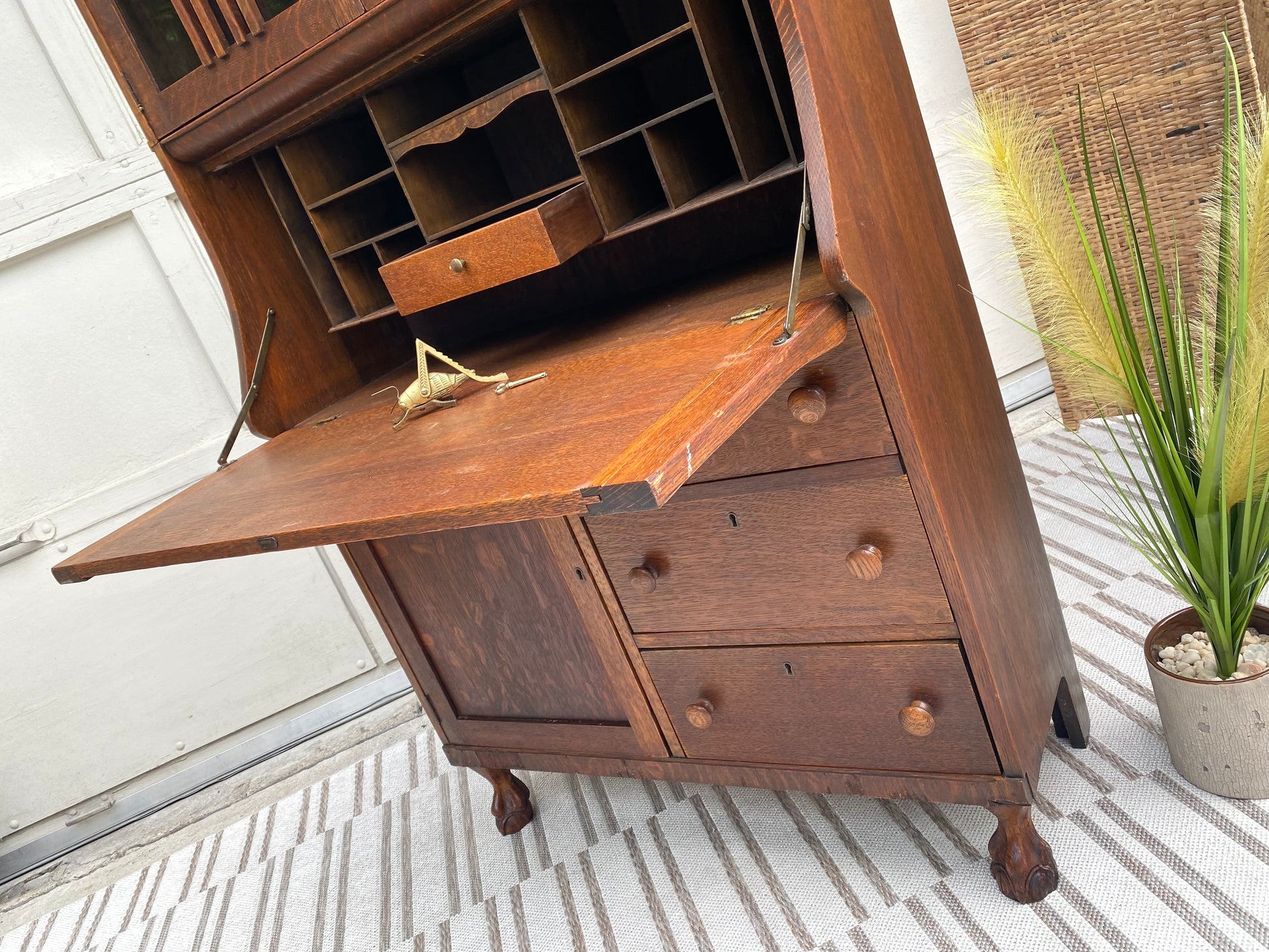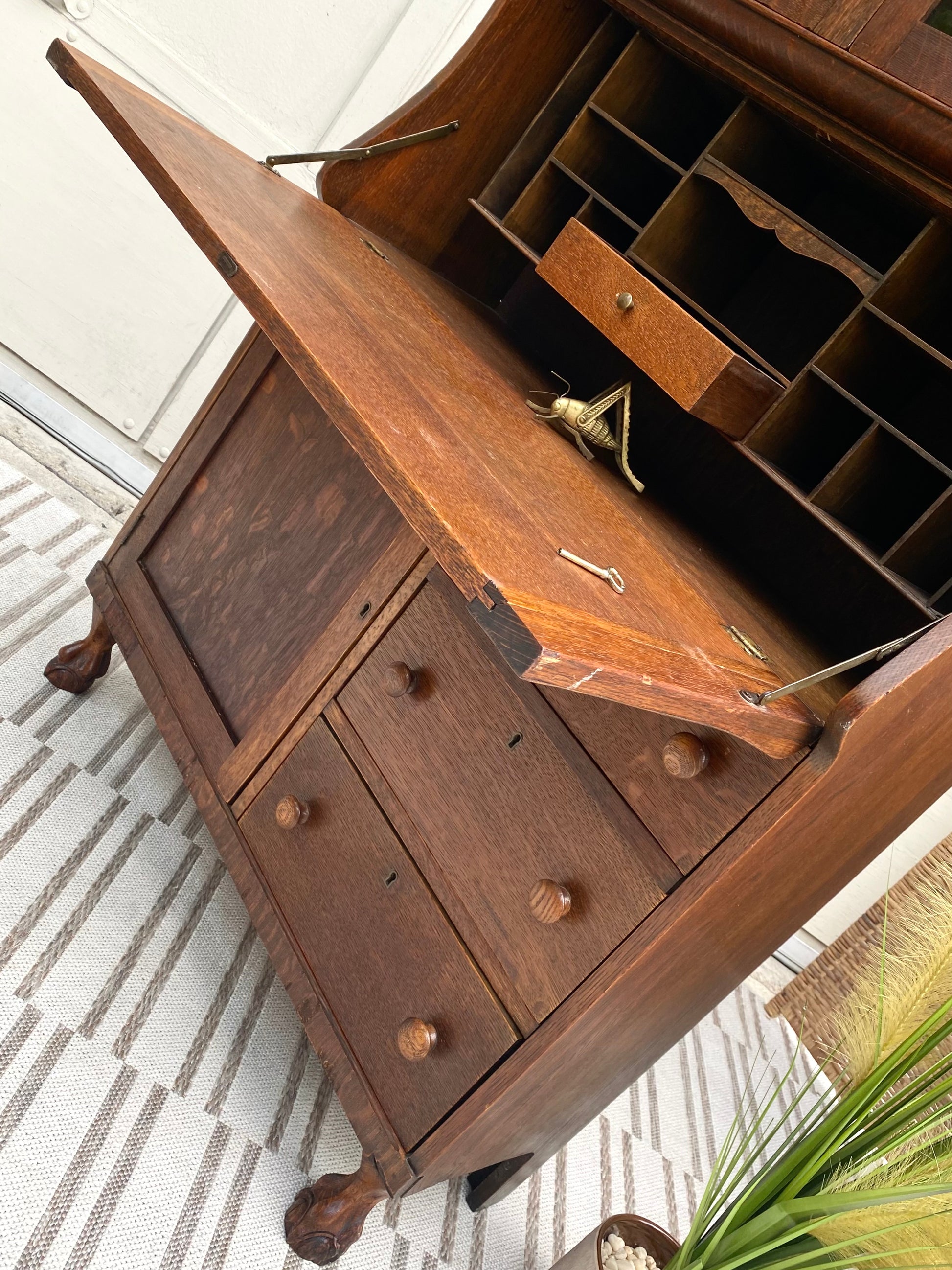 Vintage Oak Secretary Arts & Crafts Bookcase