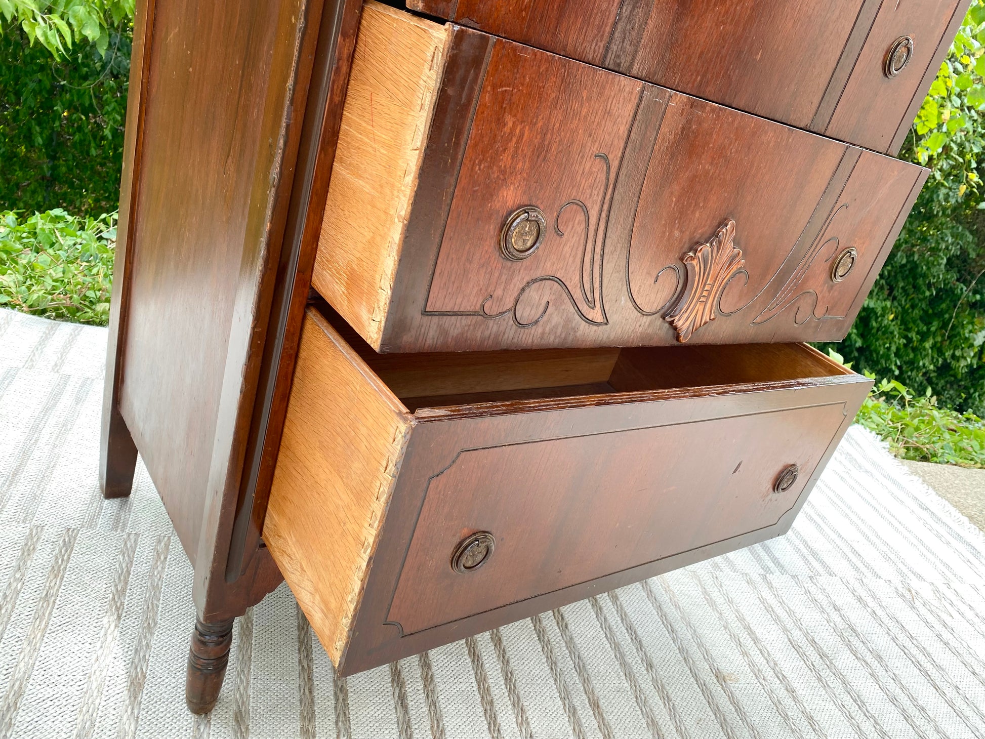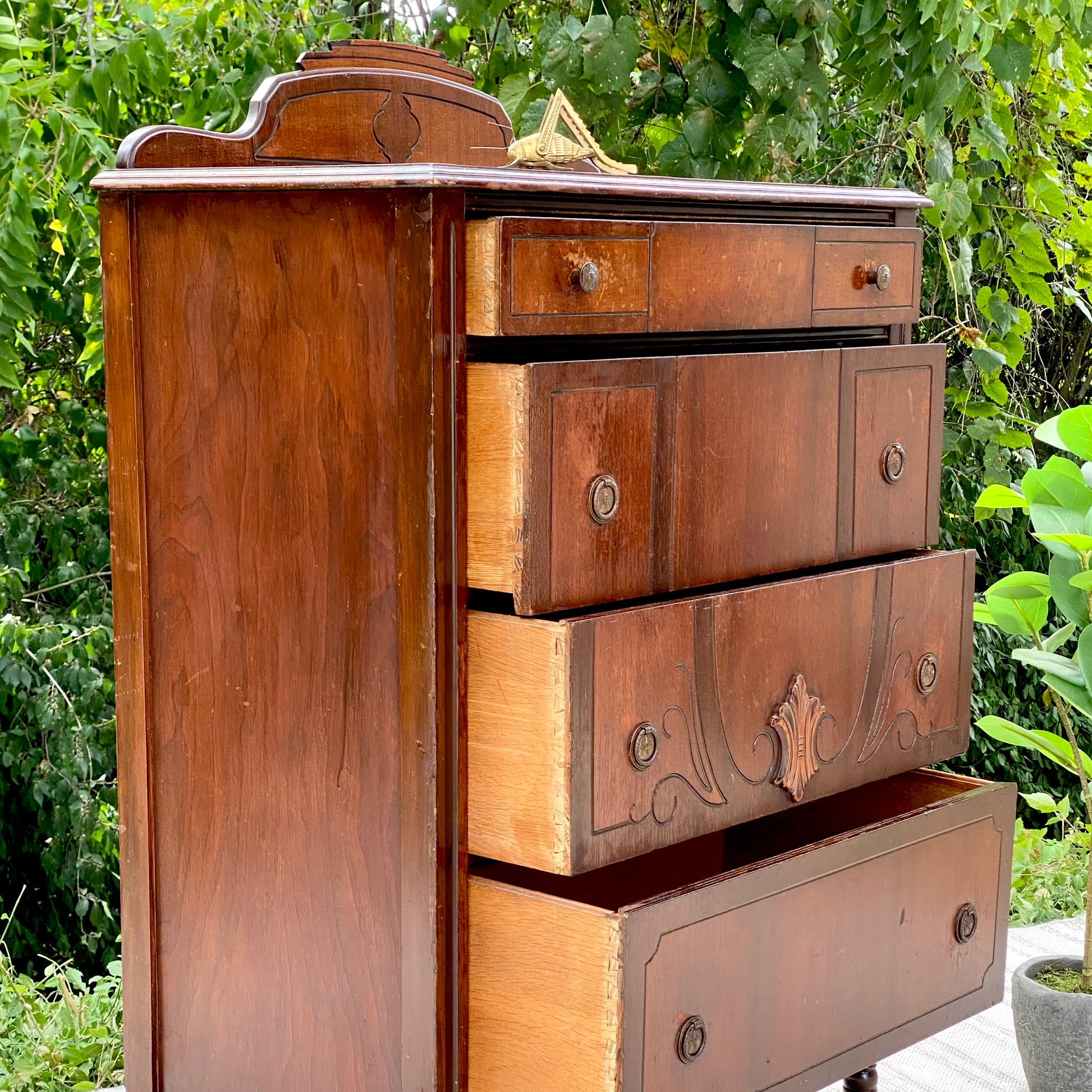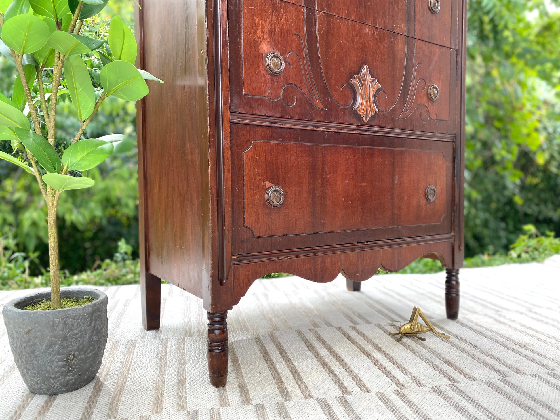 SOLD - New arrival! 🍁🧡 Check out this Dayton Furniture vintage walnut four drawer dresser with original pulls and hardware great storage piece and has tons of character! 51” x 31” x 18” Good condition