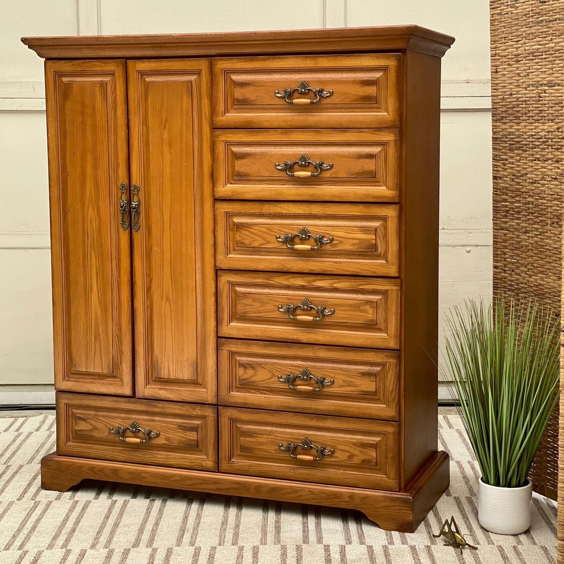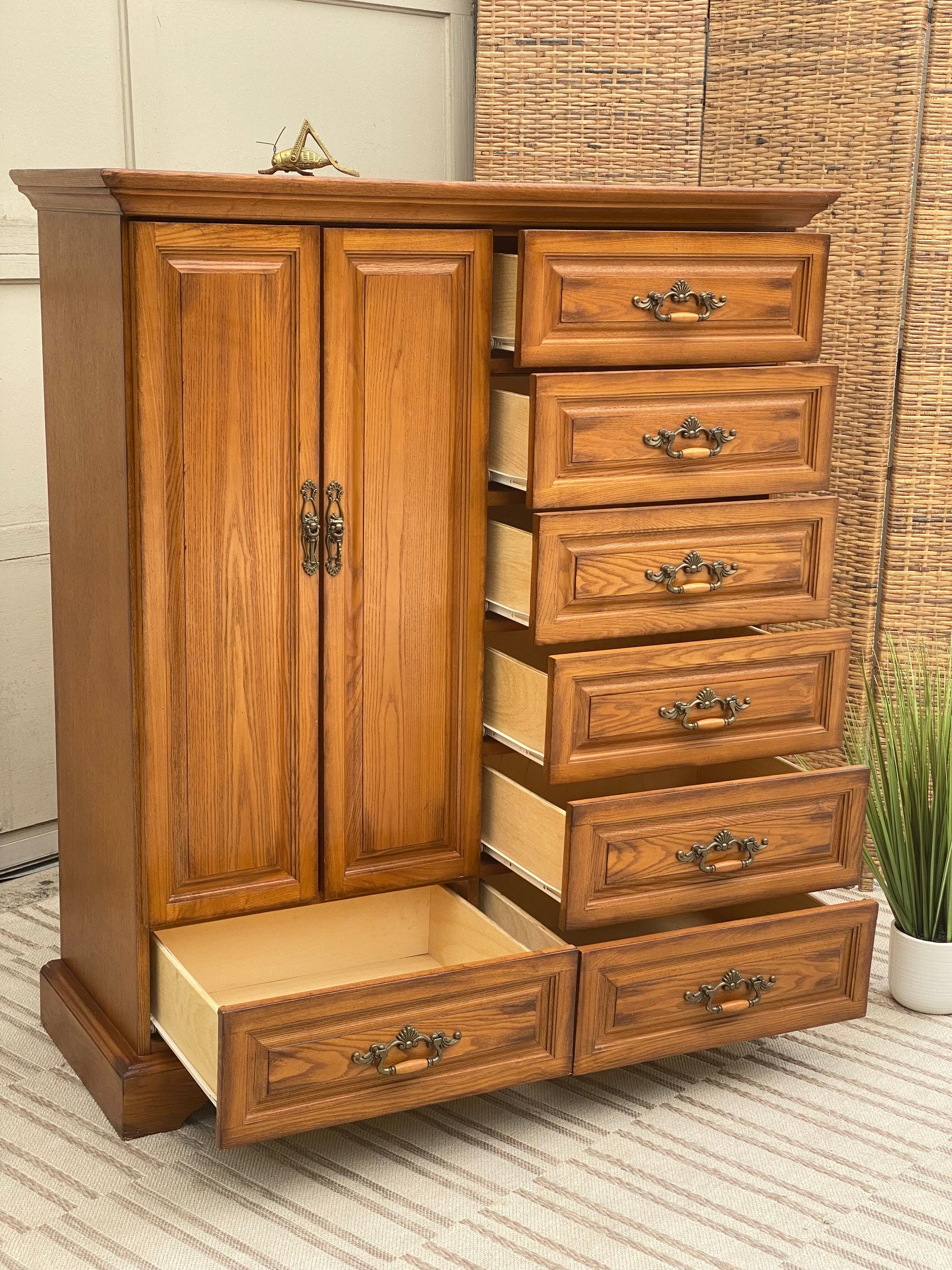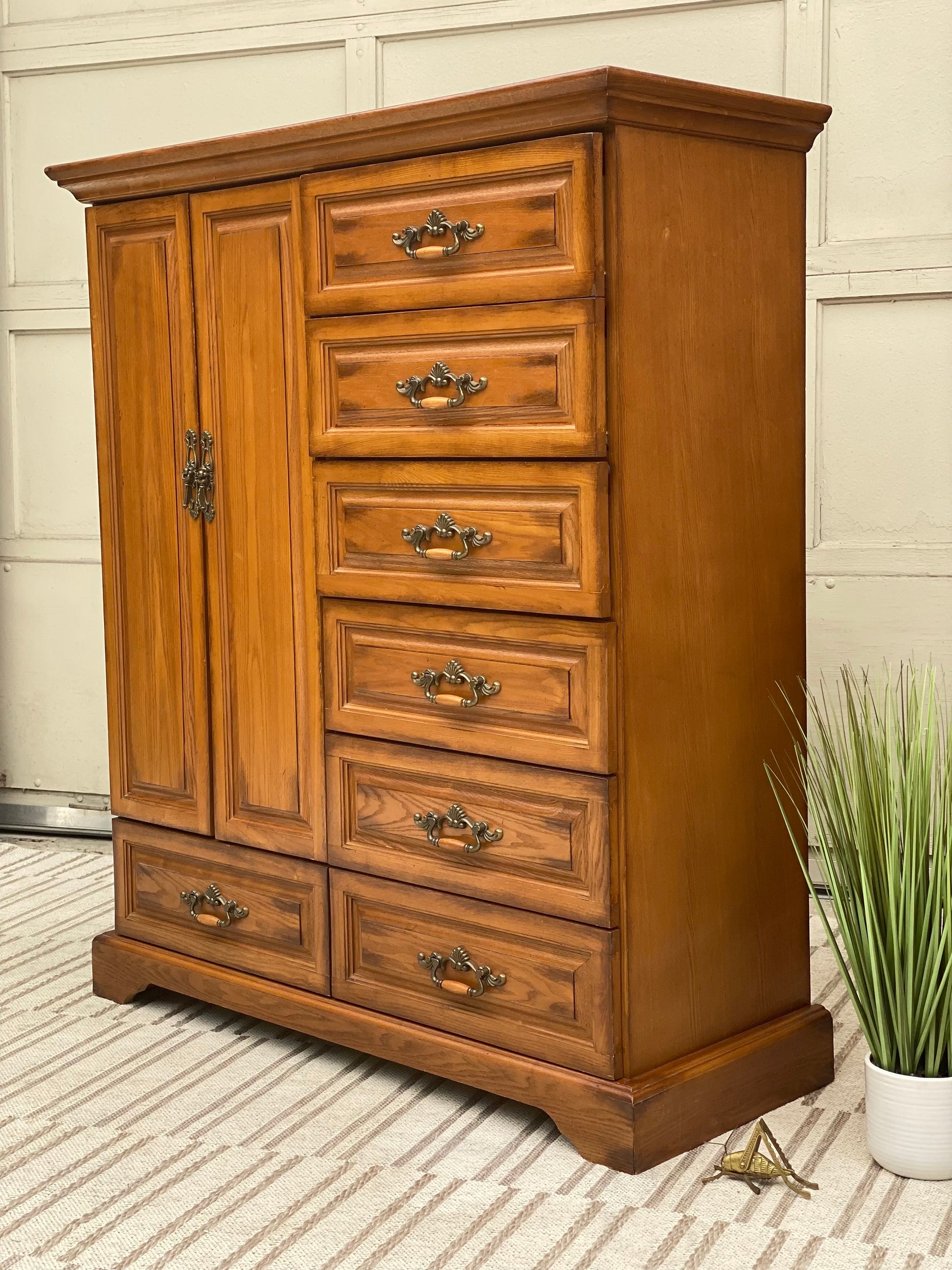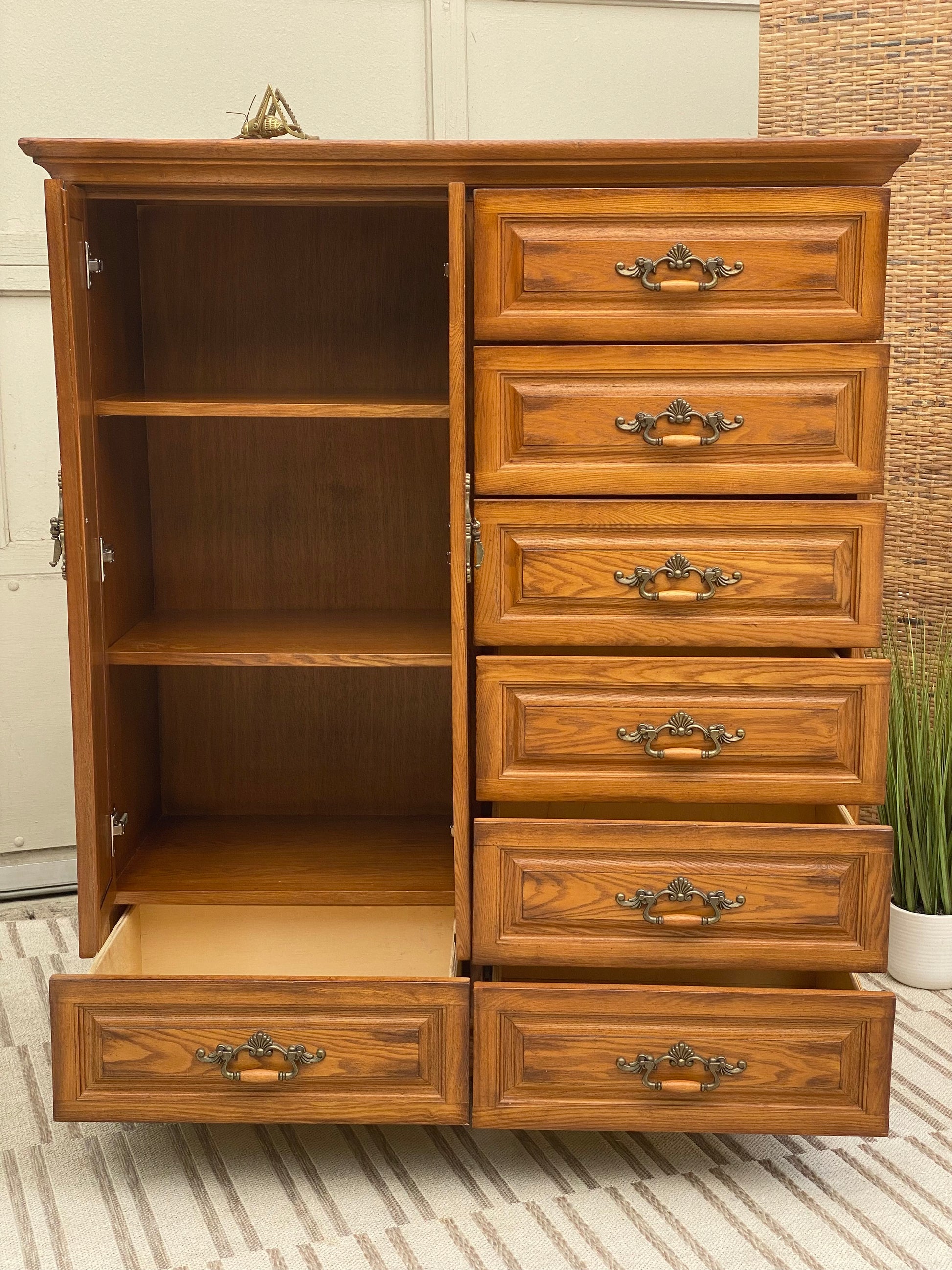 SOLD - Beautiful oak 7 drawer dresser. Lot of great storage and a really nice piece. 55” x 47” x 19”. Good condition