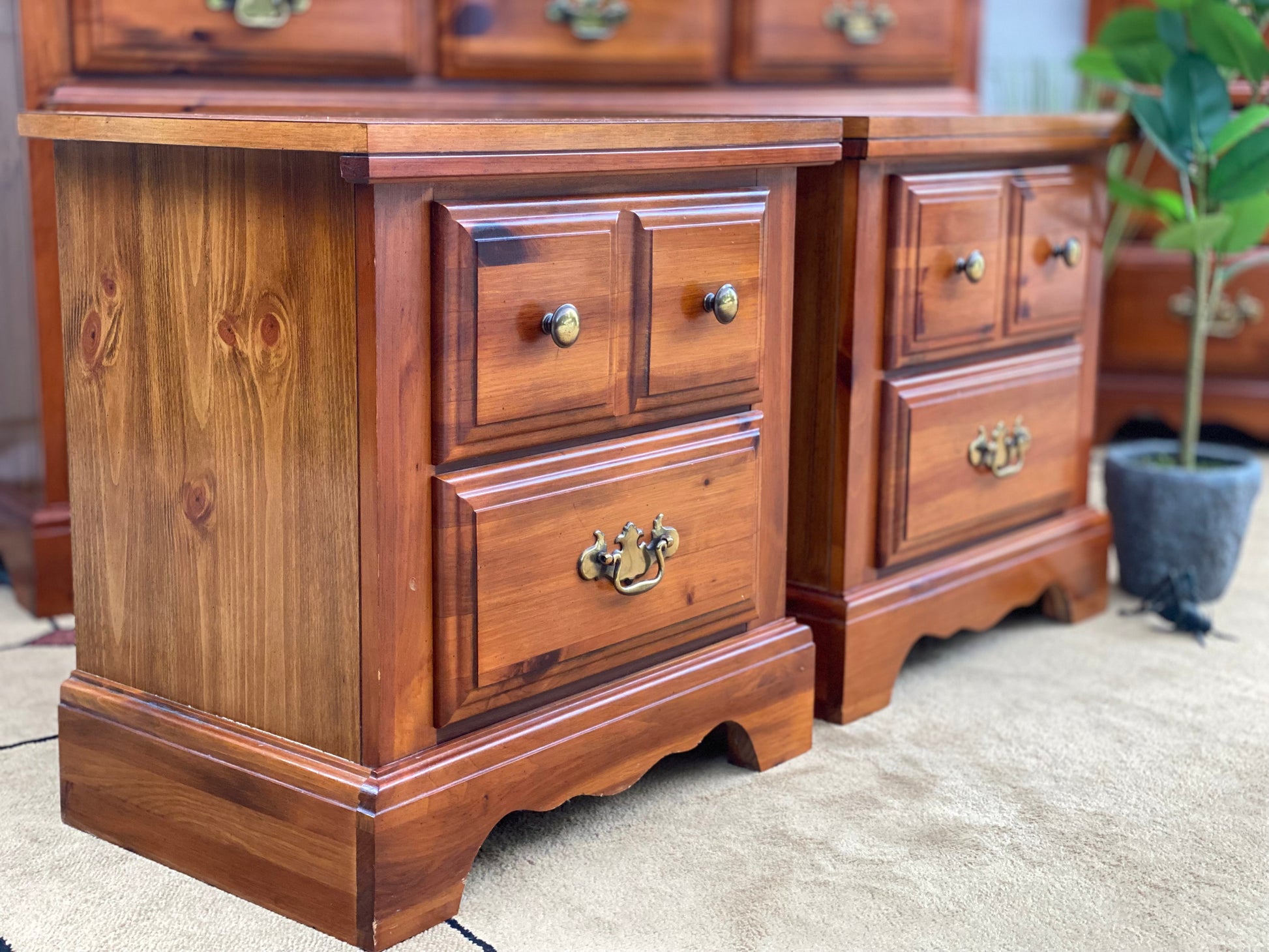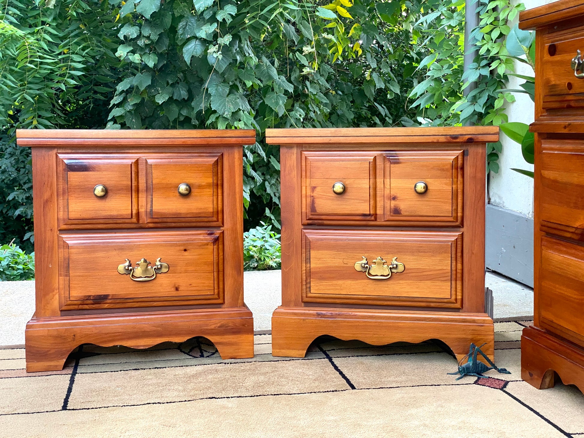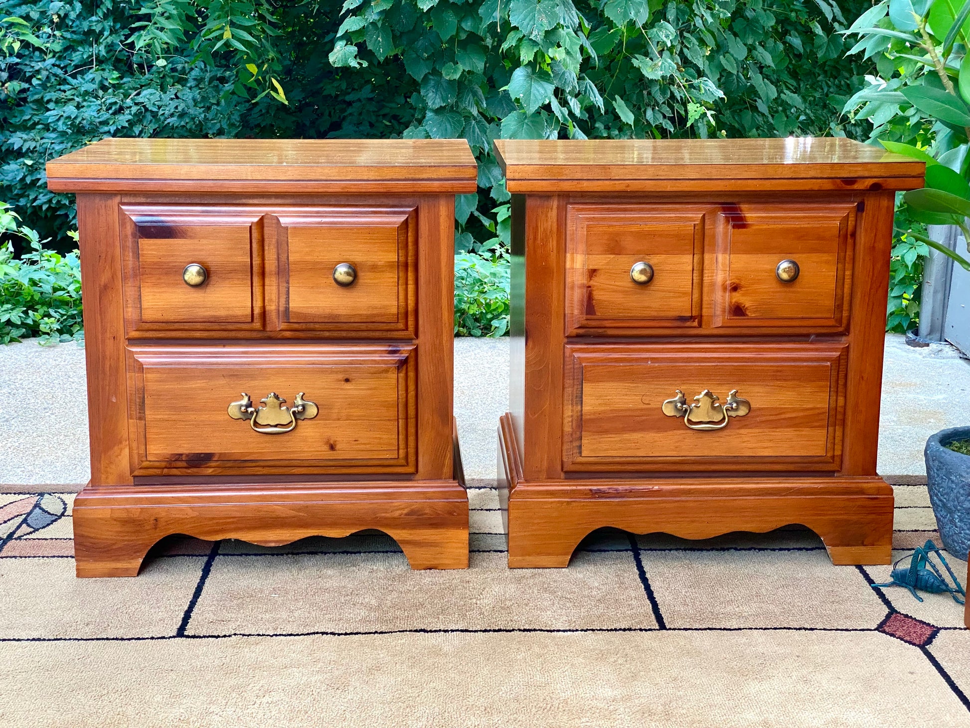 SOLD - New arrival! Check out this pair of vintage Broyhill classic nightstands. 22" x 22" x 15". Good condition.