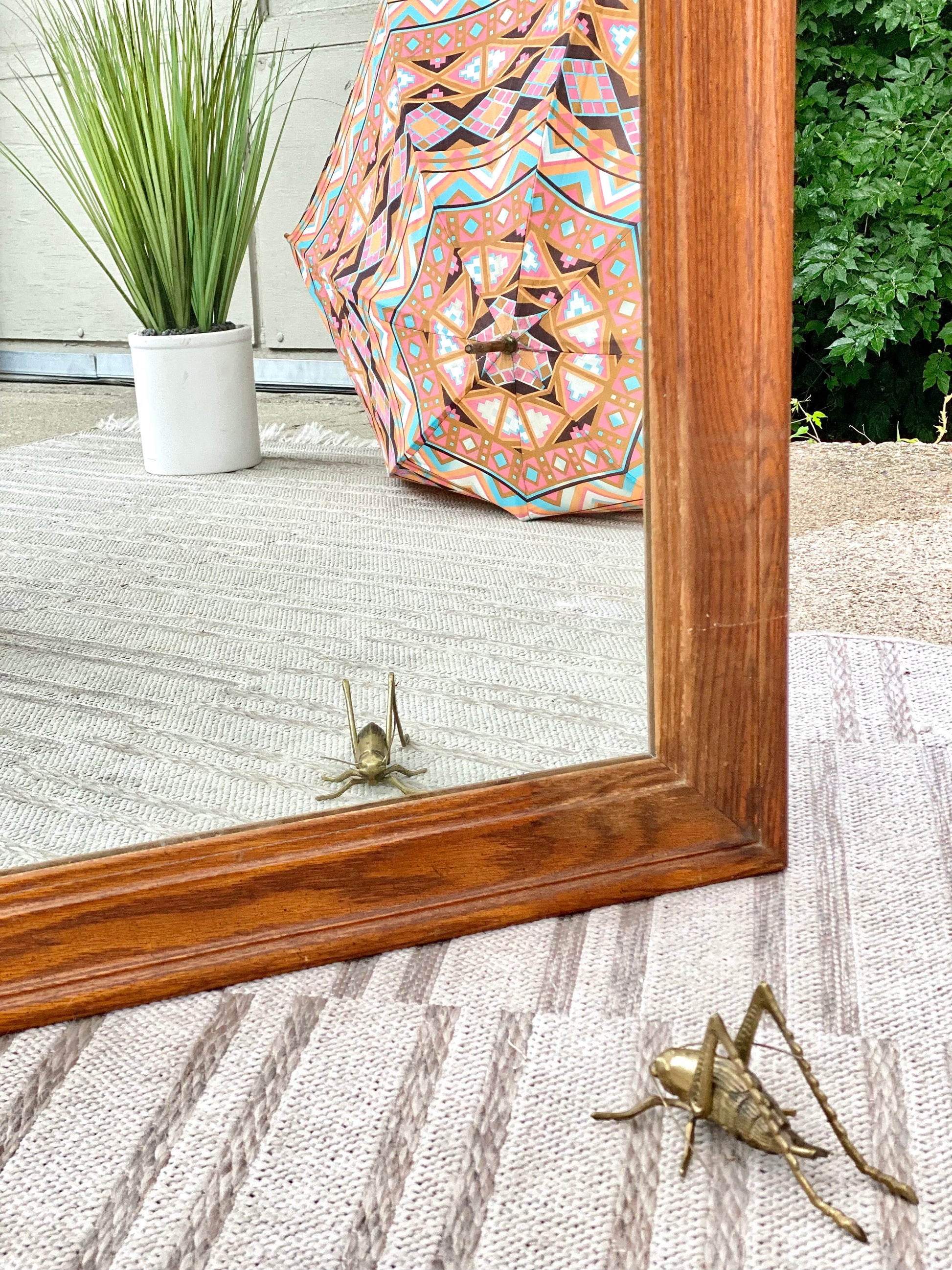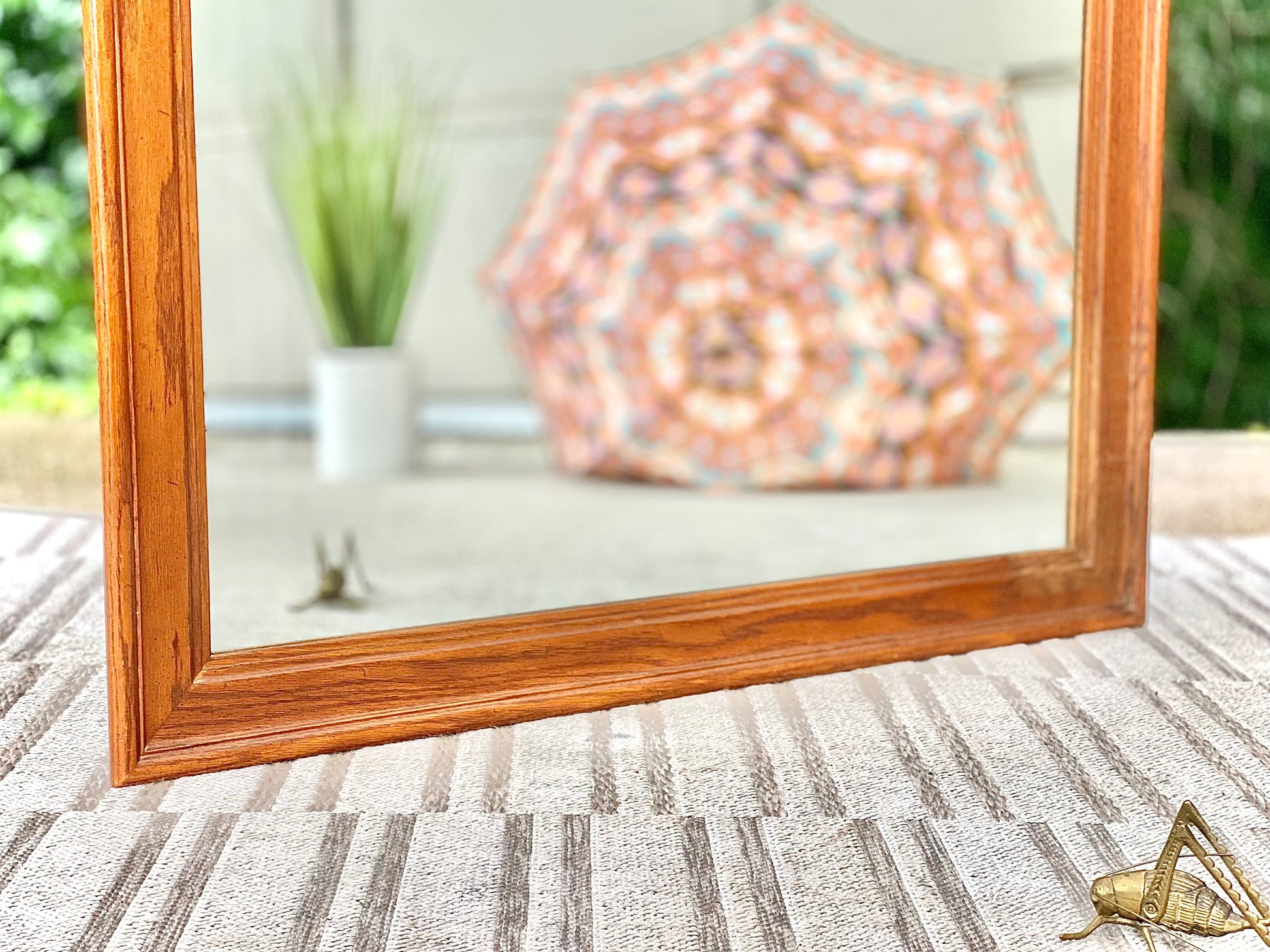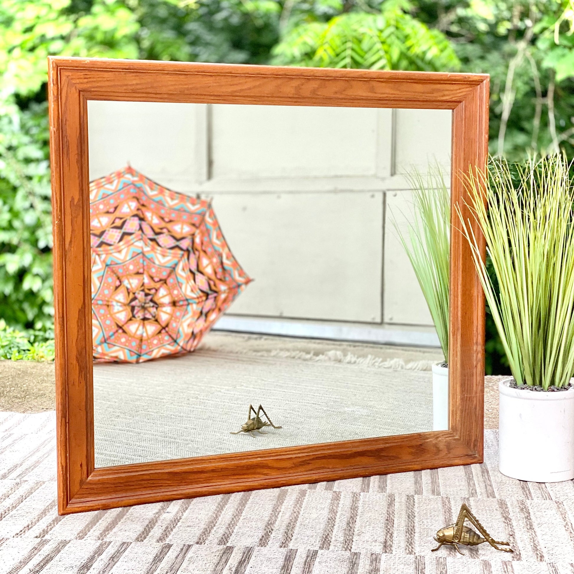 Fresh find! 🪴🌱 We love this large wooden framed rectangular mirror. Ready to hang and made in the USA. 35”h x 39” Good condition