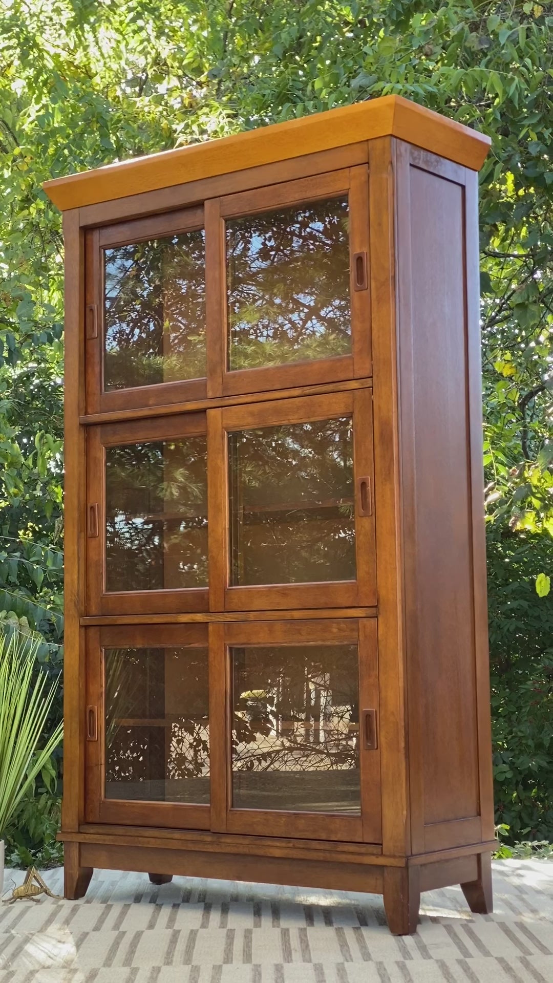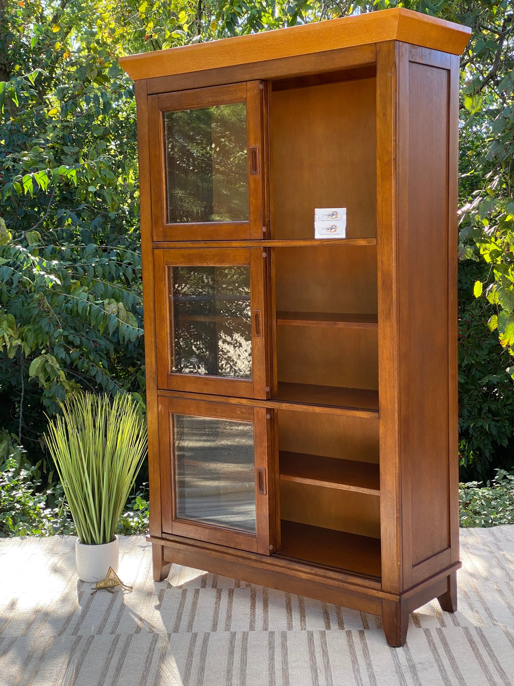 SOLD - Newest arrival! 🧡🍁 Check out this nice modern wooden 3 tier bookcase display cabinet with sliding glass doors. Awesome storage and display with classic vibes. 69” x 42” x 16” Good condition