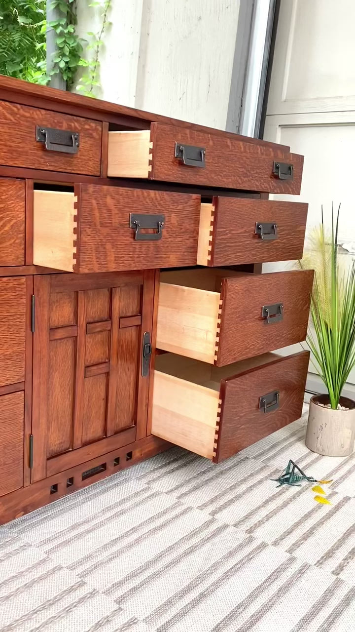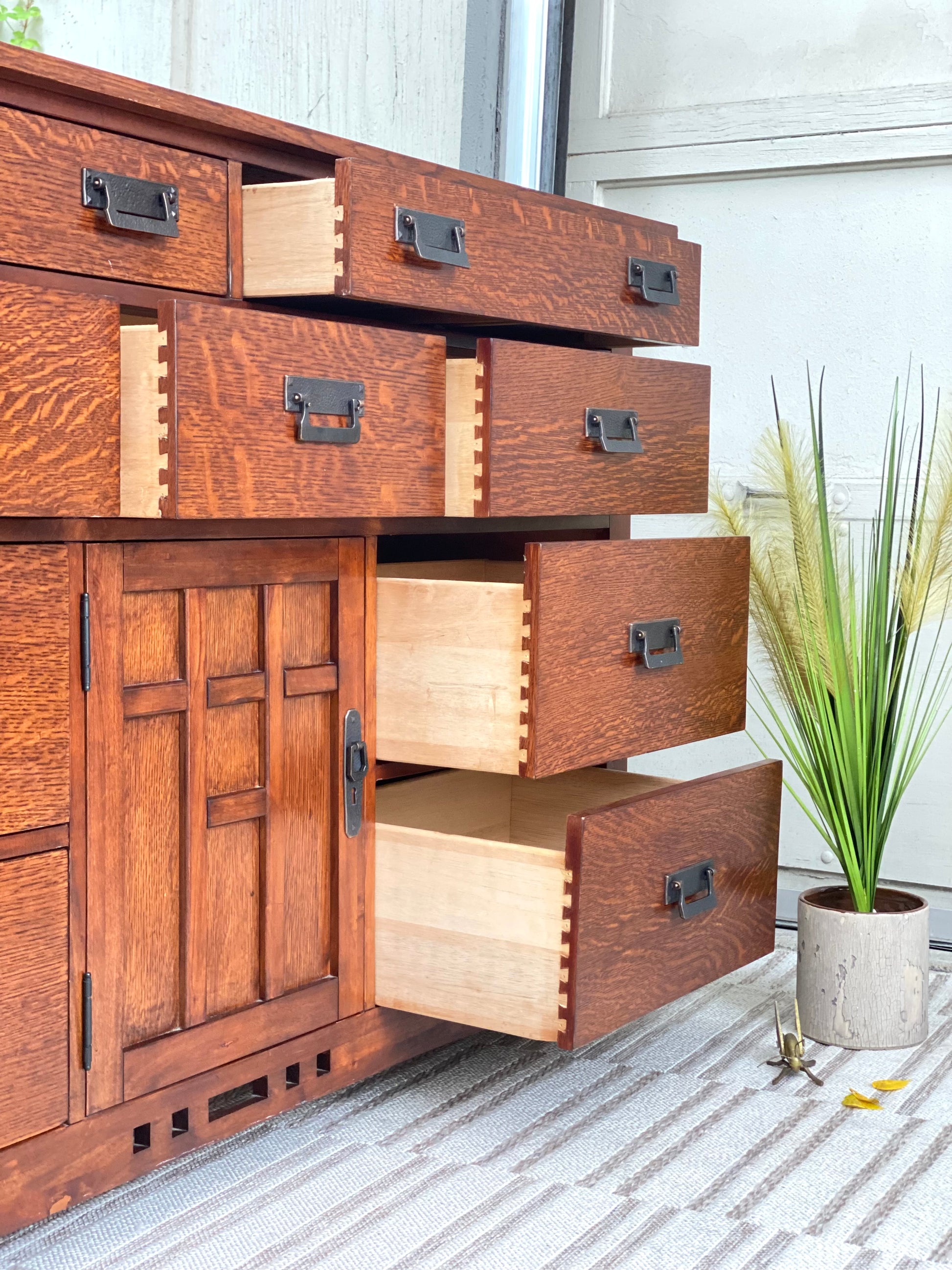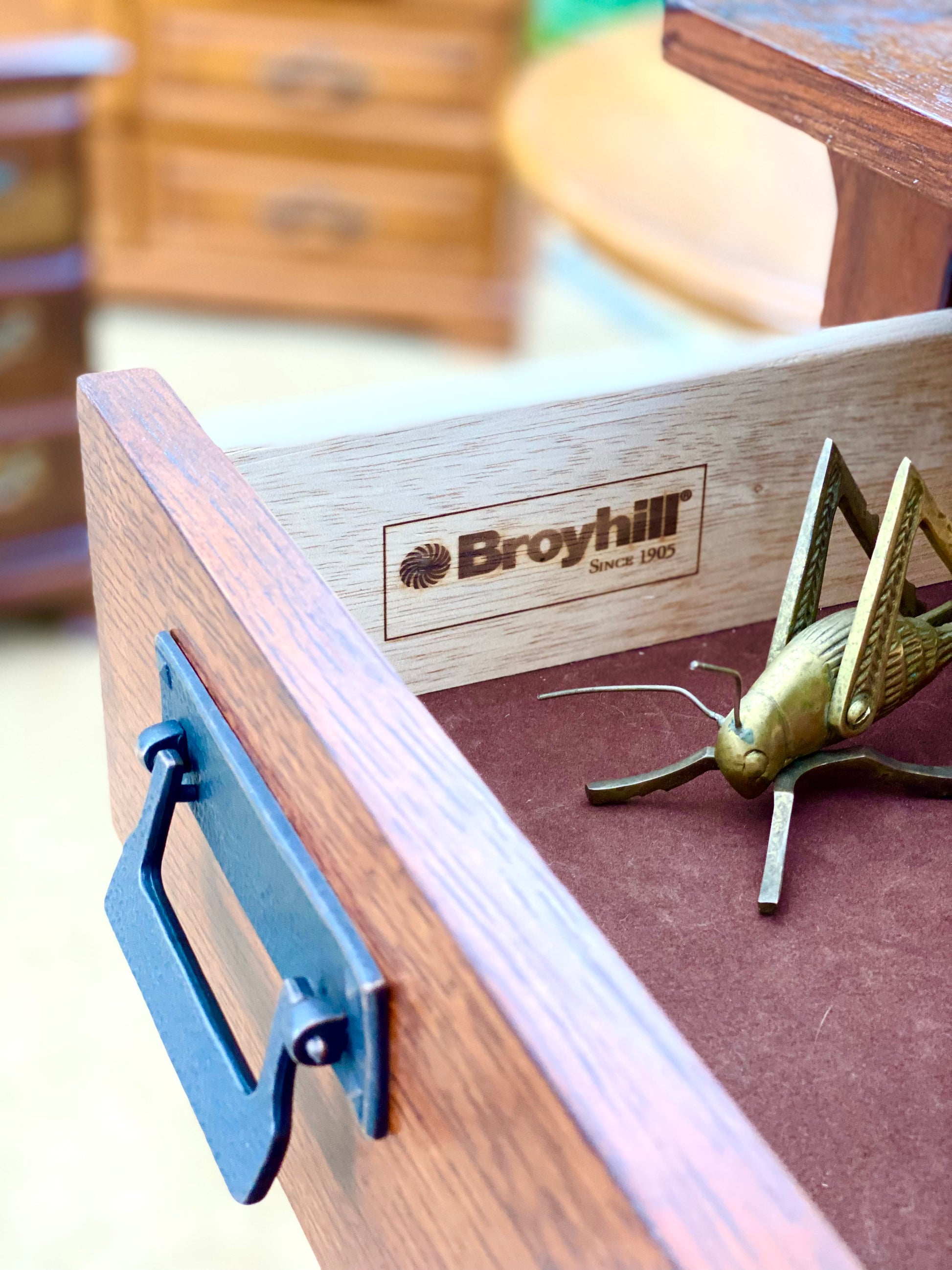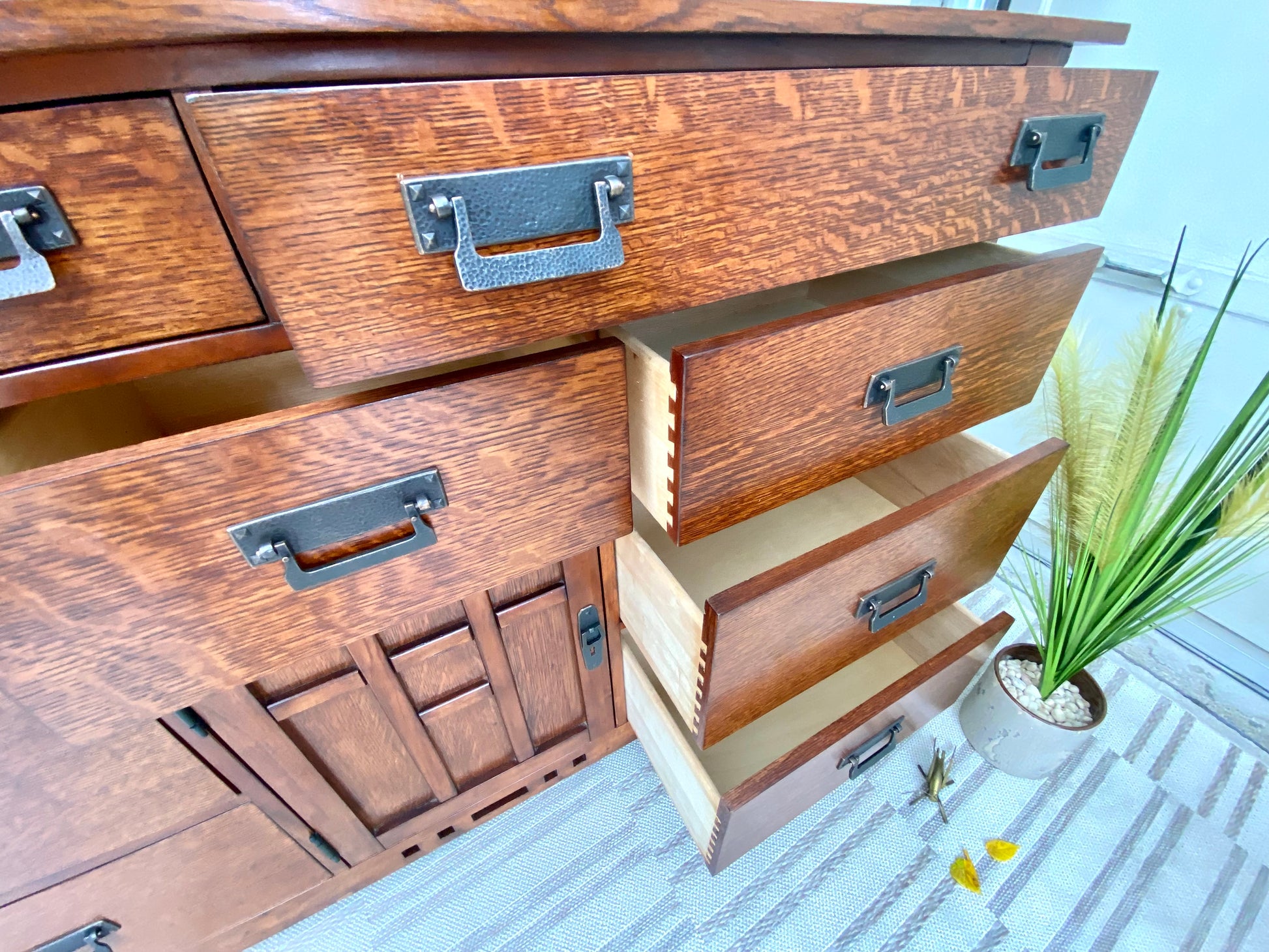 SOLD - Newest arrival! A modern Arts & Crafts Broyhill style 9 drawer dress with extra center storage door. Great look with a classic design. Very light wear spot on top. 40” x 66” x 18” Good condition.
