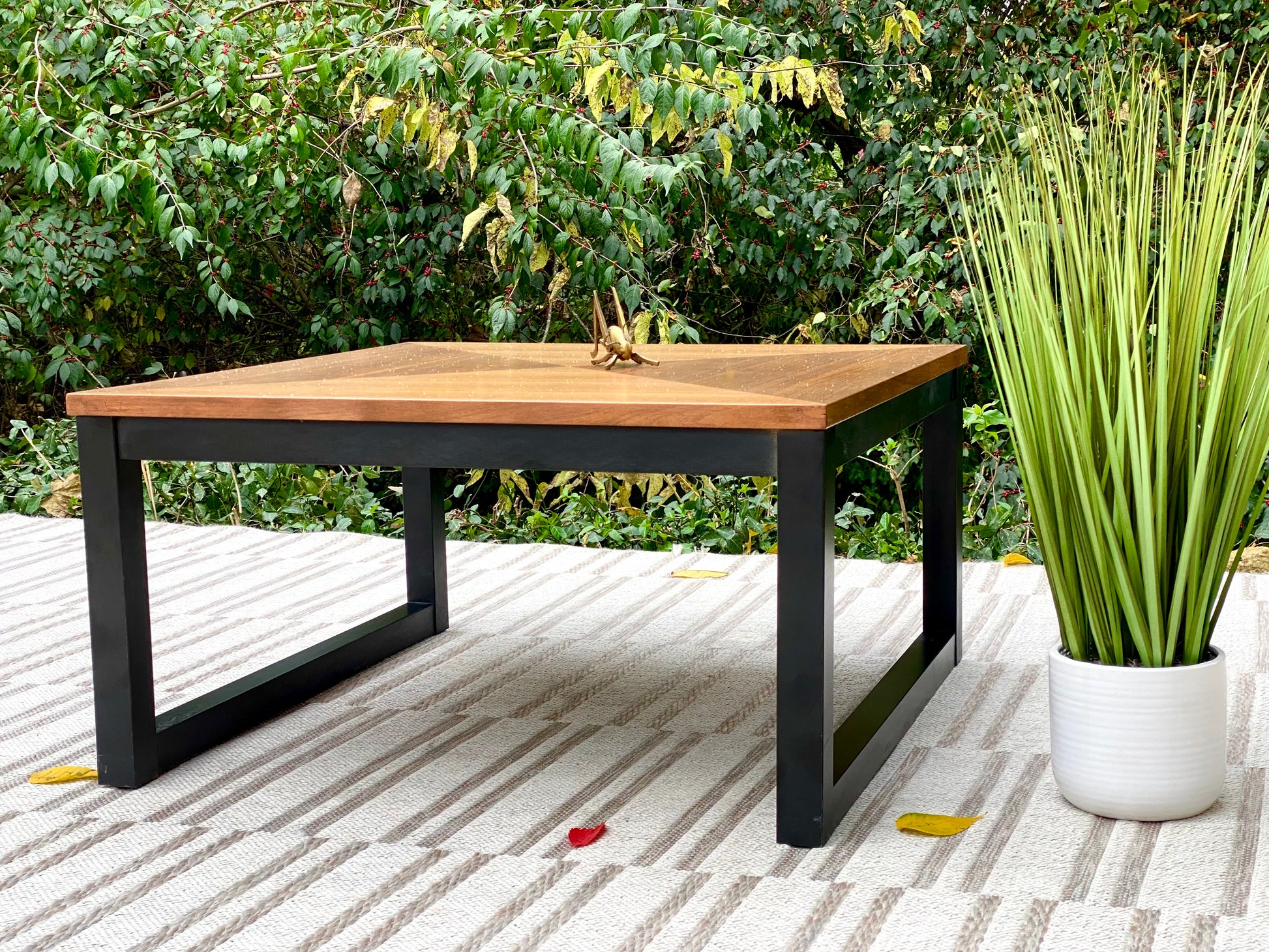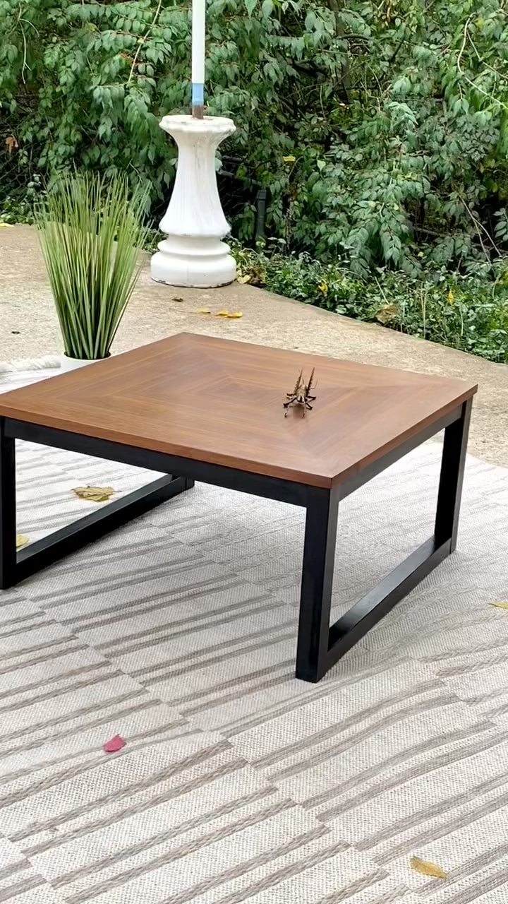 Fresh find! 🧡🍁 Check out this wooden geometric coffee table. Metal base with a classic vibe. 15” x 28” x 28” Good condition