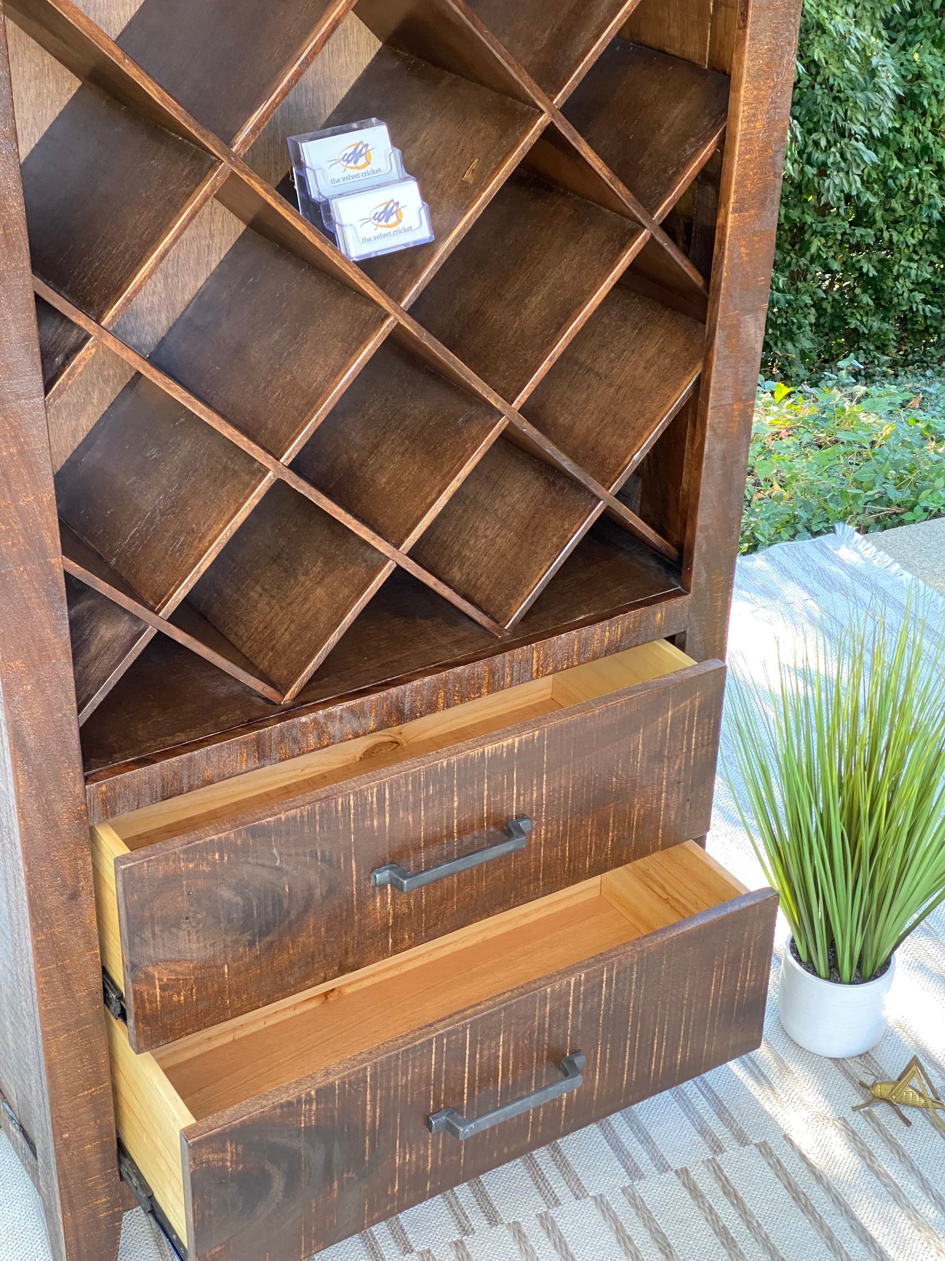 Newest arrival! 🍁🧡 Check out this modern wooden wine storage cabinet. Rustic design with lots of great storage. 75” x 36” x 14” Good condition