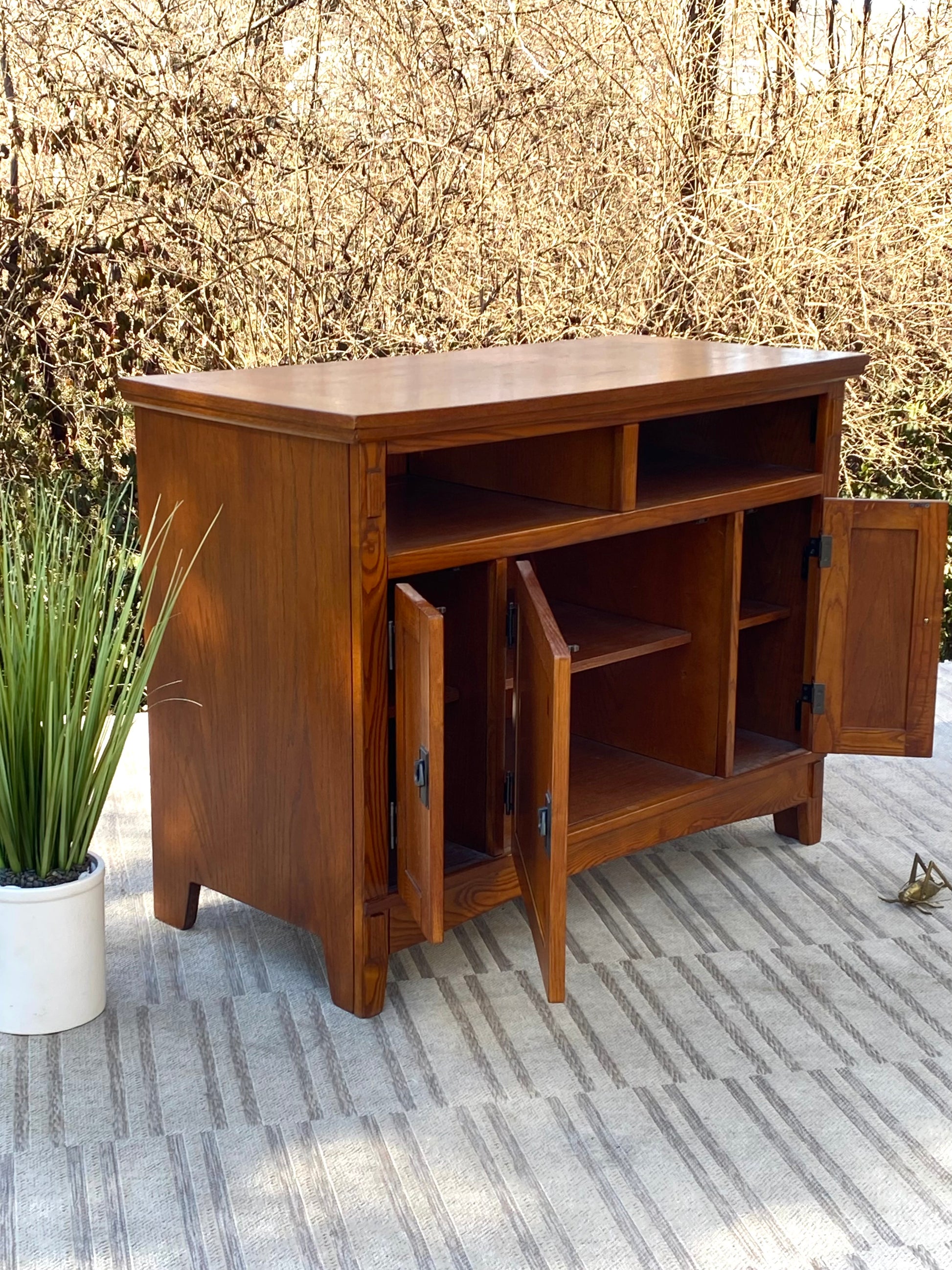 Fresh find! ❄️🍁 Check out this nice wooden Arts $ Crafts style cabinet. Perfect for a tv, coffee bar or plant stand. 32”h x 42” x 20” Good condition