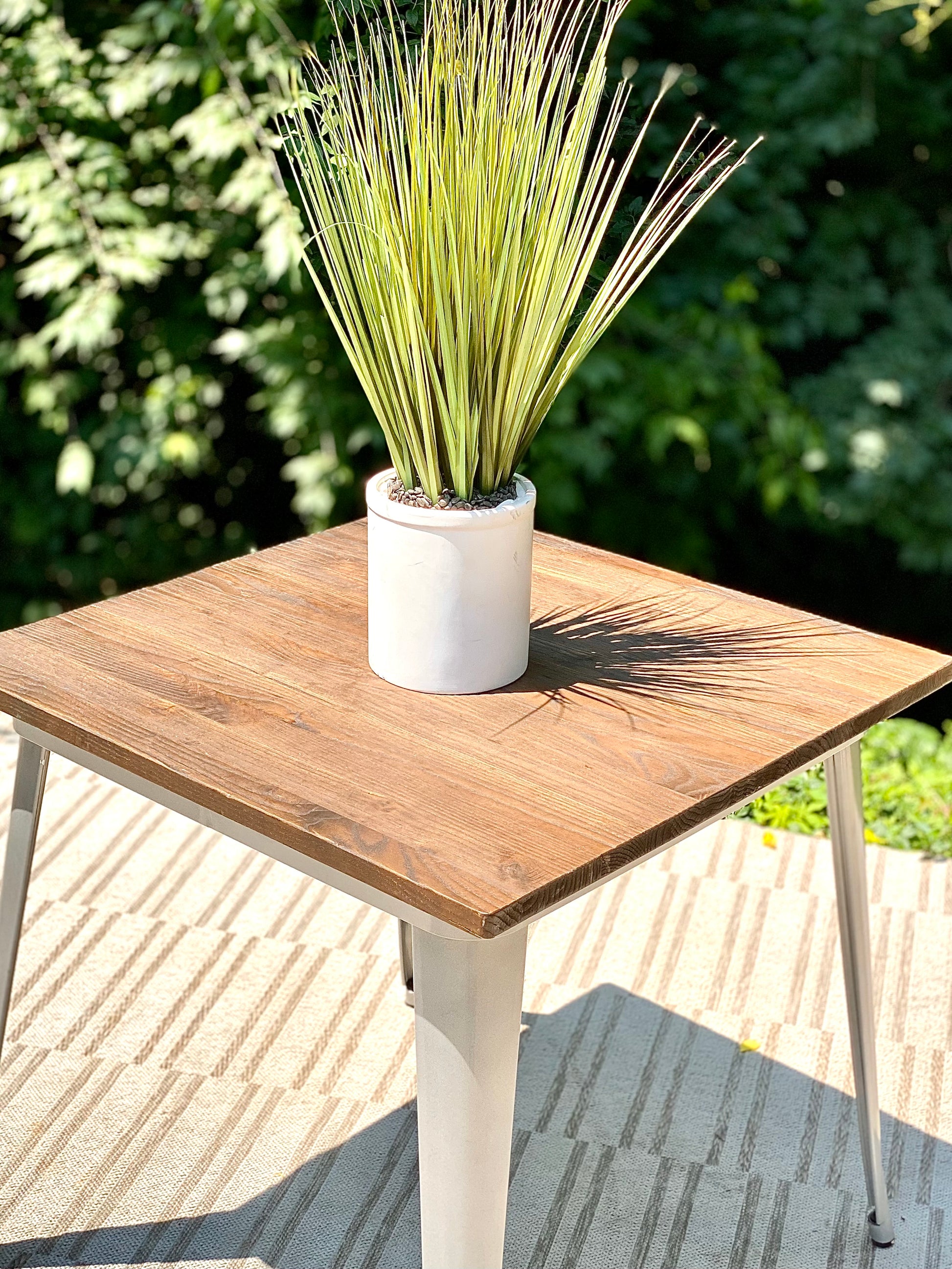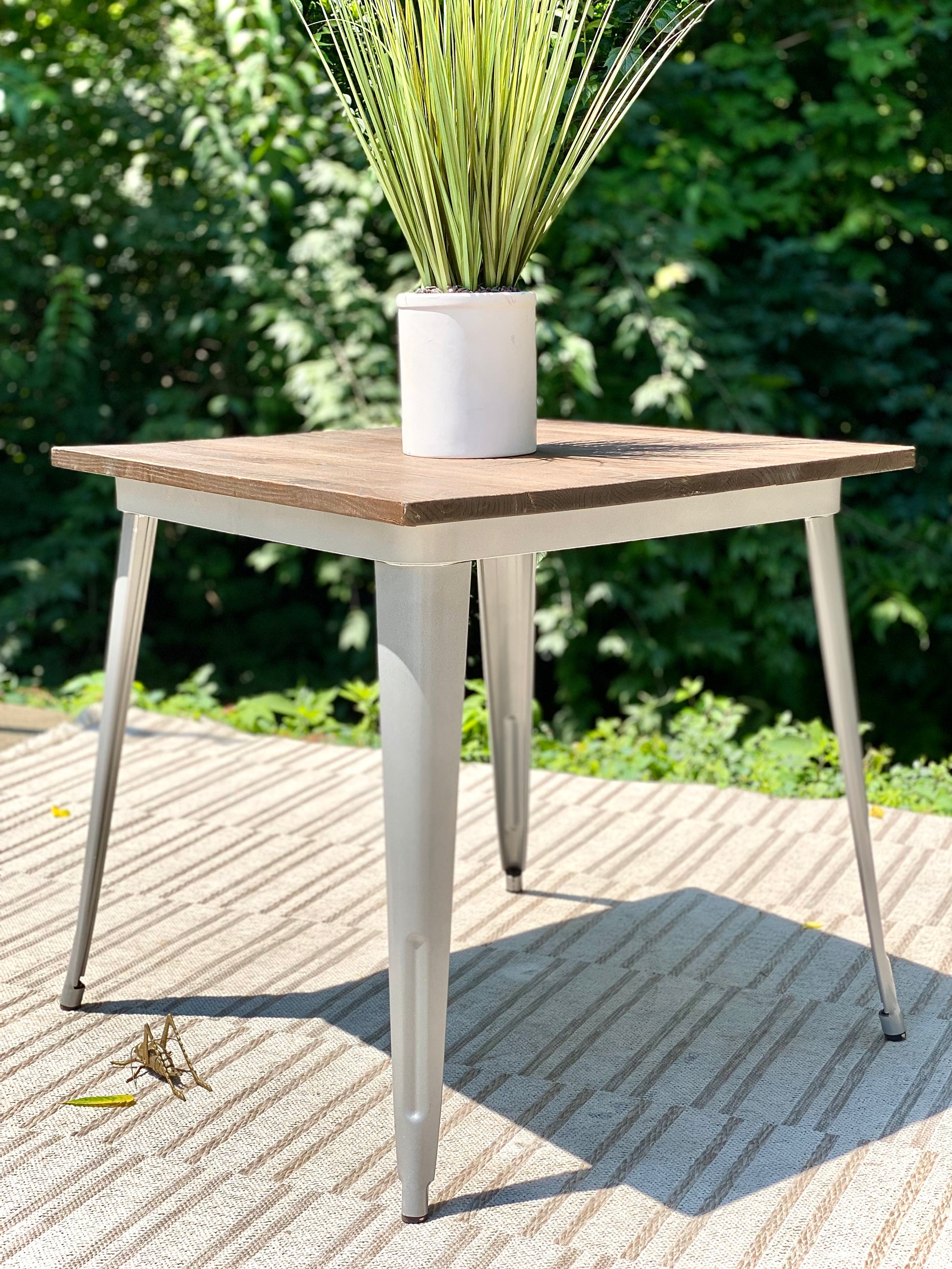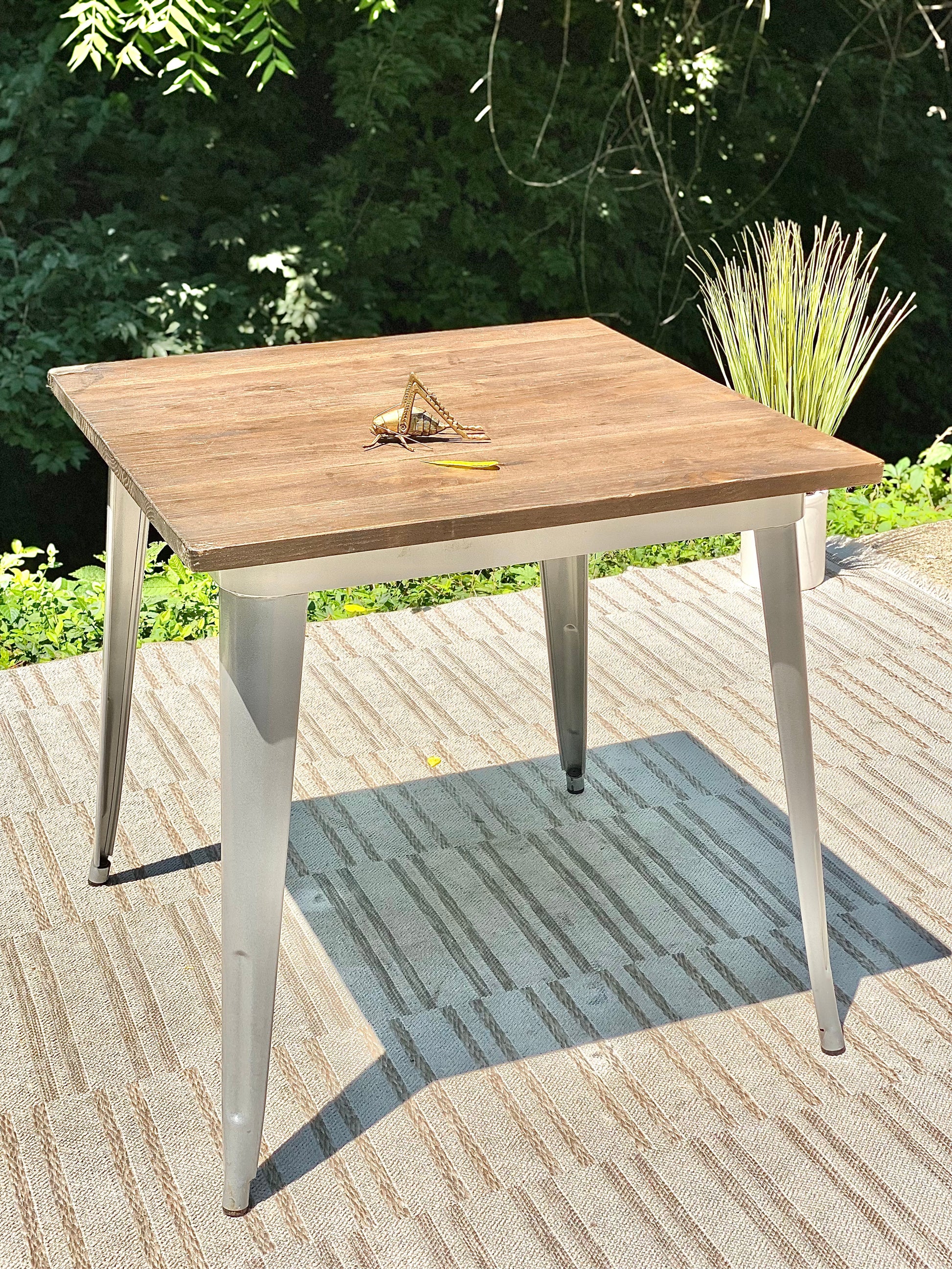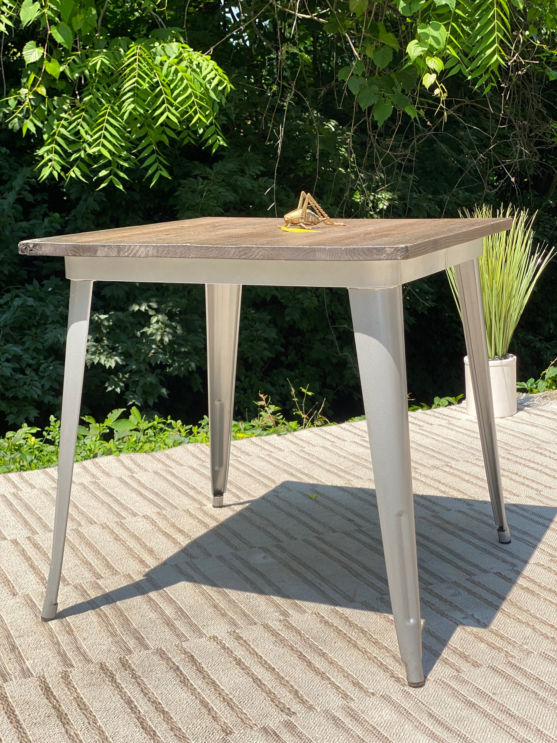 Fresh find! 🪴🌱 Check out this nice metal and wood square table. Started its life as a retail display table. This would make a great dining table, arts and crafts table or kids table. 31” x 32” x 32” Good condition