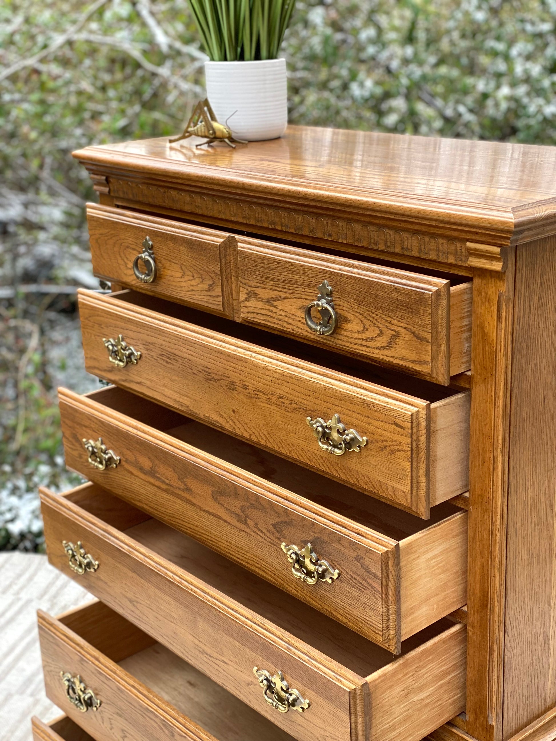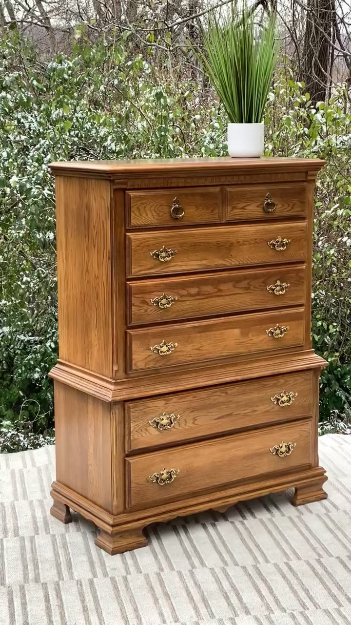 SOLD - Fresh find! ❄️🩵 Check out this nice vintage wooden 6 drawer dresser. Original pulls and a classic vibe. 55” x 40” x 19” Good condition