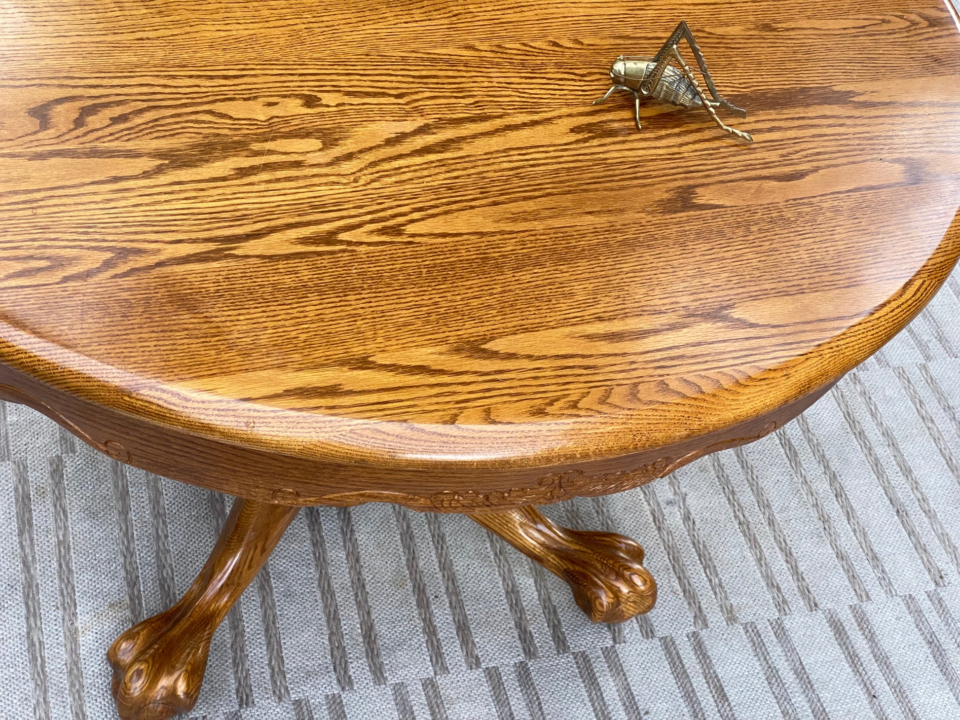 Fresh find! 🍁🍂 We love this solid ash wood extending dining room table. Hidden butterfly leaves and gorgeous lions feet make this a truly unique table. We love it! 30”h x 68/44”w. Good condition