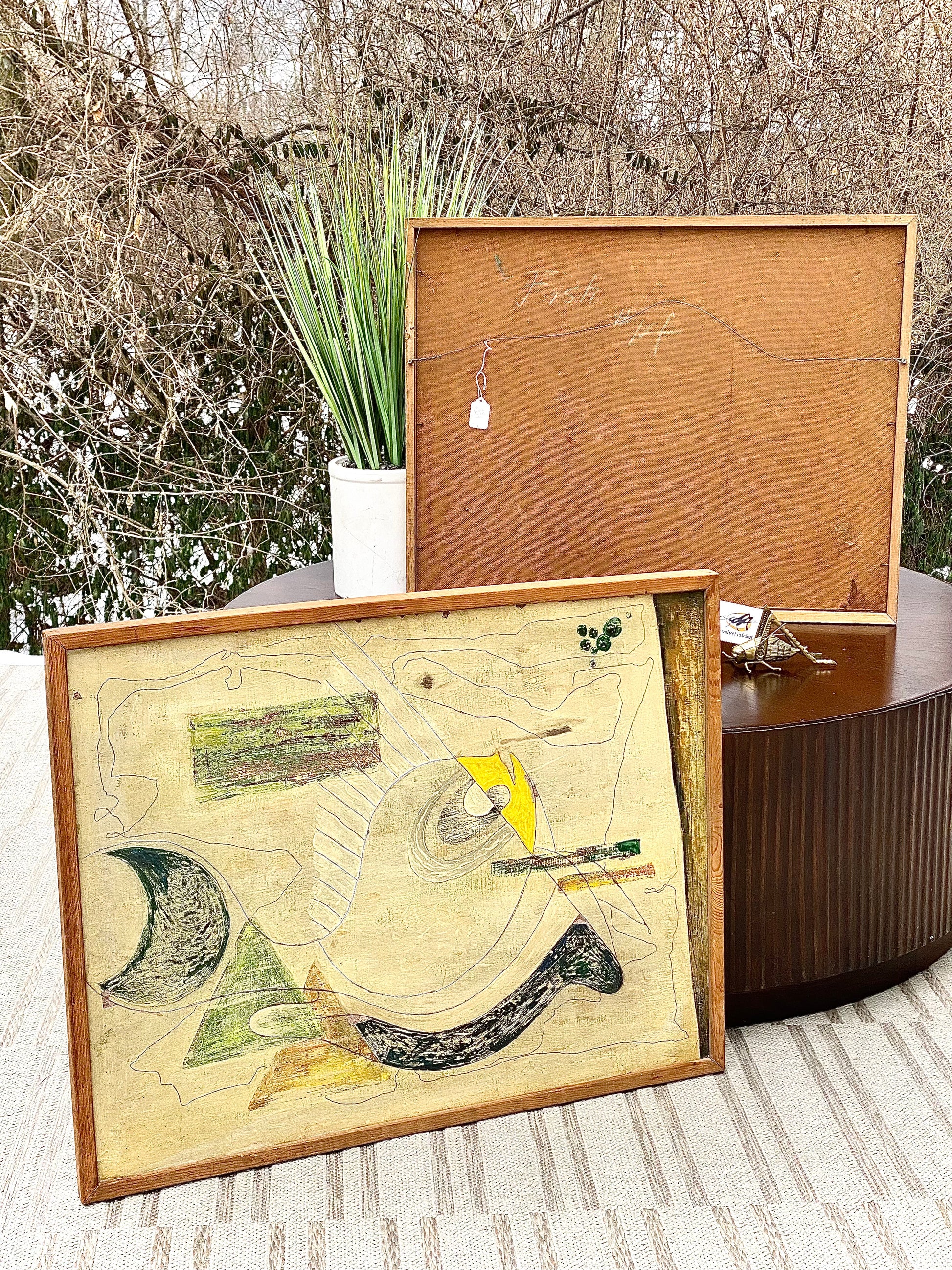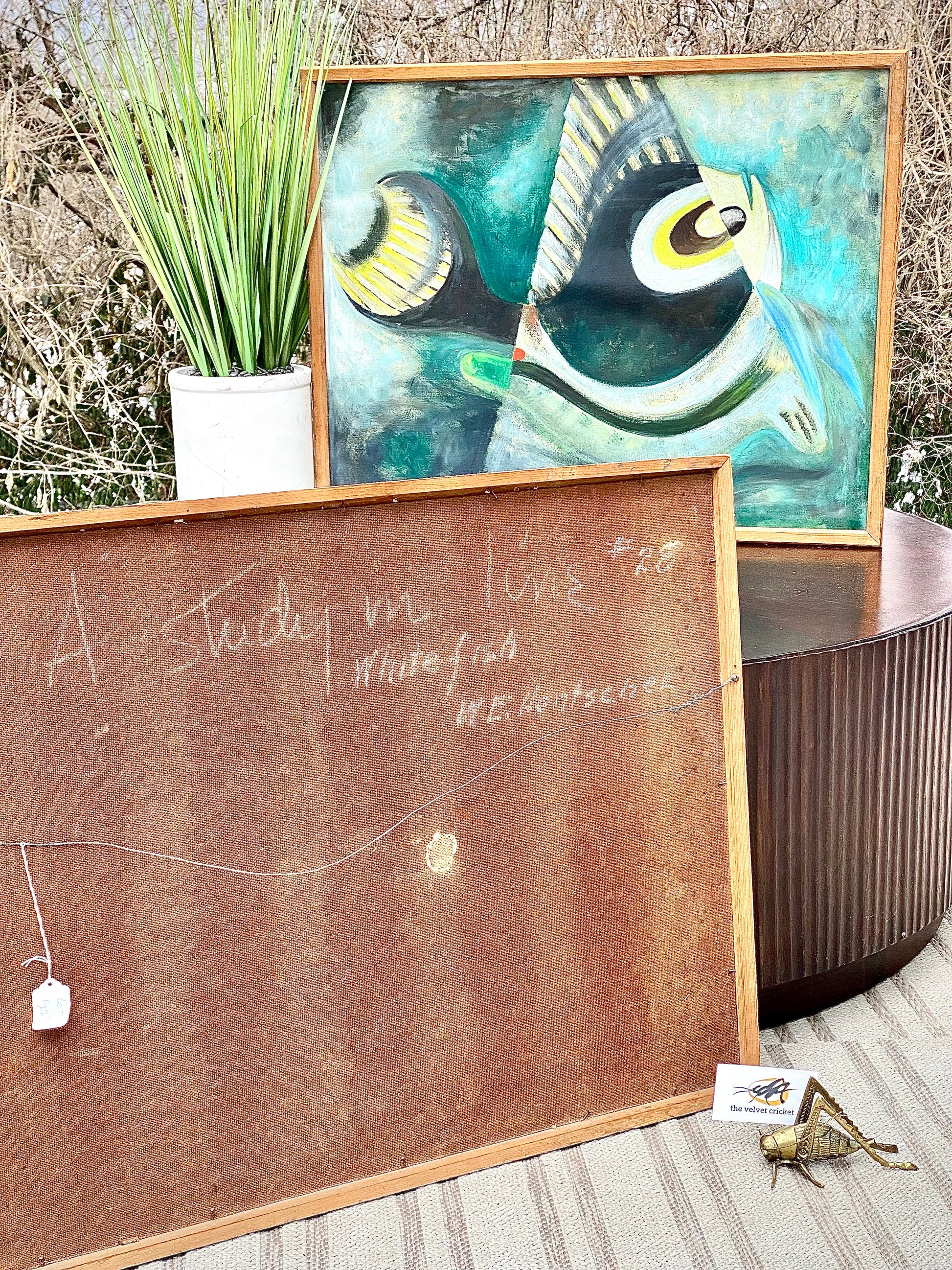 Just arrived! ❄️🍁 We love this pair of vintage MCM mid century fish study original paintings by Rookwood artist William Ernst Hentschel. Framed ready to hang. Lighter color painting has some paint loss. Sold as a pair. Both are 24” x 30”
