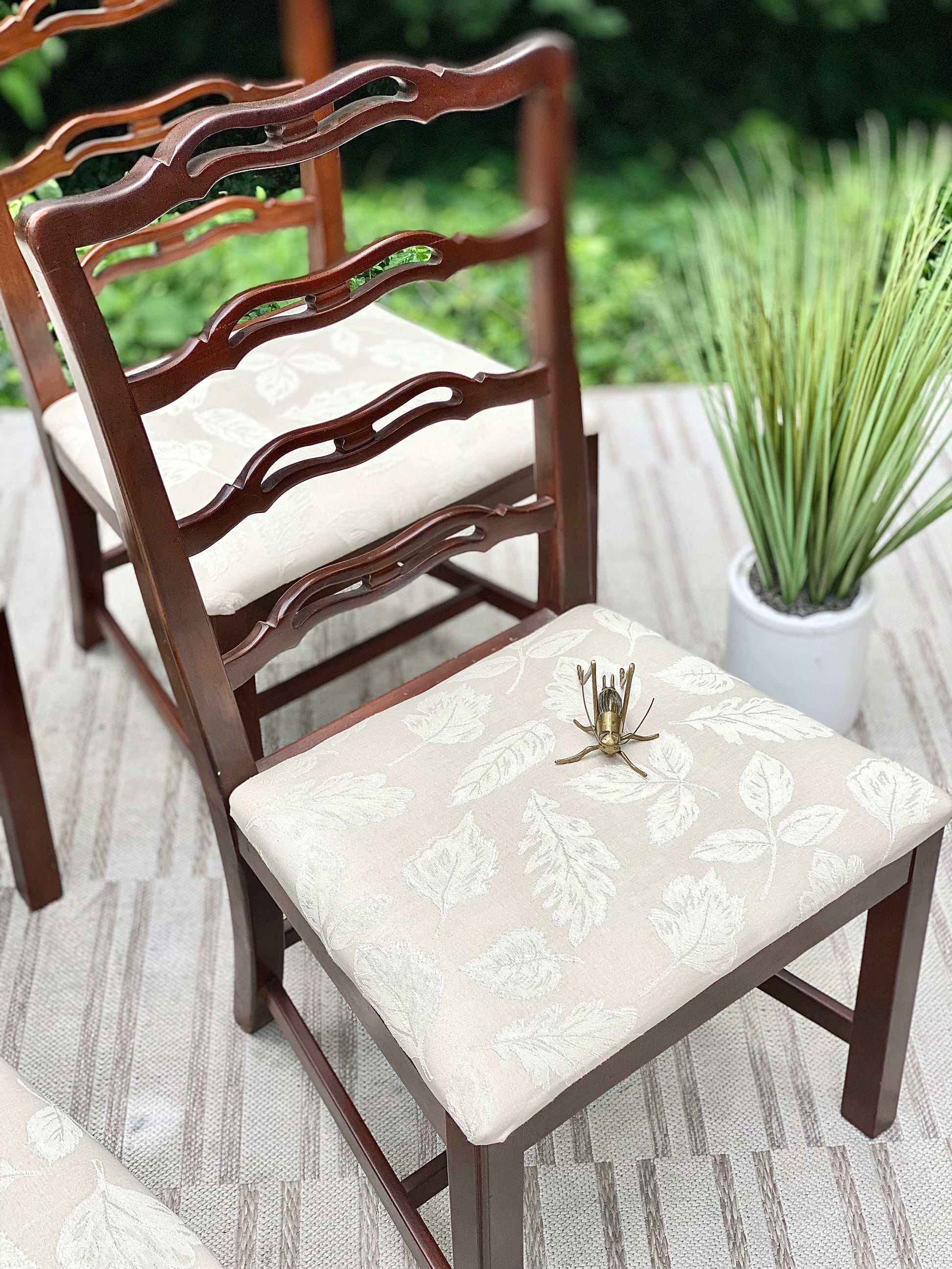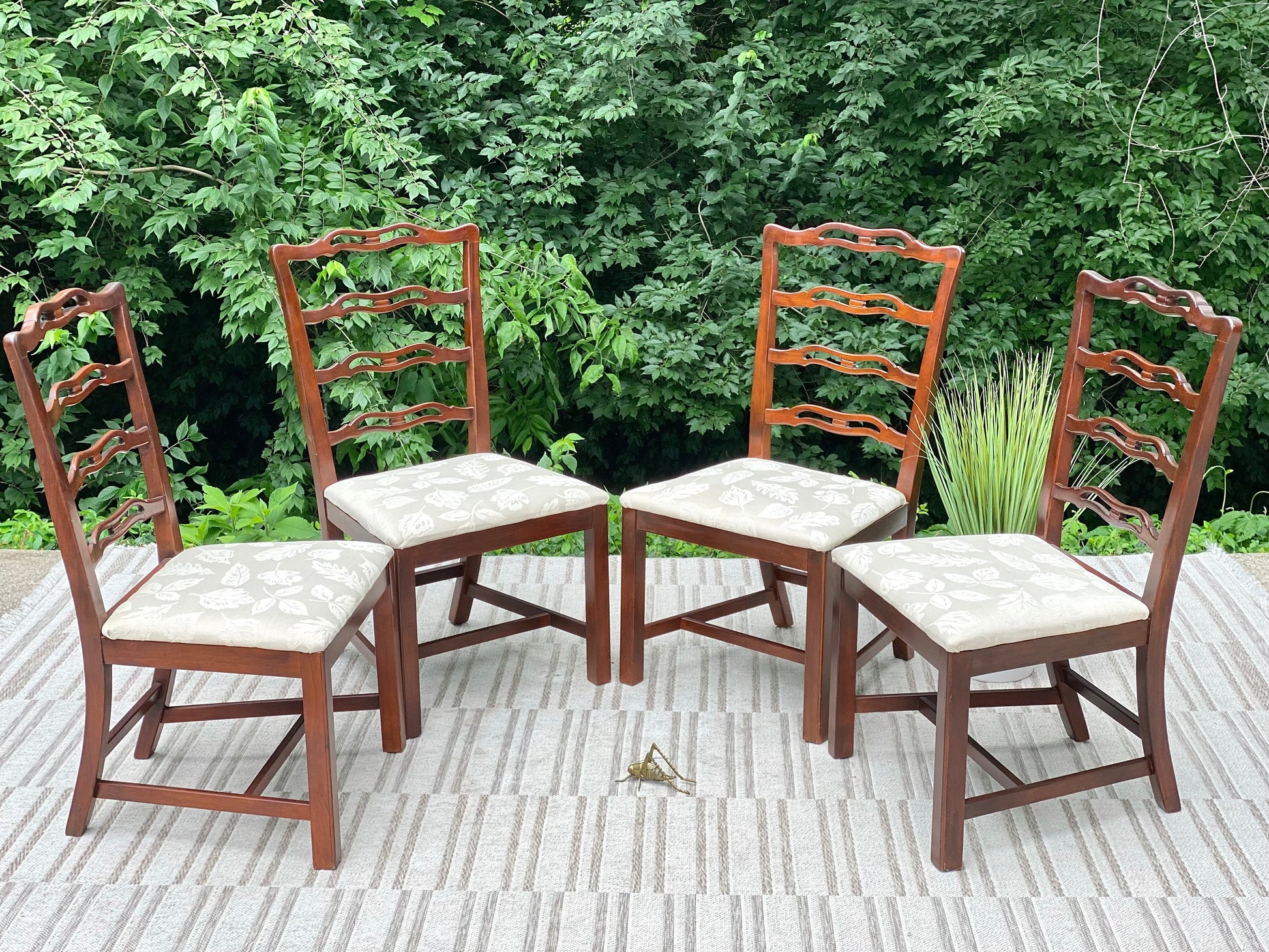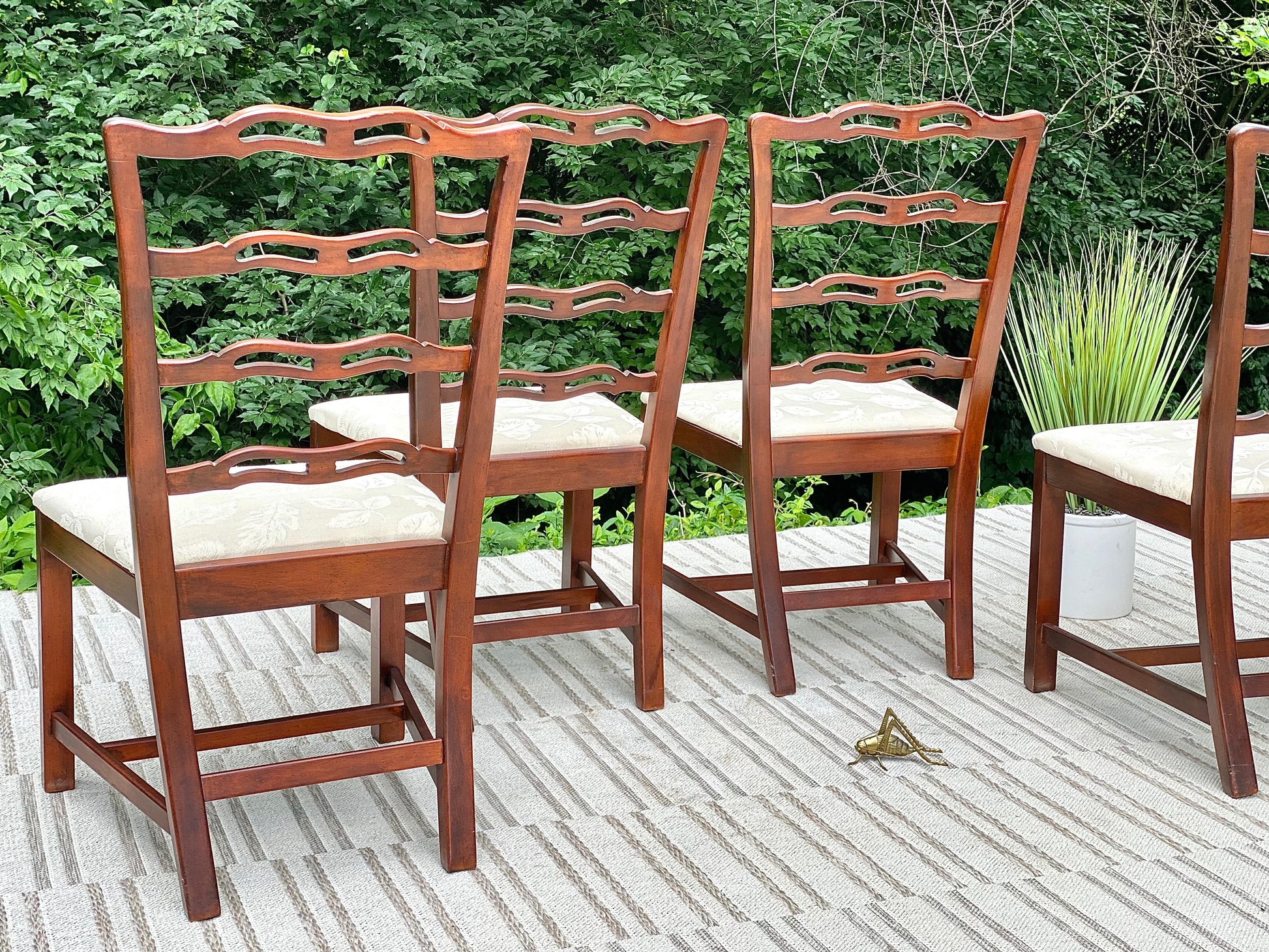 SOLD - New arrival! 🪴🌱 Check out this nice set of mahogany stained Drexel heritage dining room chairs. Beautiful upholstered pattern and ready to go! 38” x 20” x 21” Good condition