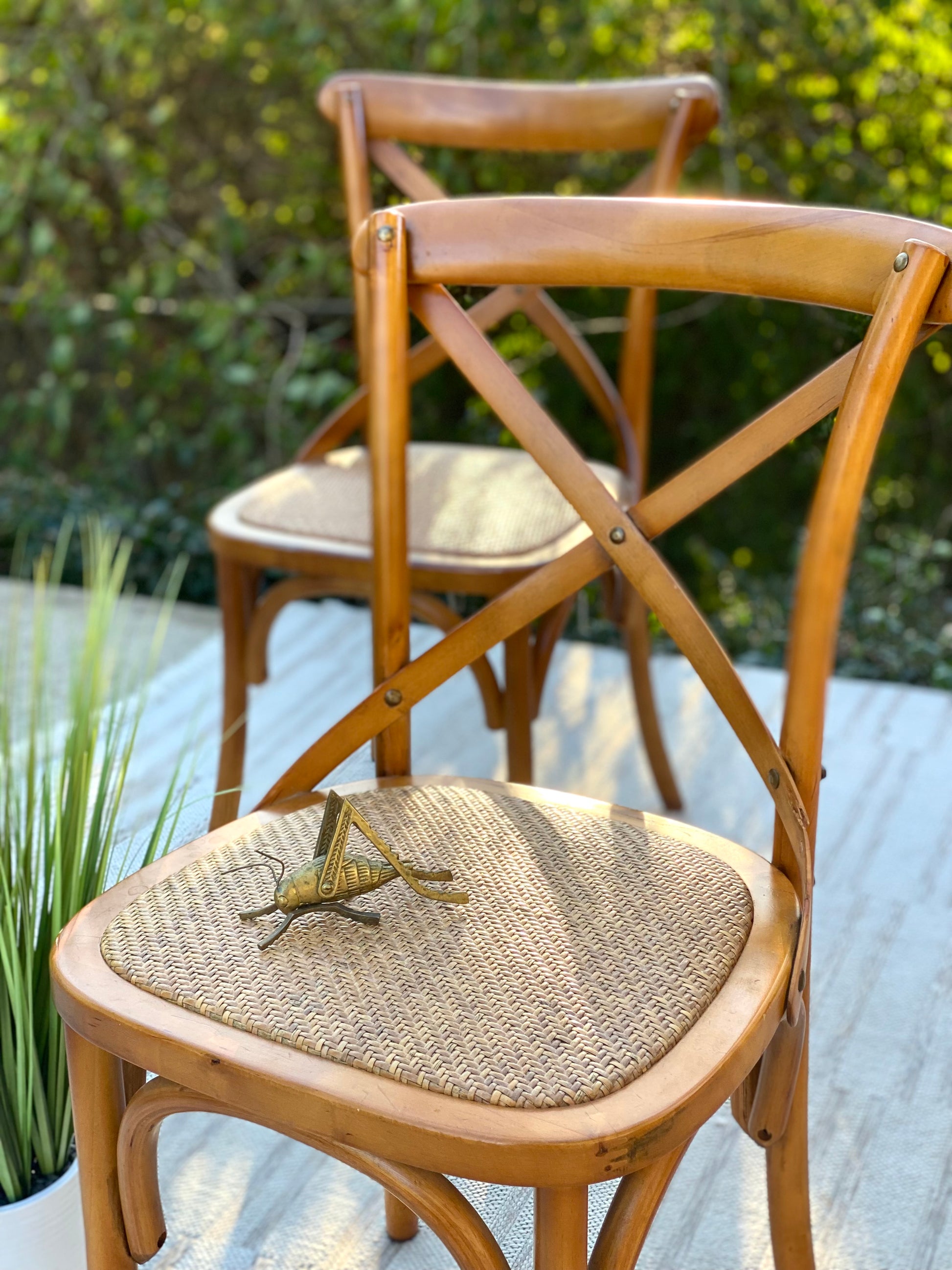 SOLD - Fresh find! 🩵❄️ Check out this nice set of Artefama Ballard Design wooden wicker chairs. Modern design with a natural vibe. 35” x 18” x 18” Good condition, one has a slight break on the bentwood
