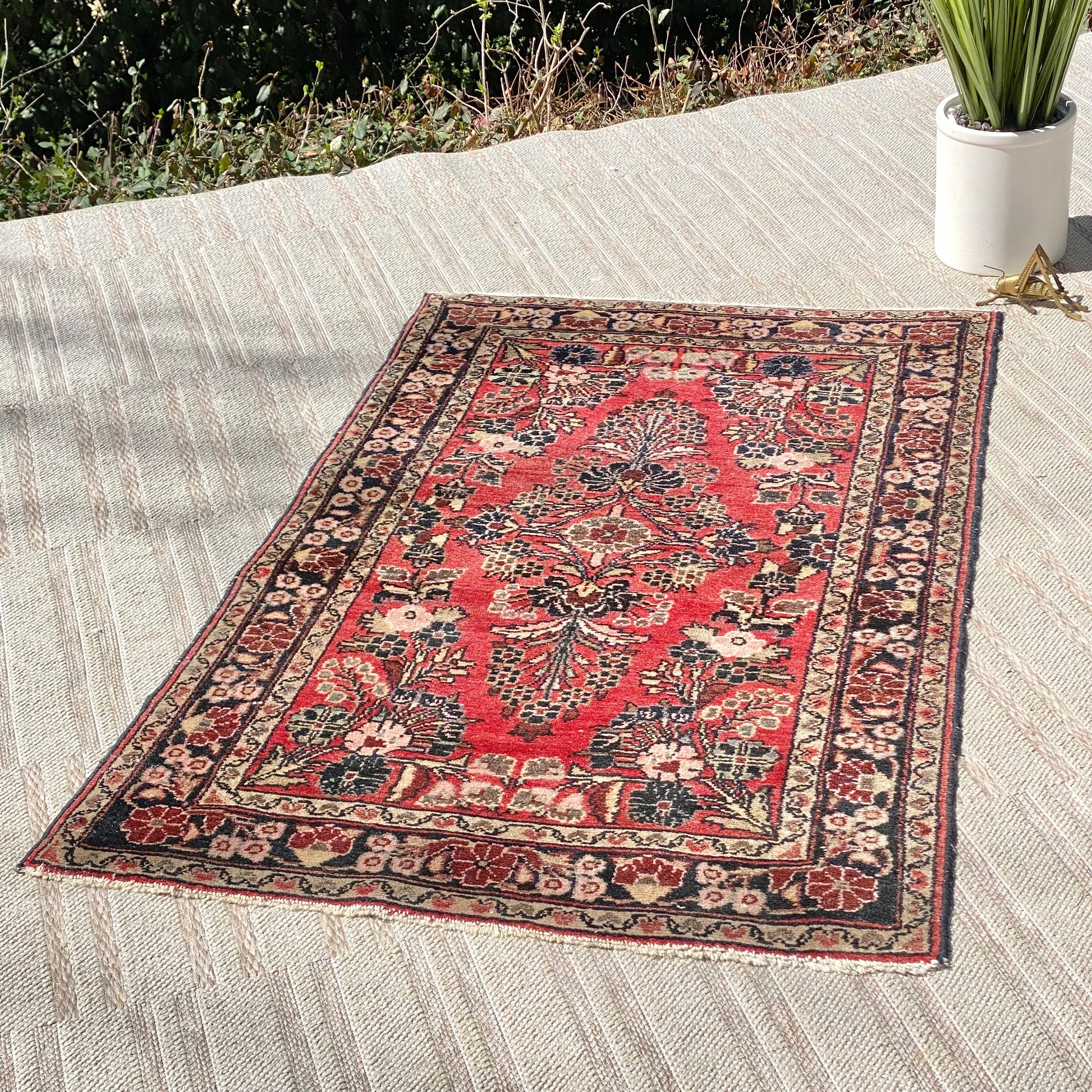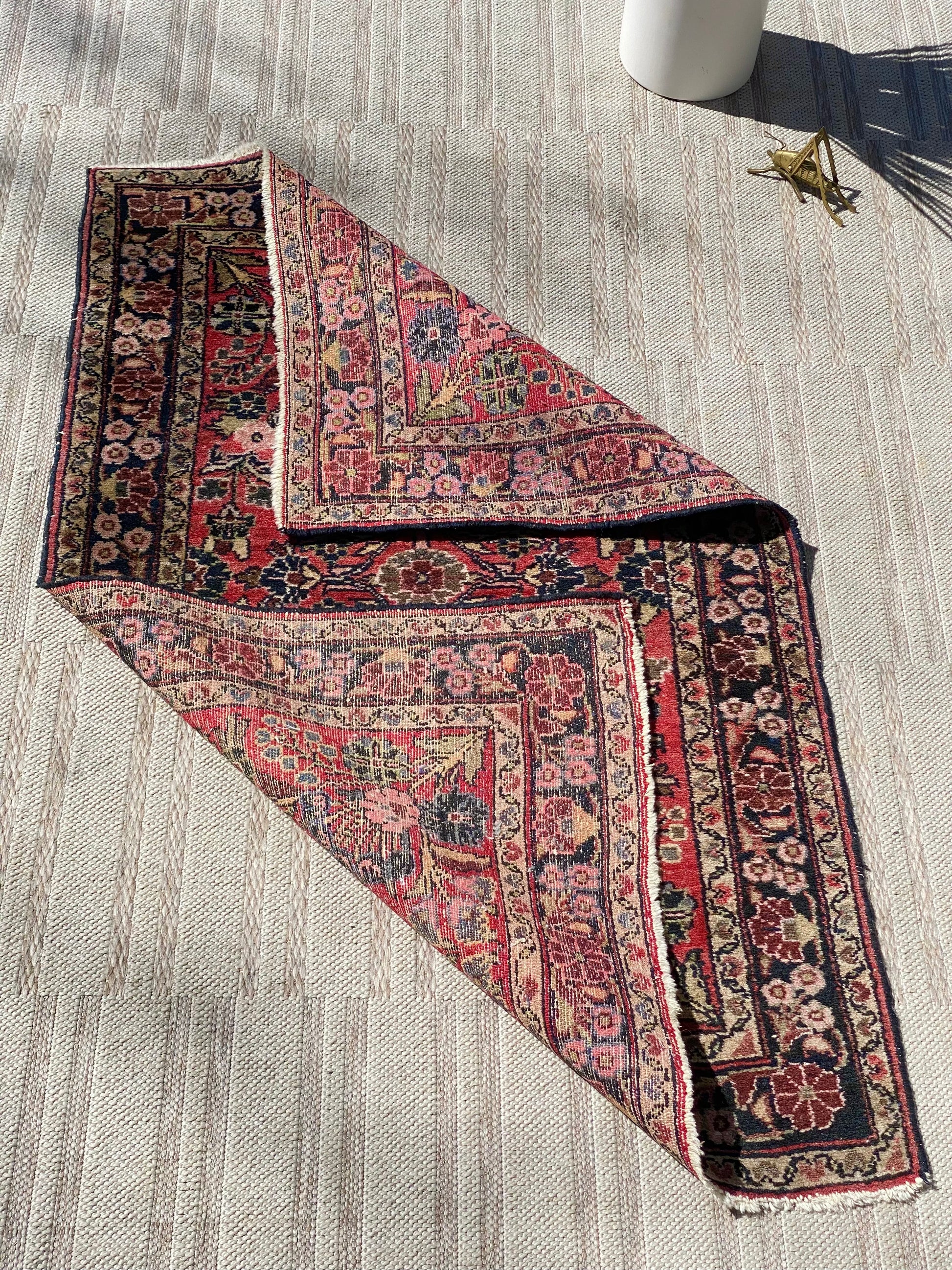 SOLD - New arrival! 🌱❄️ Check out the colors in the small vintage Persian rug. Bold red colors will give any room a great vibe! 49” x 32” Good condition