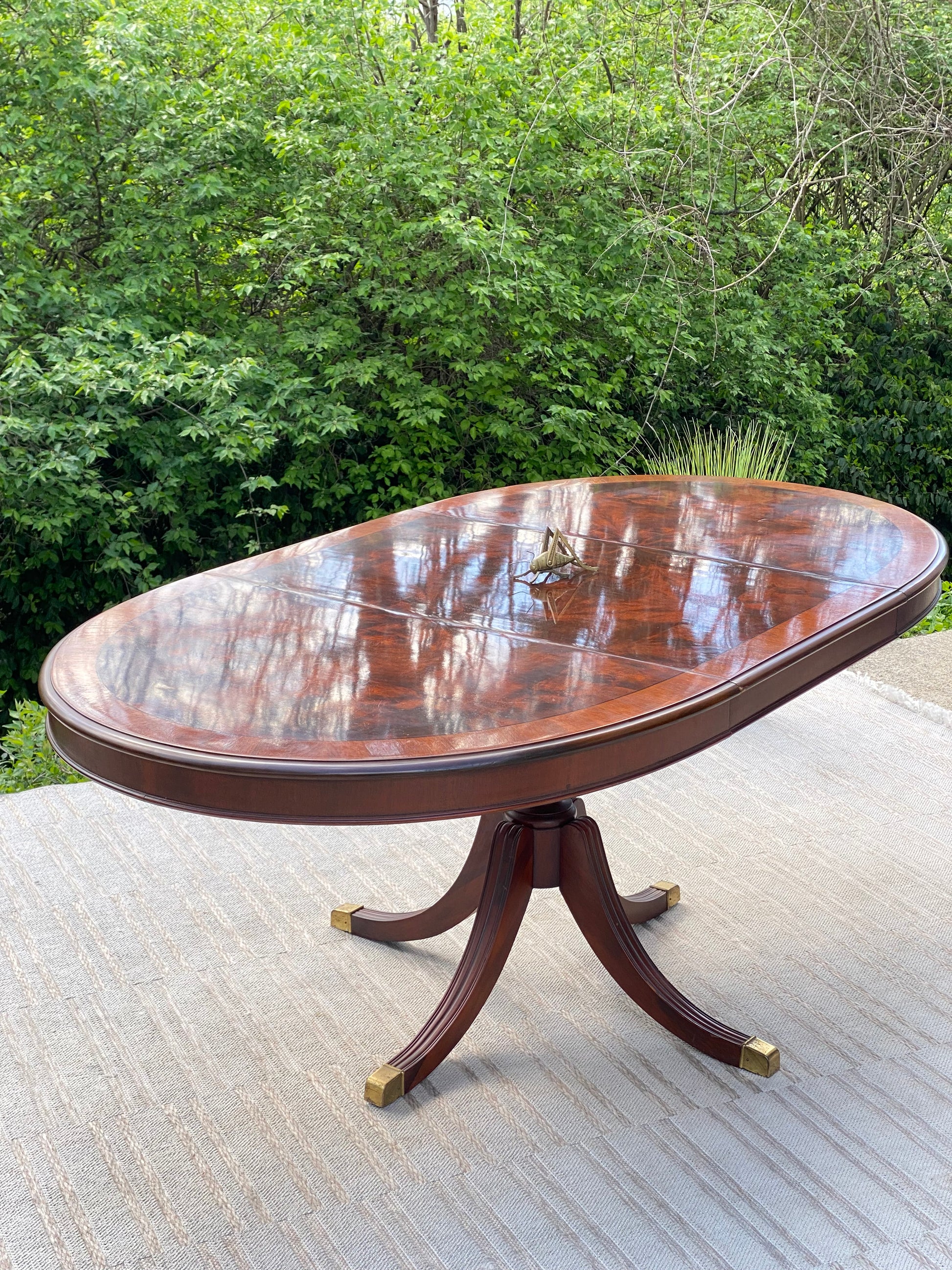 SOLD - Fresh find! 🌱❄️ We love this unique vintage Drexel oval dining table. Starts as a small oval table with a beautiful wood patterned top and extends to a long table with a 22” leaf and drop legs for support. Multiple uses and we love the vibe! 29” x 50/72” x 40w. Good condition