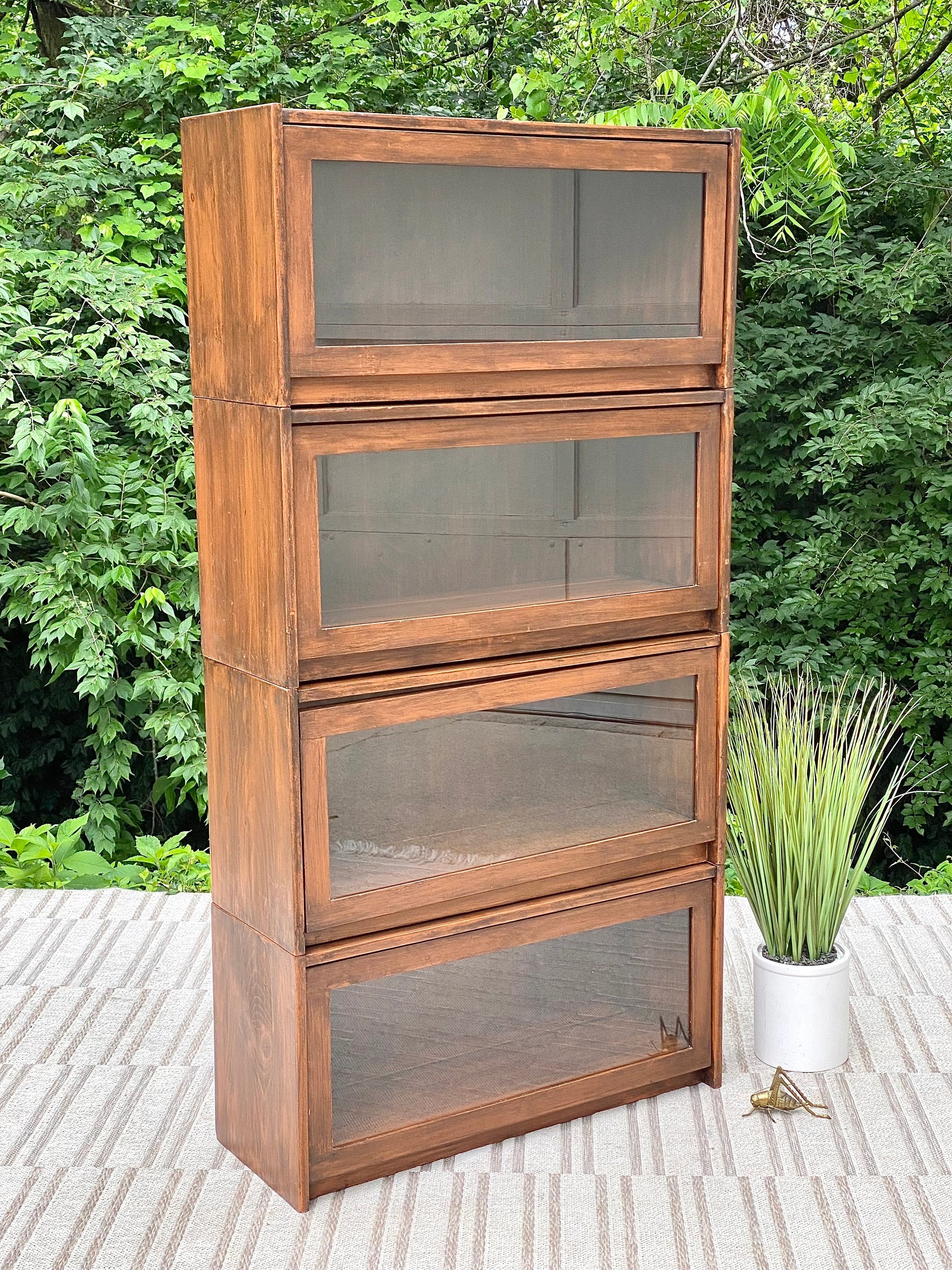 SOLD - Just arrived! 🪴🌱 We love this vintage four stack barrier bookcase. Glass sliding fronts with lots of storage and display. 66” x 34” x 12” Good condition