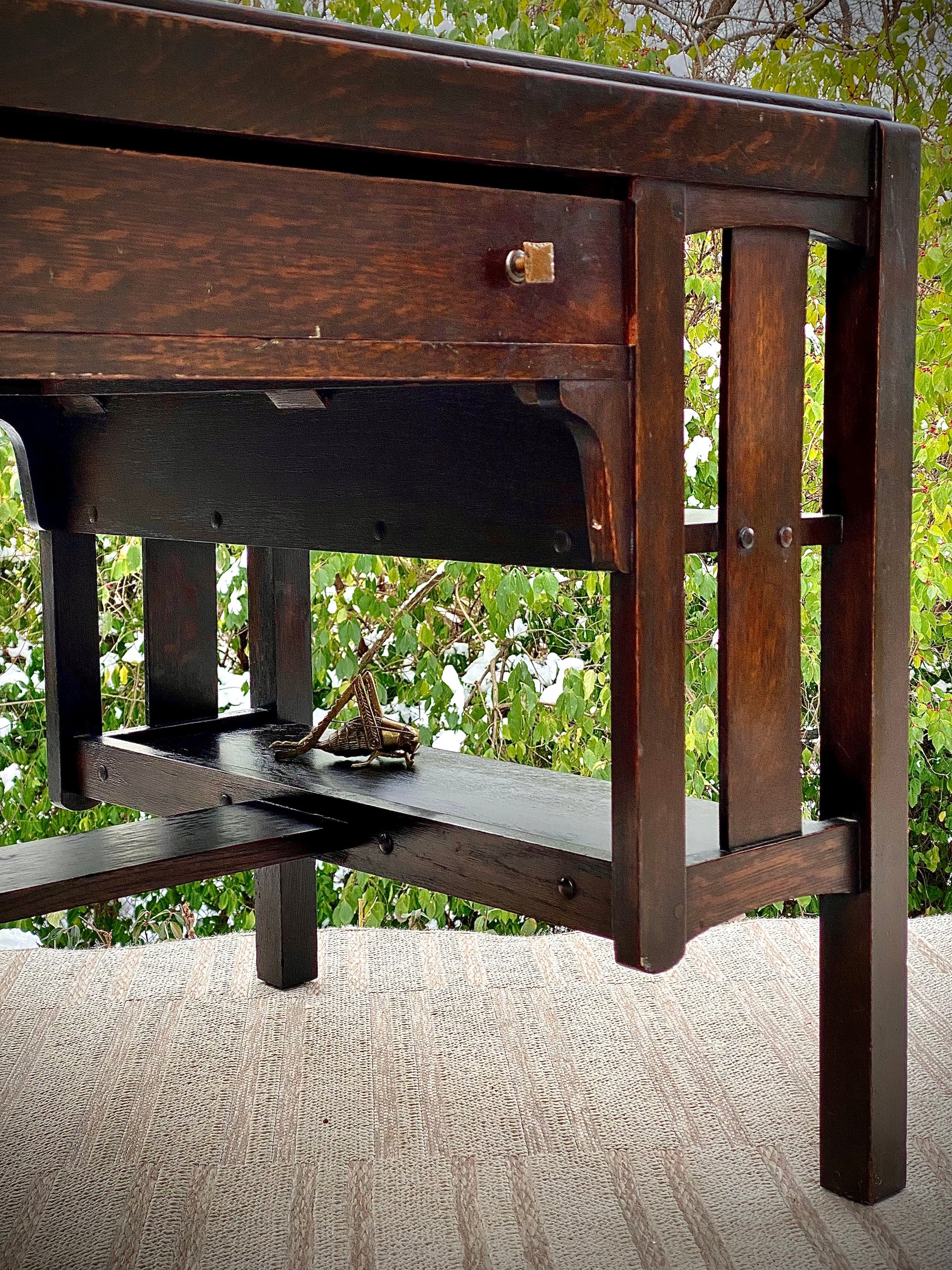 Fresh find! 🍁❄️ We love this vintage Arts & Crafts mission style dark stain oak desk. Classic design with lower storage and pullout drawer. 30”h x 41” x 28” Good condition
