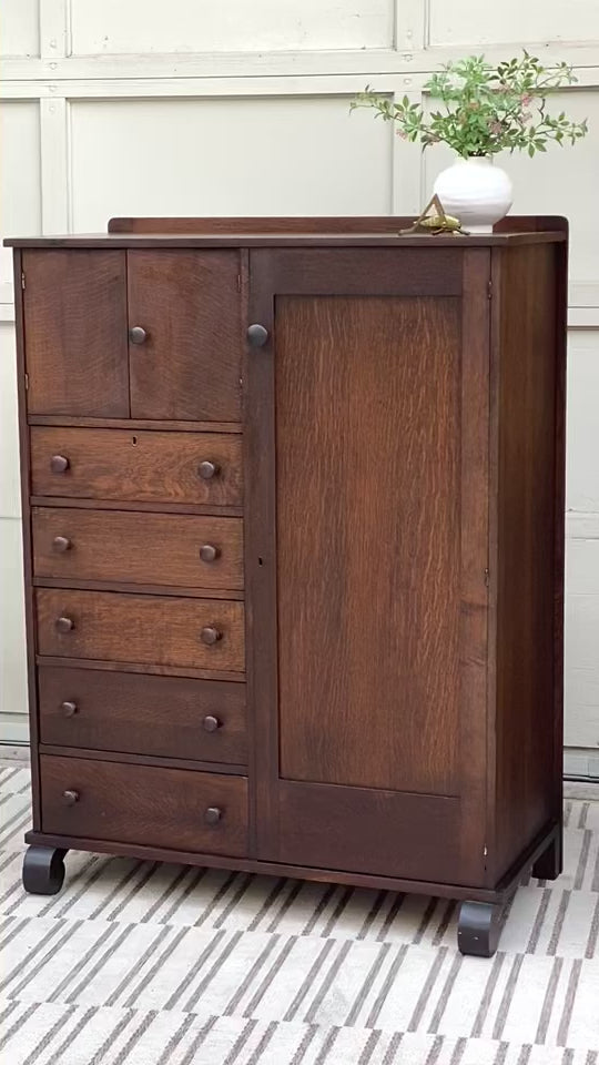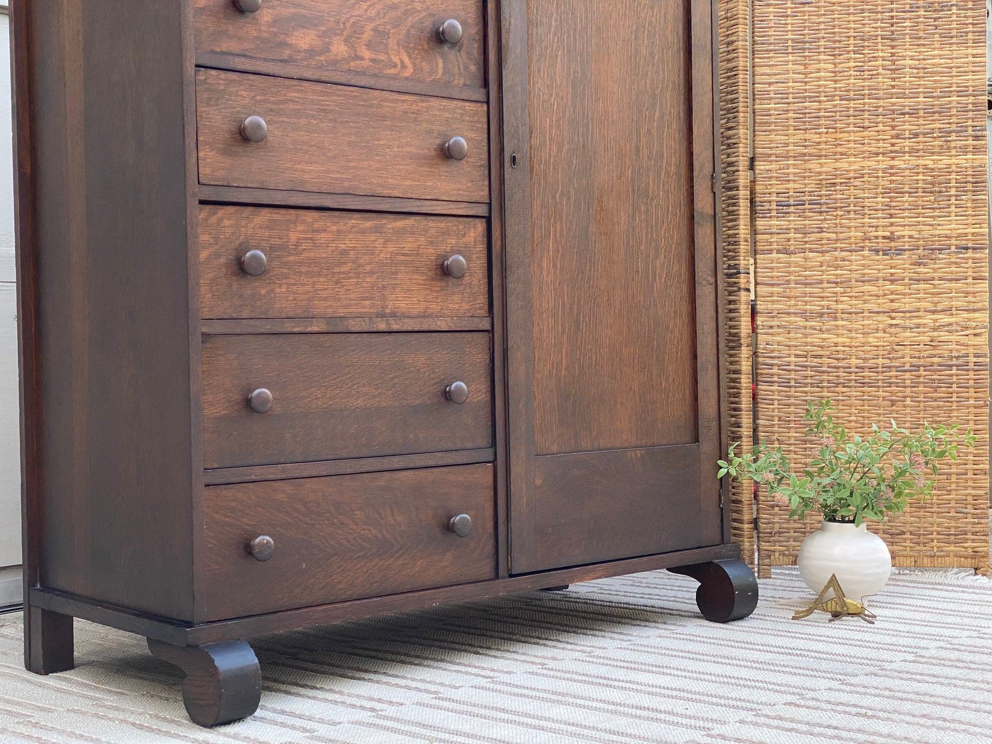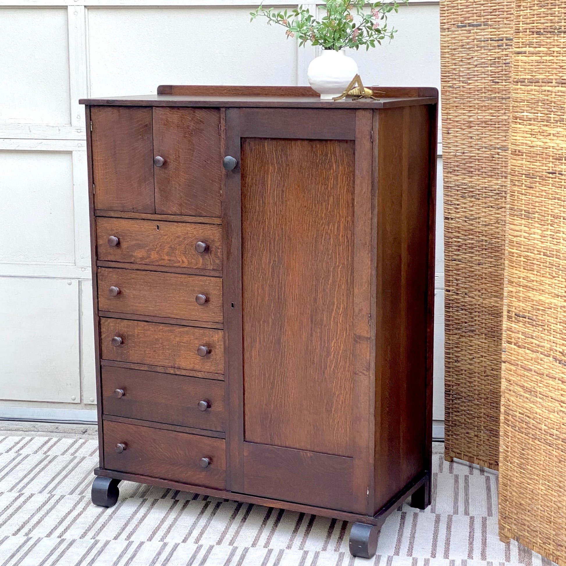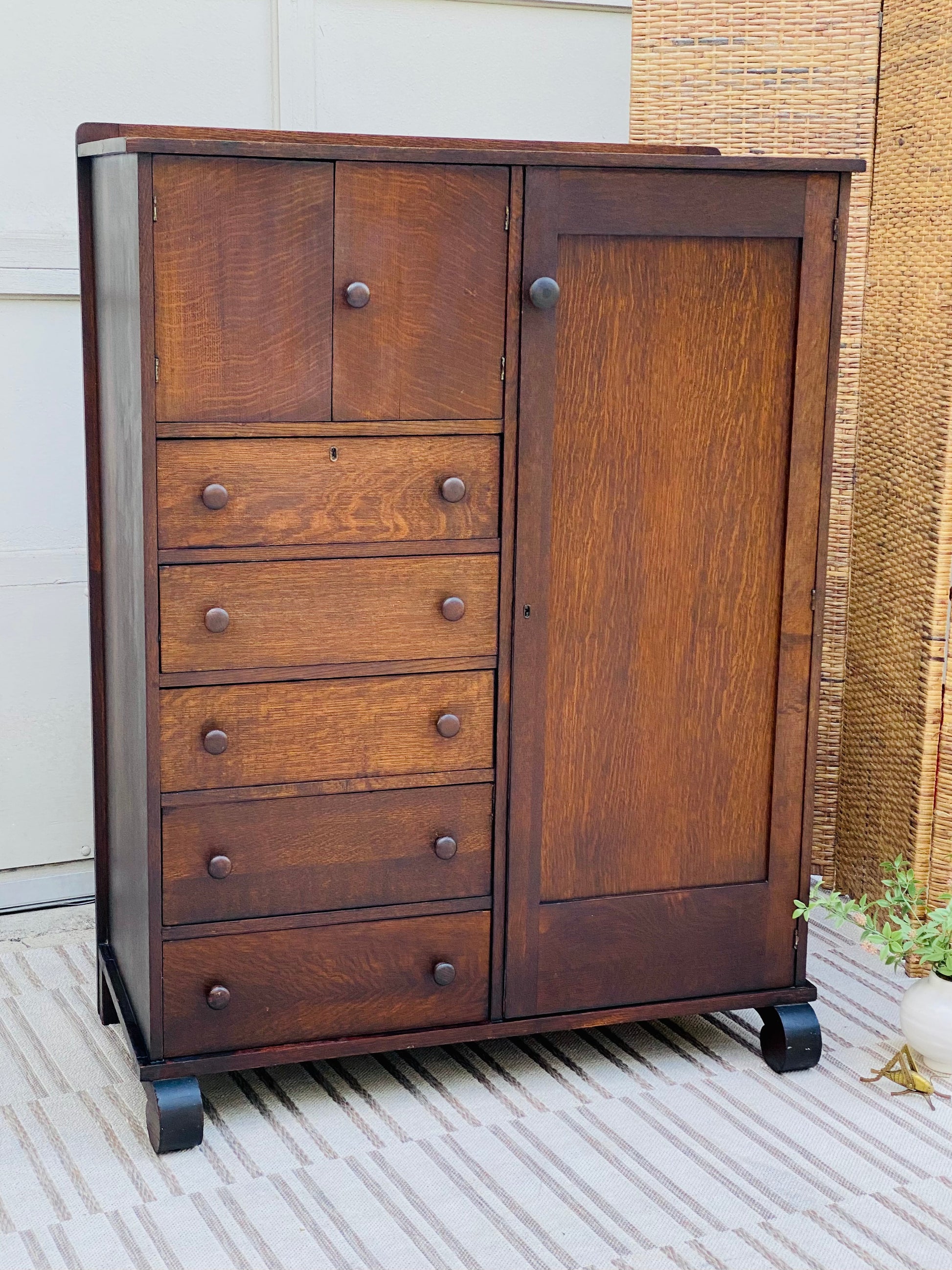 Vintage Arts & Crafts Craftsman Tall Dresser Cabinet