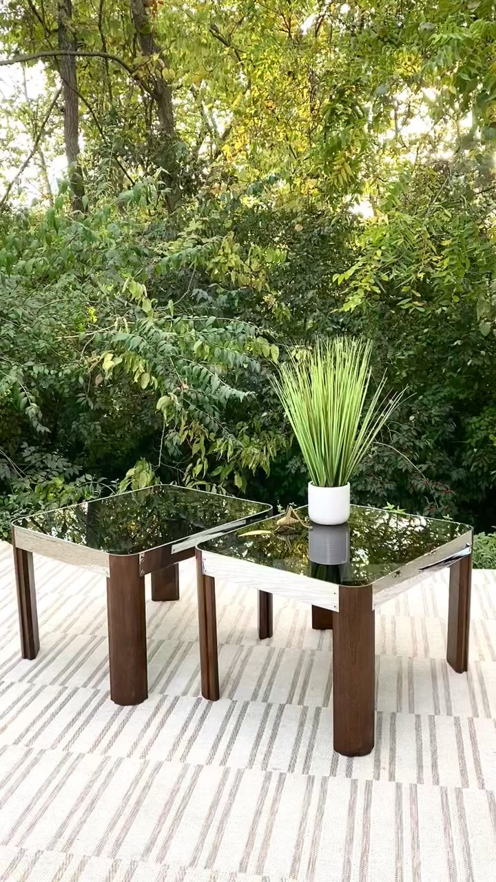Vintage Chrome Wood & Glass Side Tables