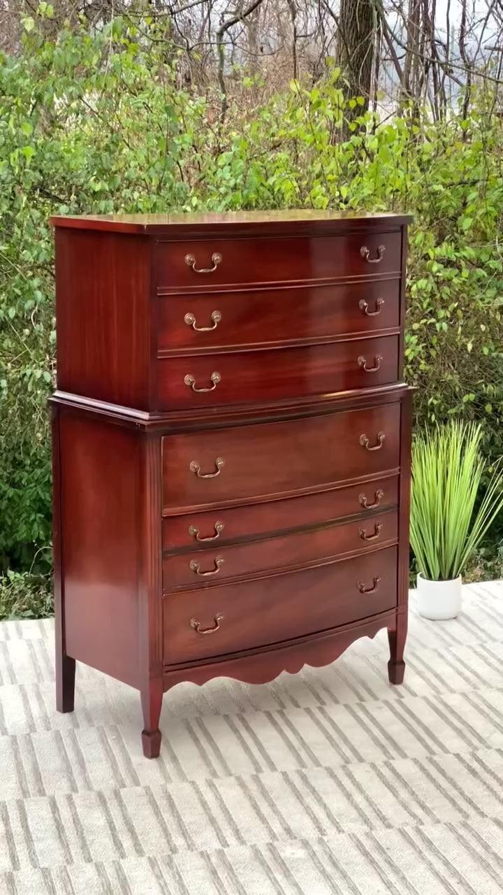 SOLD - Newest arrival! ❄️🩵 Check out this gorgeous vintage Dixie 6 drawer dresser. Original brass pulls with a deep rich vibe. 53” x 35” x 18” Good condition