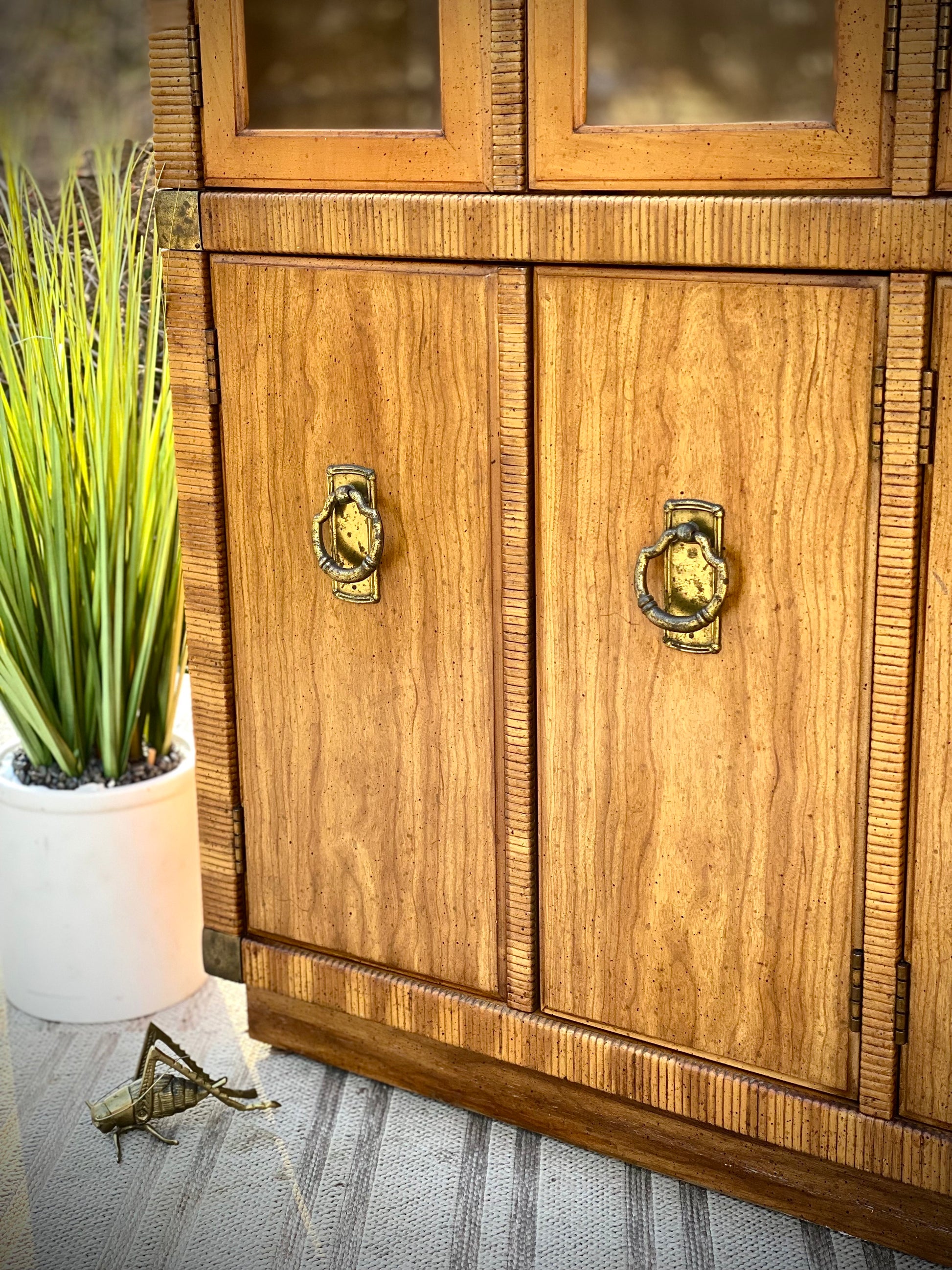 Fresh find! ❄️🍁 Check out this beautiful vintage wooden Drexel one piece lighted hutch. Gorgeous display shelves up top with plenty of storage below. We love it! 77”h x 42” x 15” Good condition