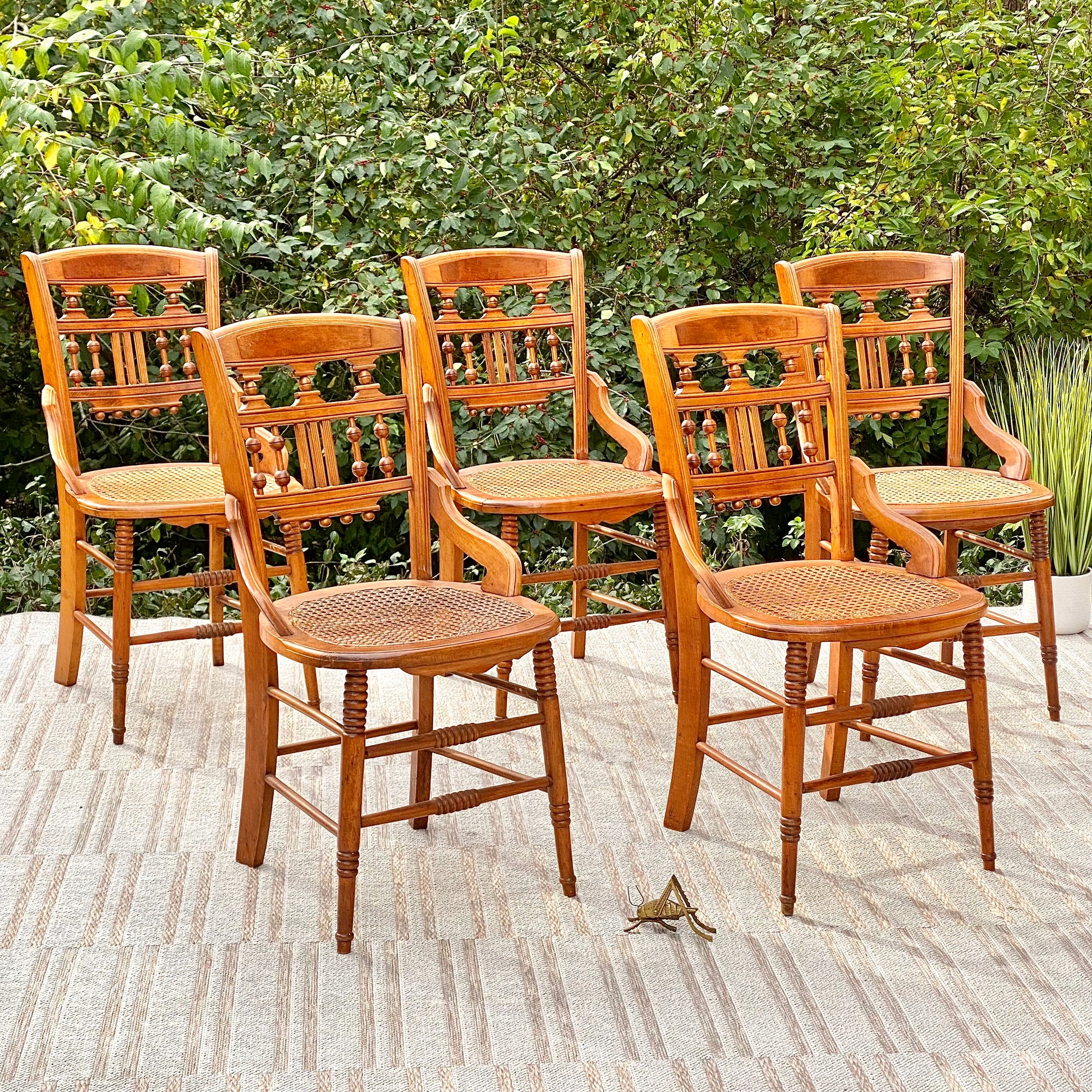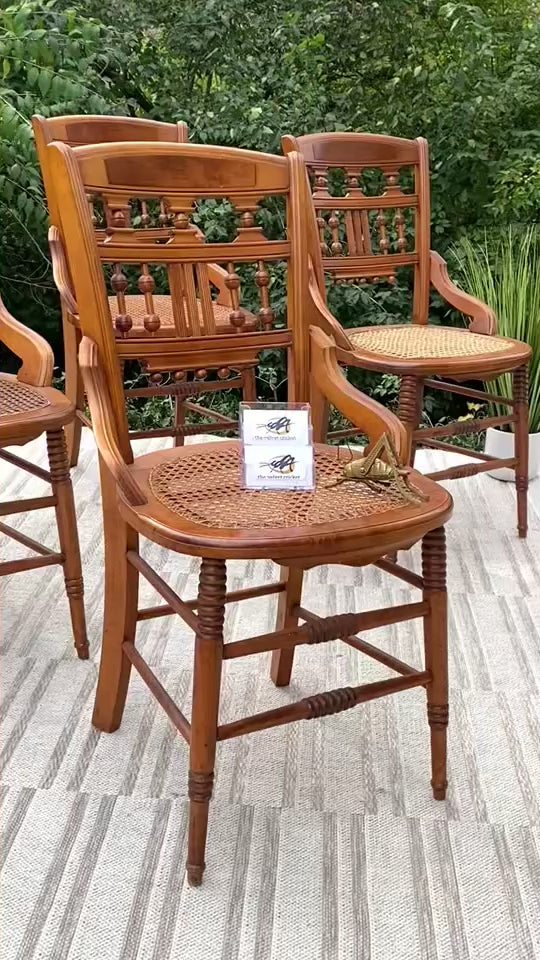 SOLD - Fresh find! 🍁🧡 Check out this gorgeous set of 5 vintage Eastlake Birds Eye maple set of chairs. Structurally sounds and ready to use. Warm natural color and perfect for any use. 34” x 19” x 19” Good condition