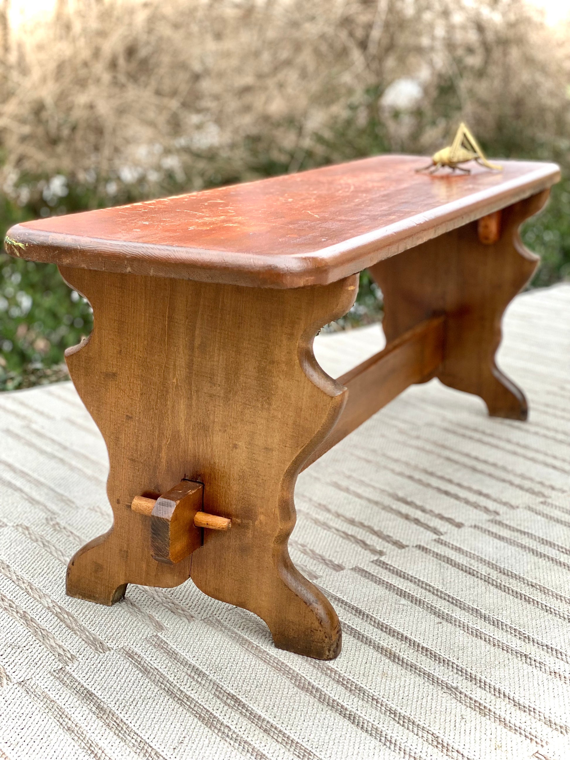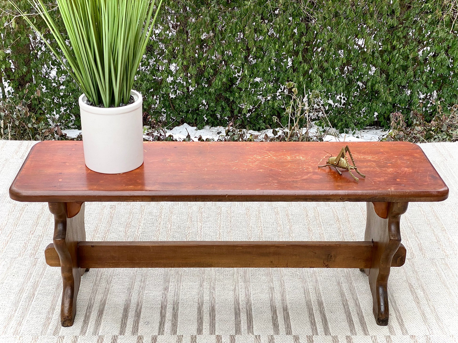 SOLD - New arrival! ❄️❄️ Check out this vintage farmhouse style solid pine wooden bench. Sturdy pegged construction with a country vibe. We love it! 18” x 48” x 14” Good condition