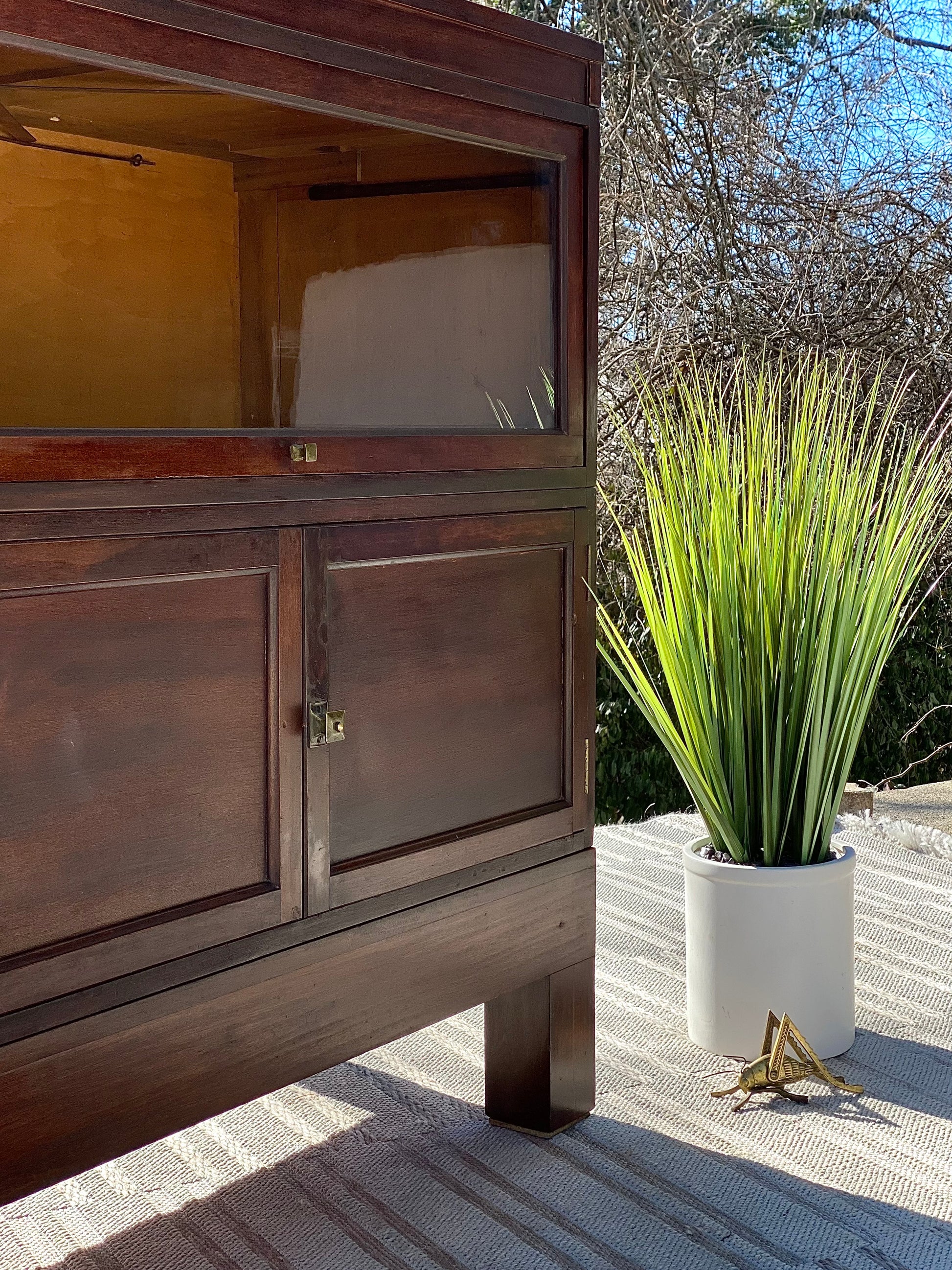 SOLD - Fresh find! 🌱❄️ Check out this antique mahogany two stack barrister bookcase. Comes with a rare lower cabinet with doors and a push button locking mechanism. Great for display! We love it! 39” x 33” x 17” Good condition
