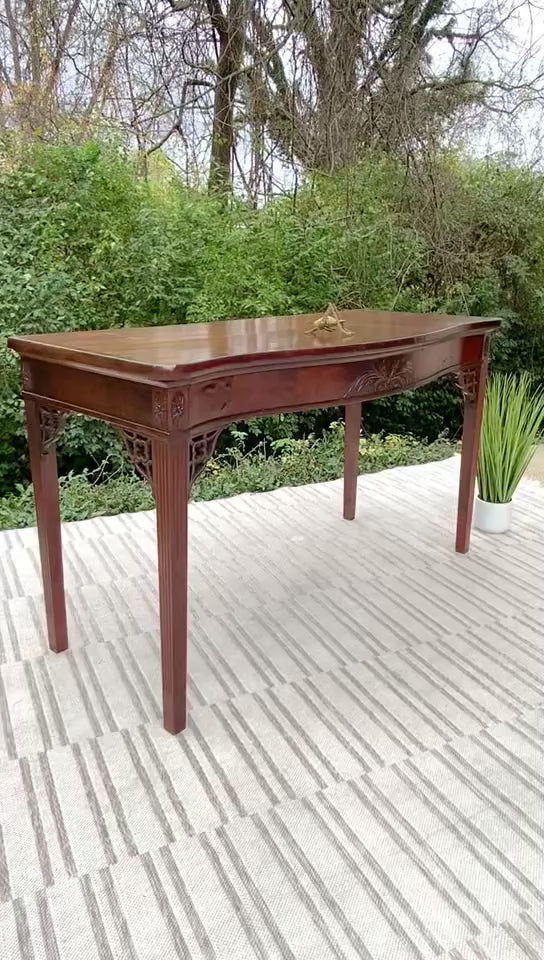 SOLD - Newest arrival! 🍁🧡 We love this authentic antique mahogany inlay hallway table. Gorgeous old world construction with a beautiful dark finish. 35” x 60” x 26” Good condition