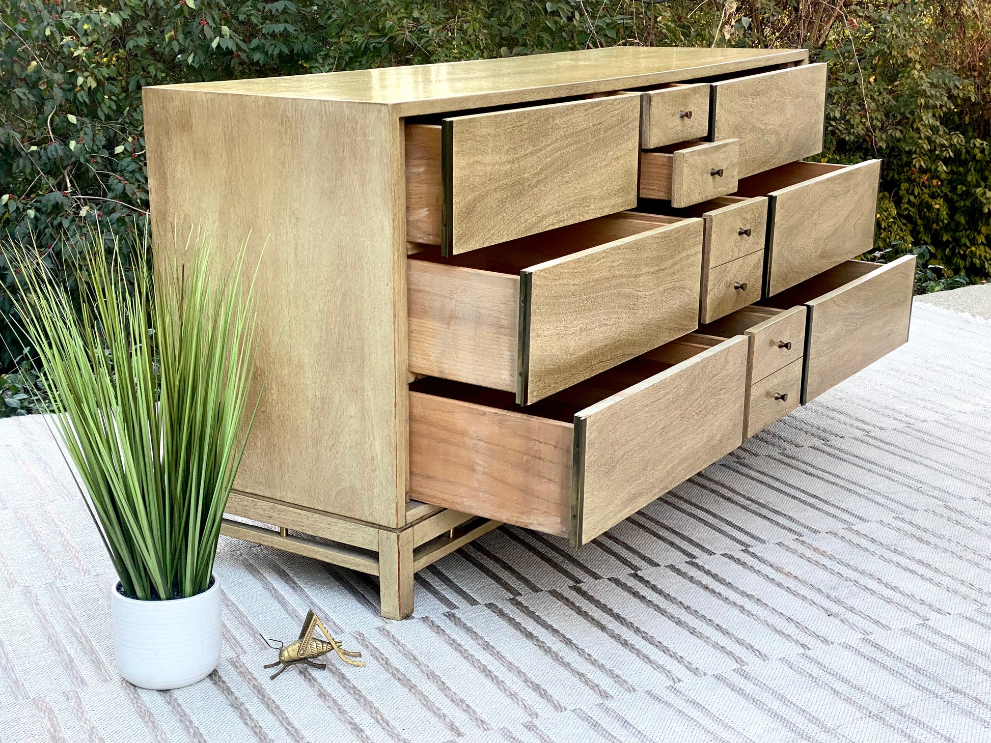 SOLD - New arrival! 🍁🧡 Check out this retro MCM mid century American of Martinsville 10 drawer wooden dresser. Classic design with lots of storage in this one. We love it! 36” x 62” x 19” Good condition