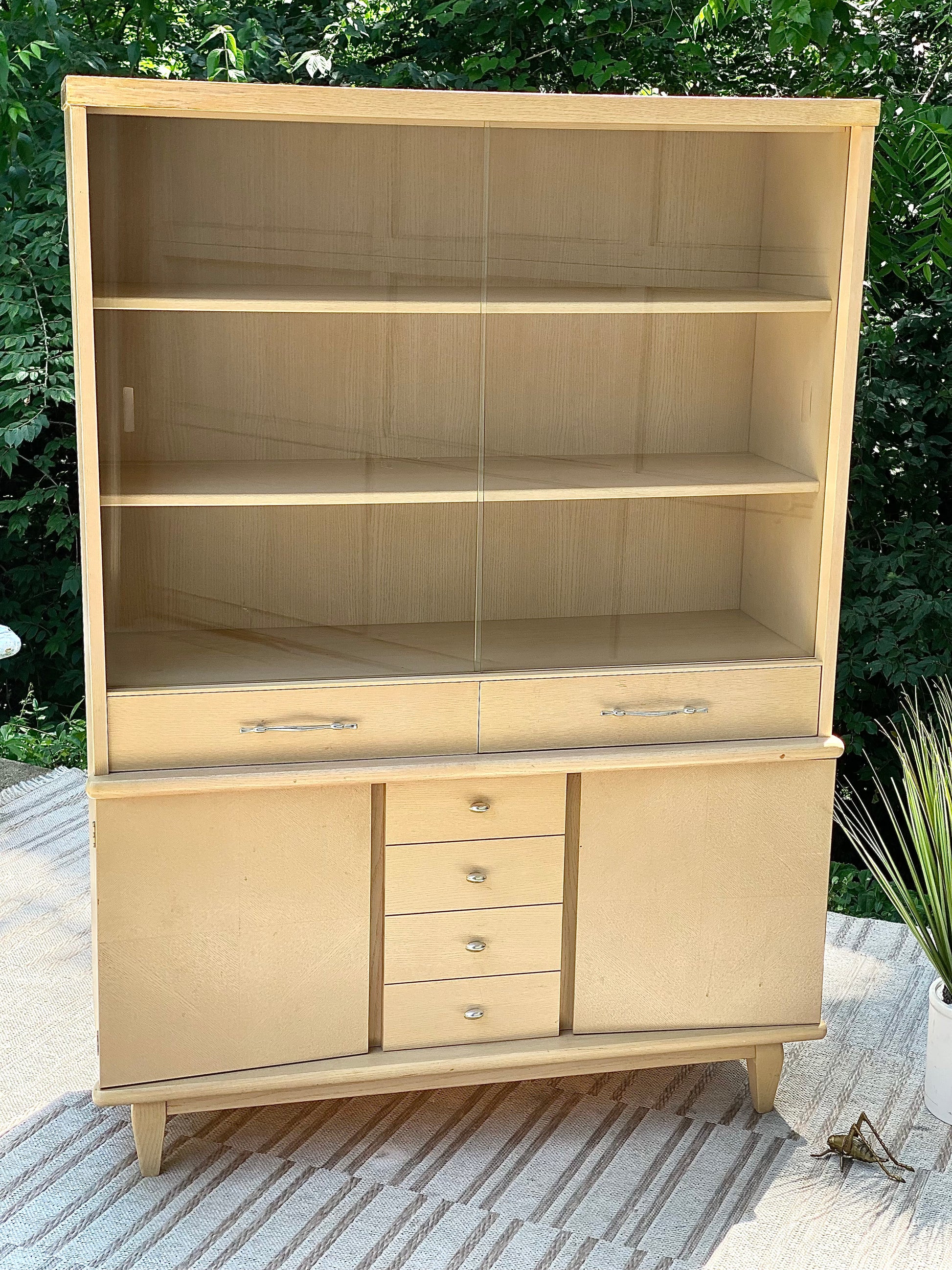 SOLD - New arrival! 🪴🌱 Check out this vintage MCM mid century modern Keller hutch. Great lower storage and tons of display up top. 63” x 46” x 16” Good condition
