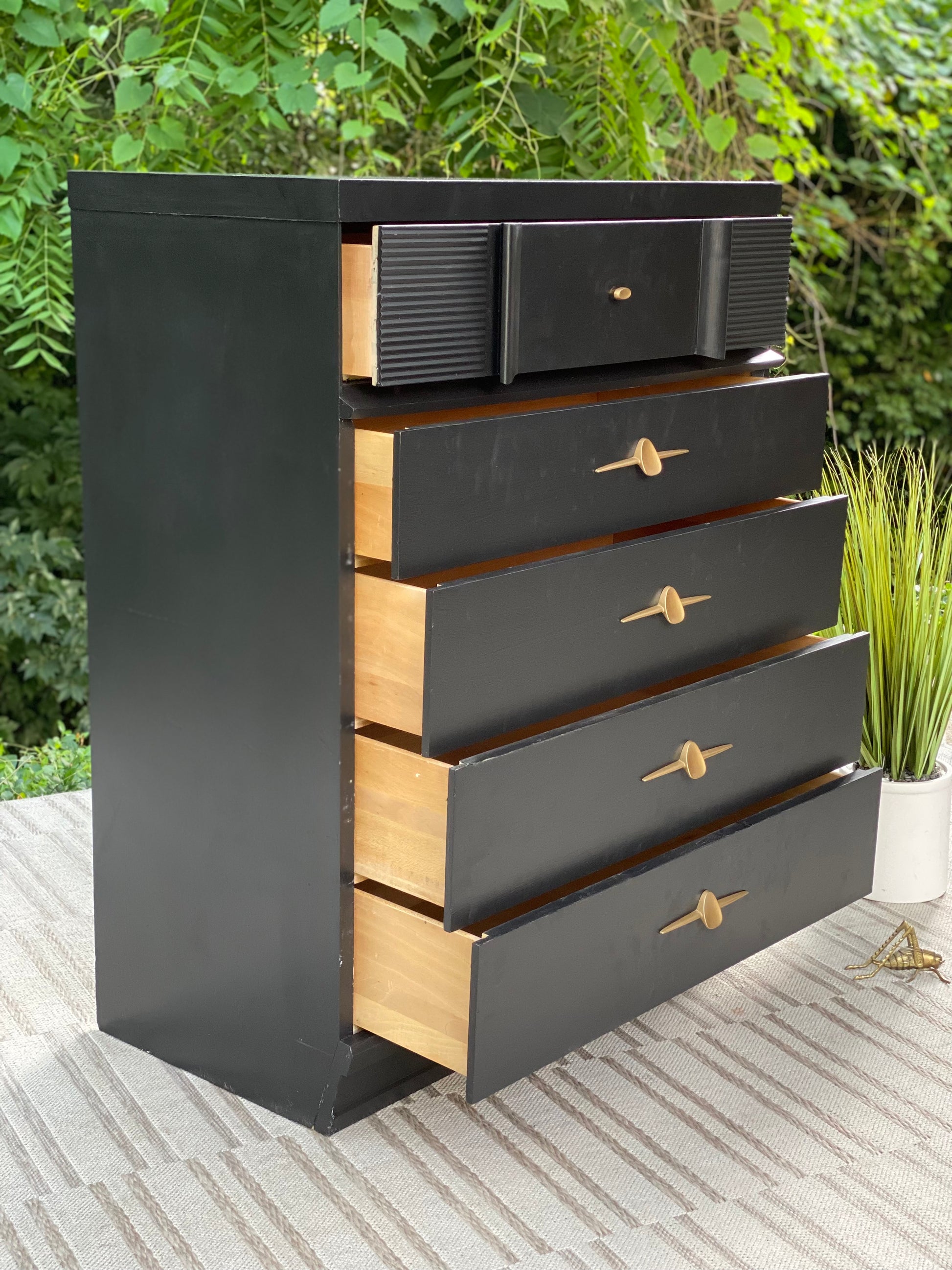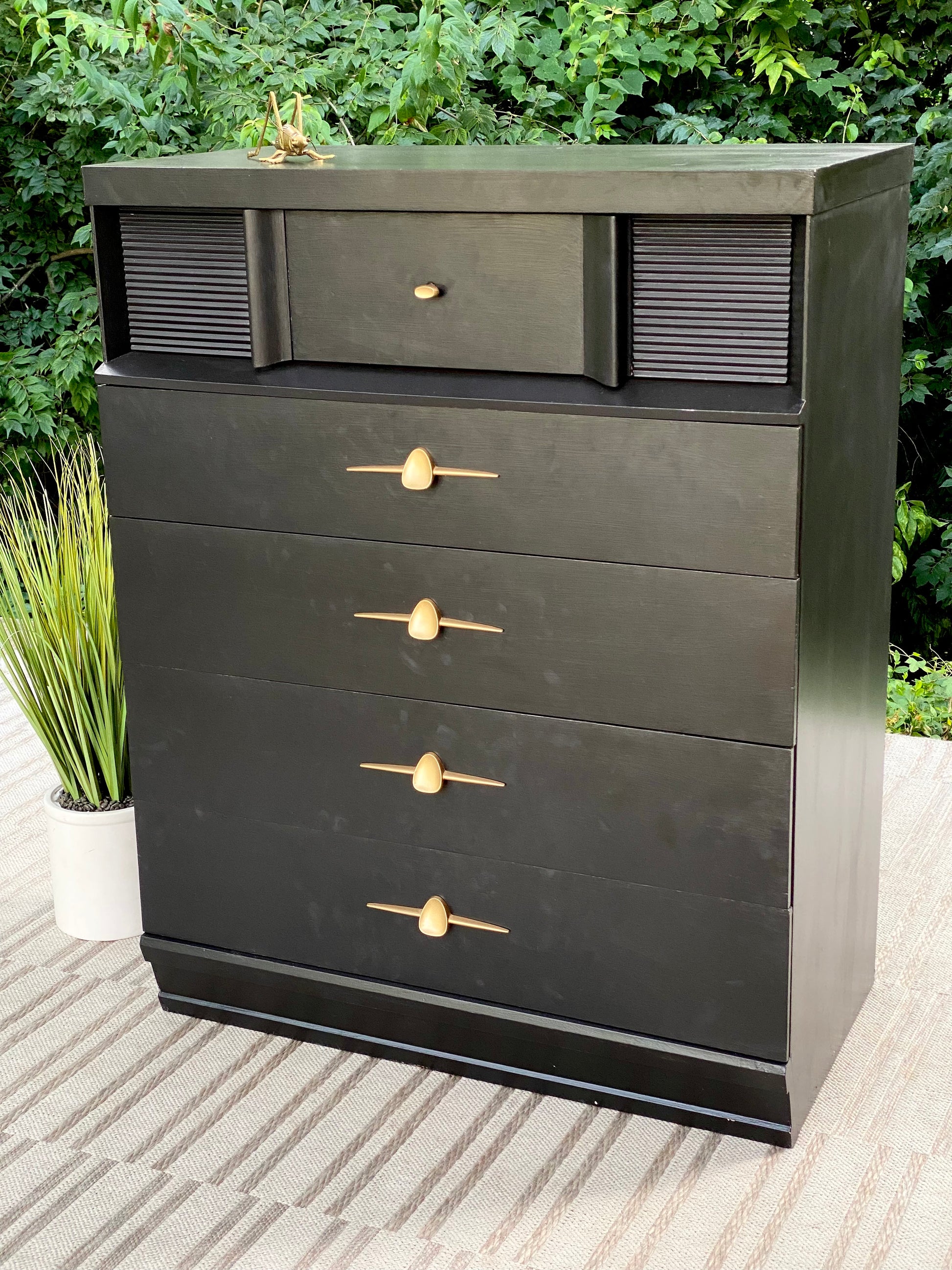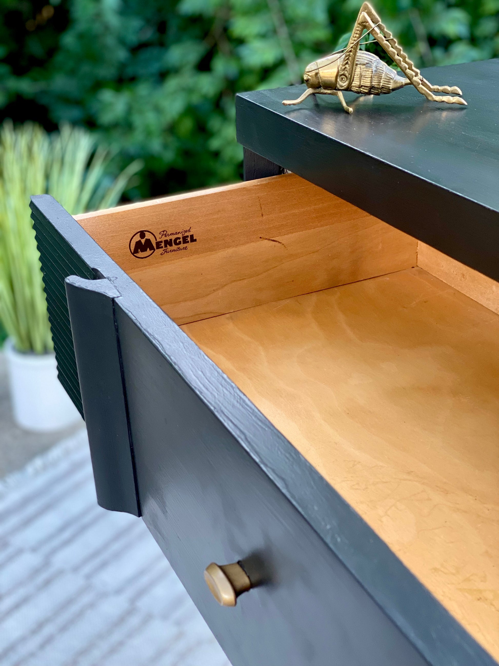 SOLD - Fresh find! ☀️🪴 We love this vintage MCM mid century modern Mengel 5 drawer painted dresser. Beautiful design with lots of great storage! 44” x 35” x 18” Good condition